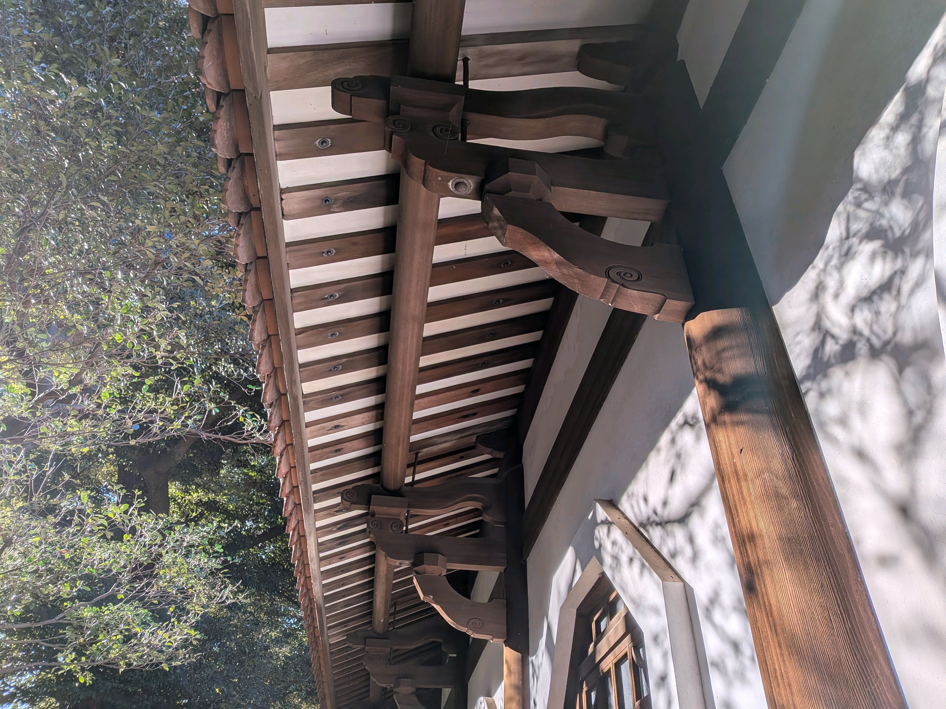 この屋根は、当時の台湾の建築物の特徴である閩南様式(びんらんようしき)の中でも重要な、燕尾と呼ばれる形式の屋根だそうだ。特別格式の高い人物の邸宅などでしか使うことを許されなかったし、技術的にも難しいらしい。