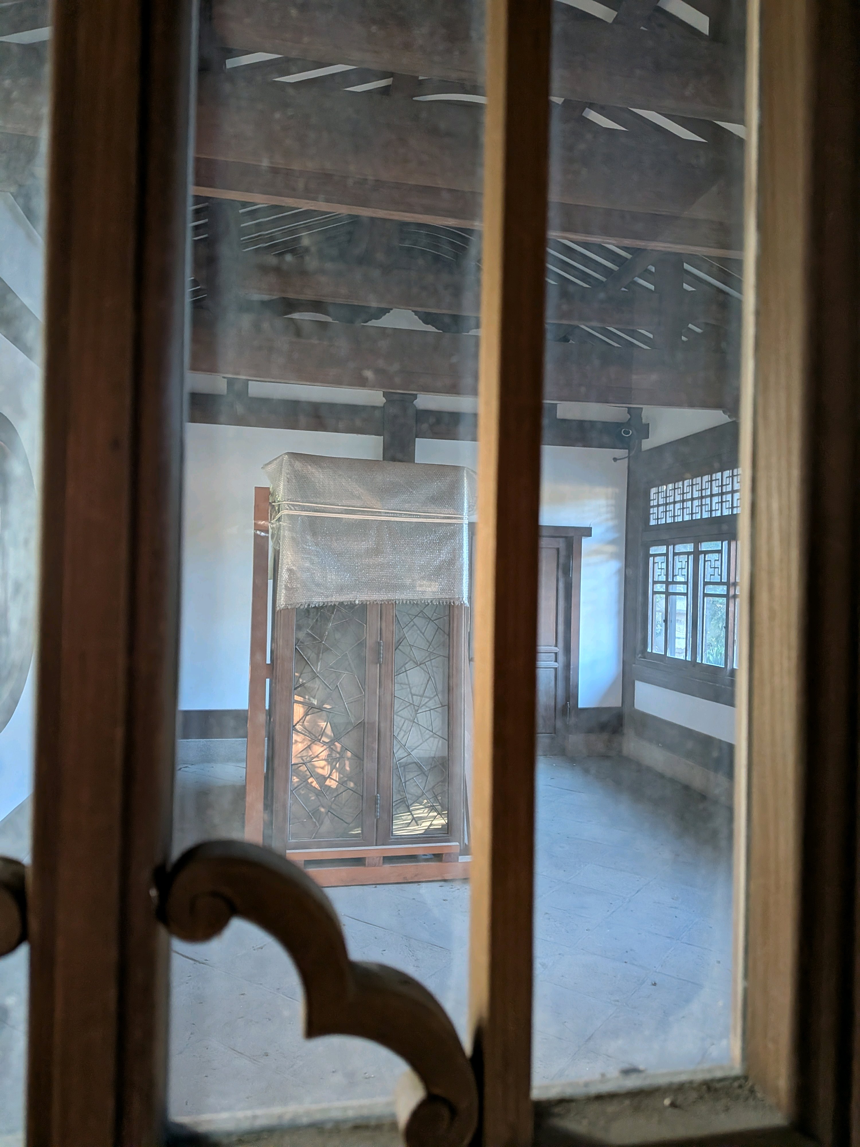 もともとは池に面する柱に嵌め込まれていた建具は、もう使われてはいないけれど、大切に保管されている。