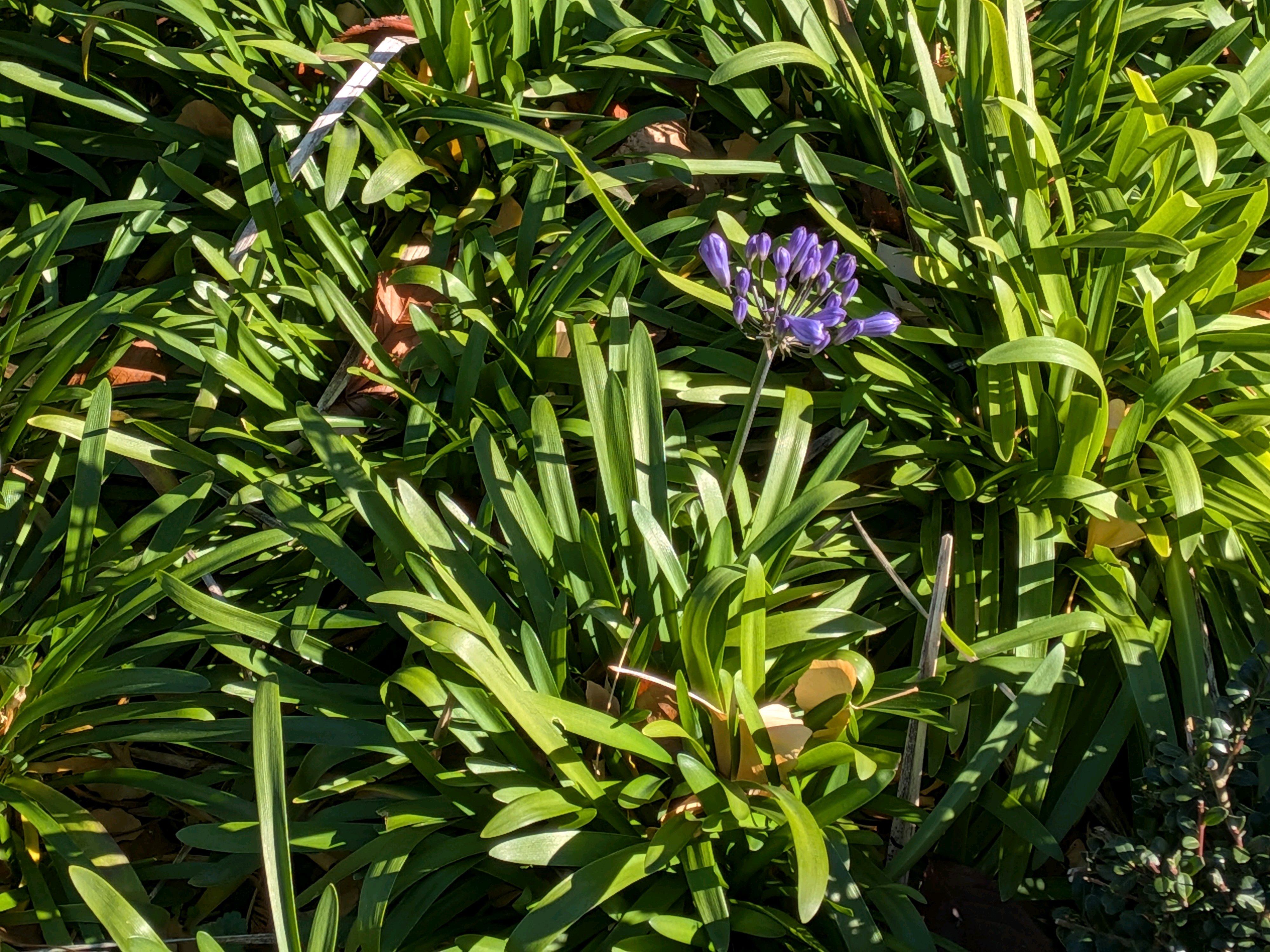姫アガパンサスが1輪だけ咲いていた。ここはよく日があたって、季節を勘違いしちゃったのかな?