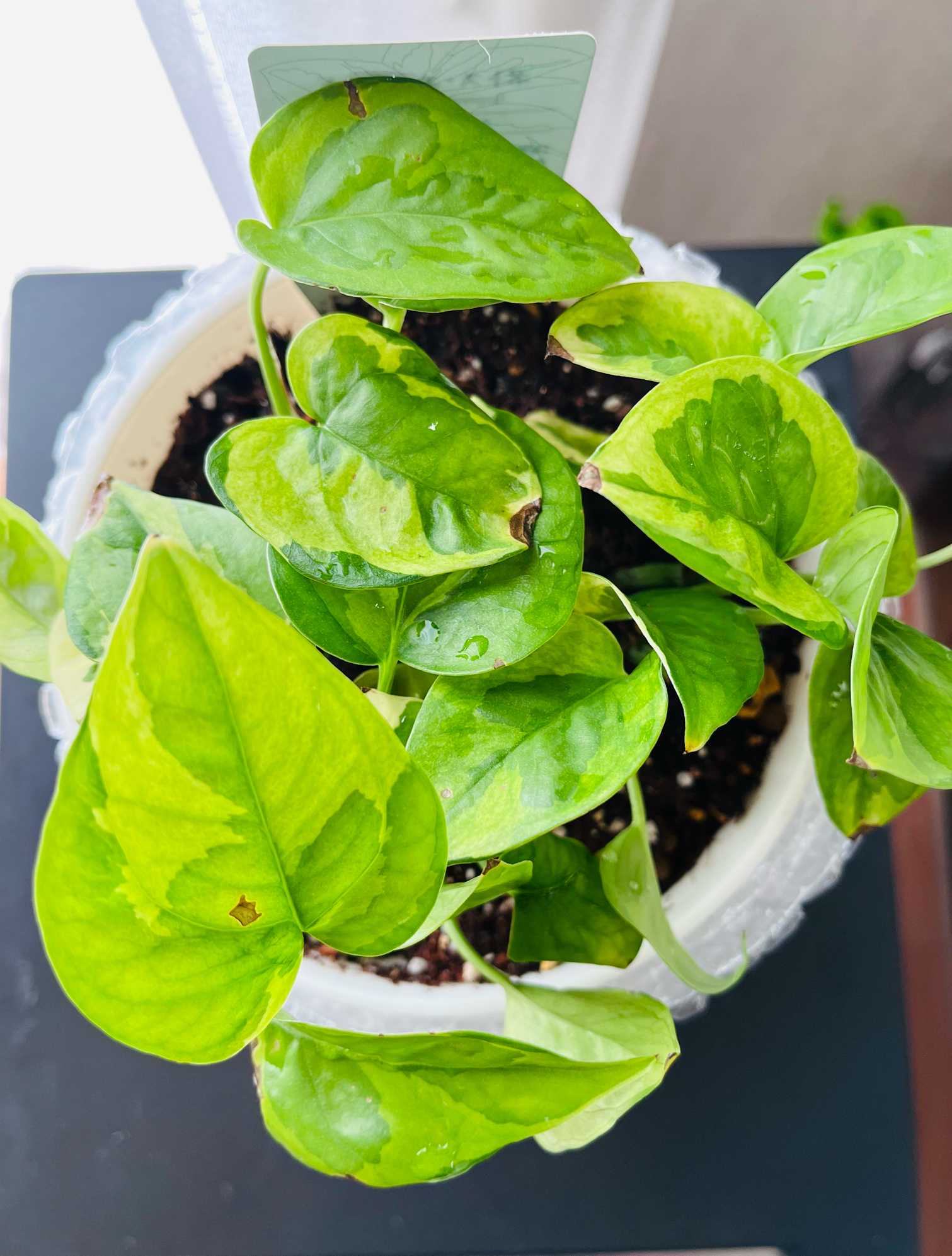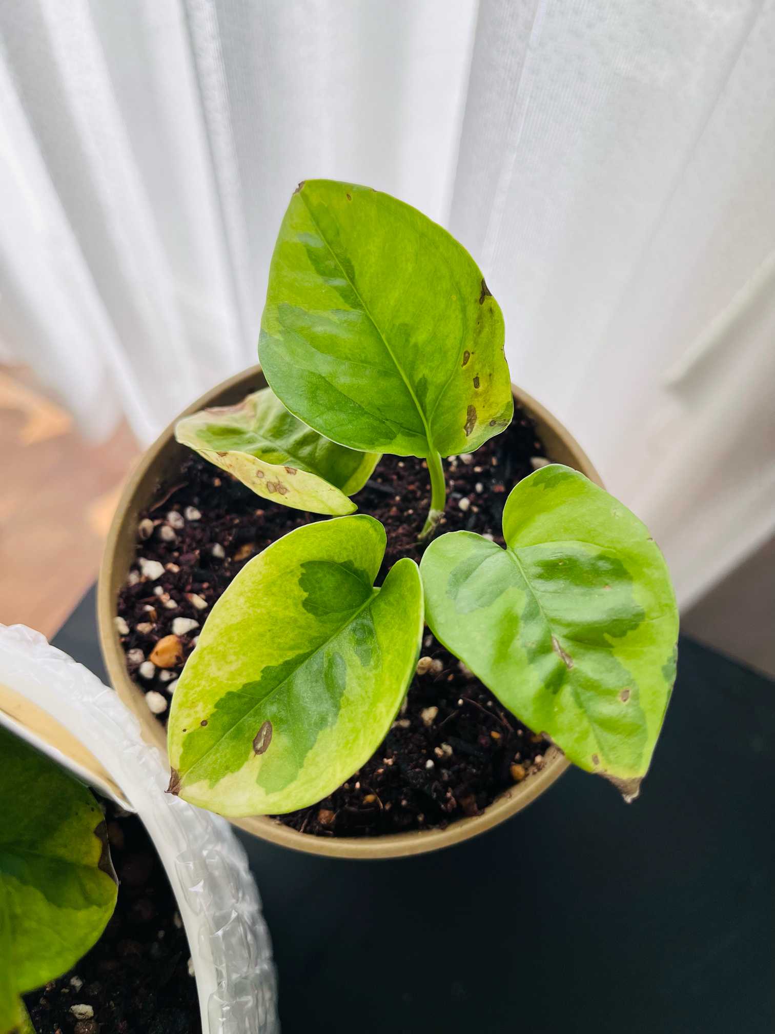 濃い緑の葉に、黄緑色や明るいグリーンの班が入るのが特徴🌱