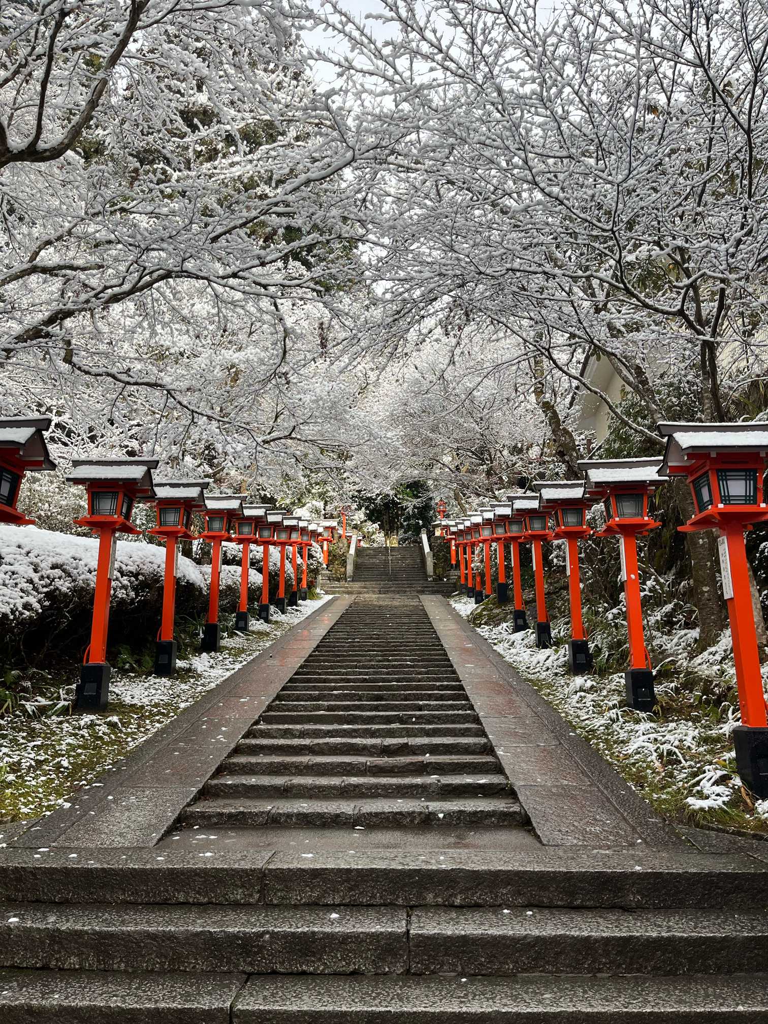 前夜からの雪の残る鞍馬山🏔️から貴船💧を訪ねてきました