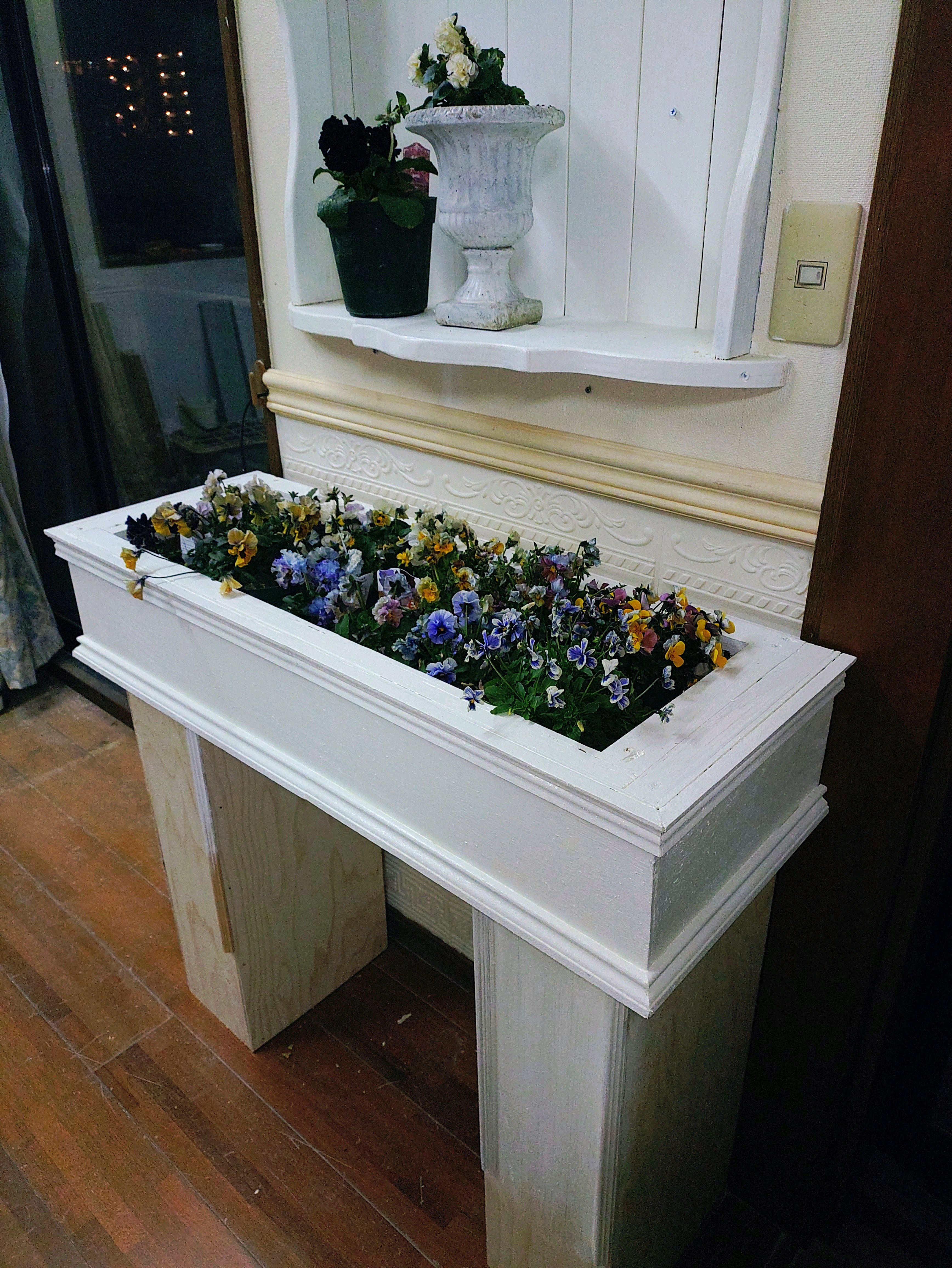 以前に簡単に作った壁掛けコンソールですが 無にしてはならないかな…と思いまして 解体したので使える部分を修復しマントルピースに取り付けてます。😅