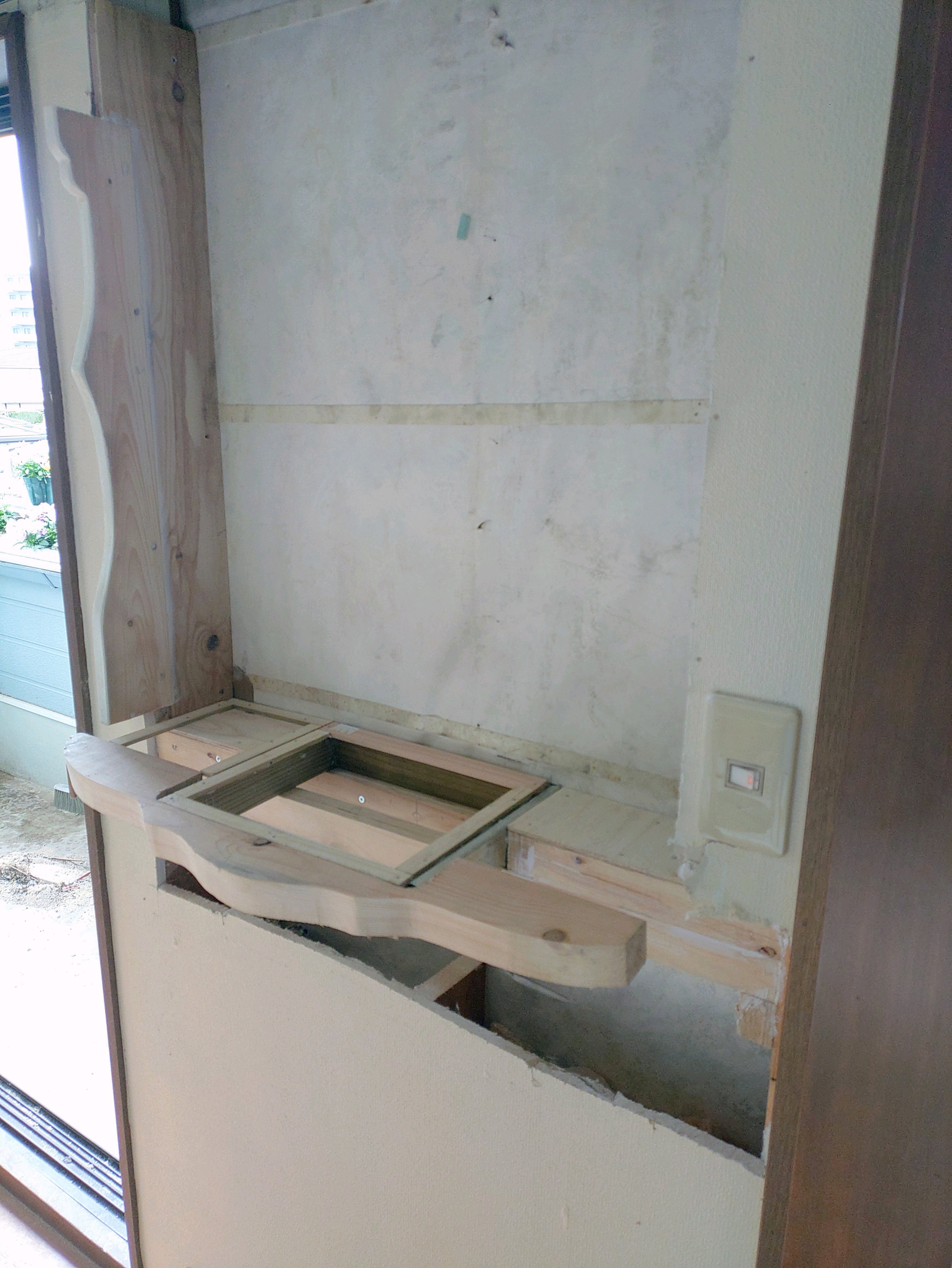 この壁の裏に戸袋があってぶち抜く事が出来ない壁なんだよね😓