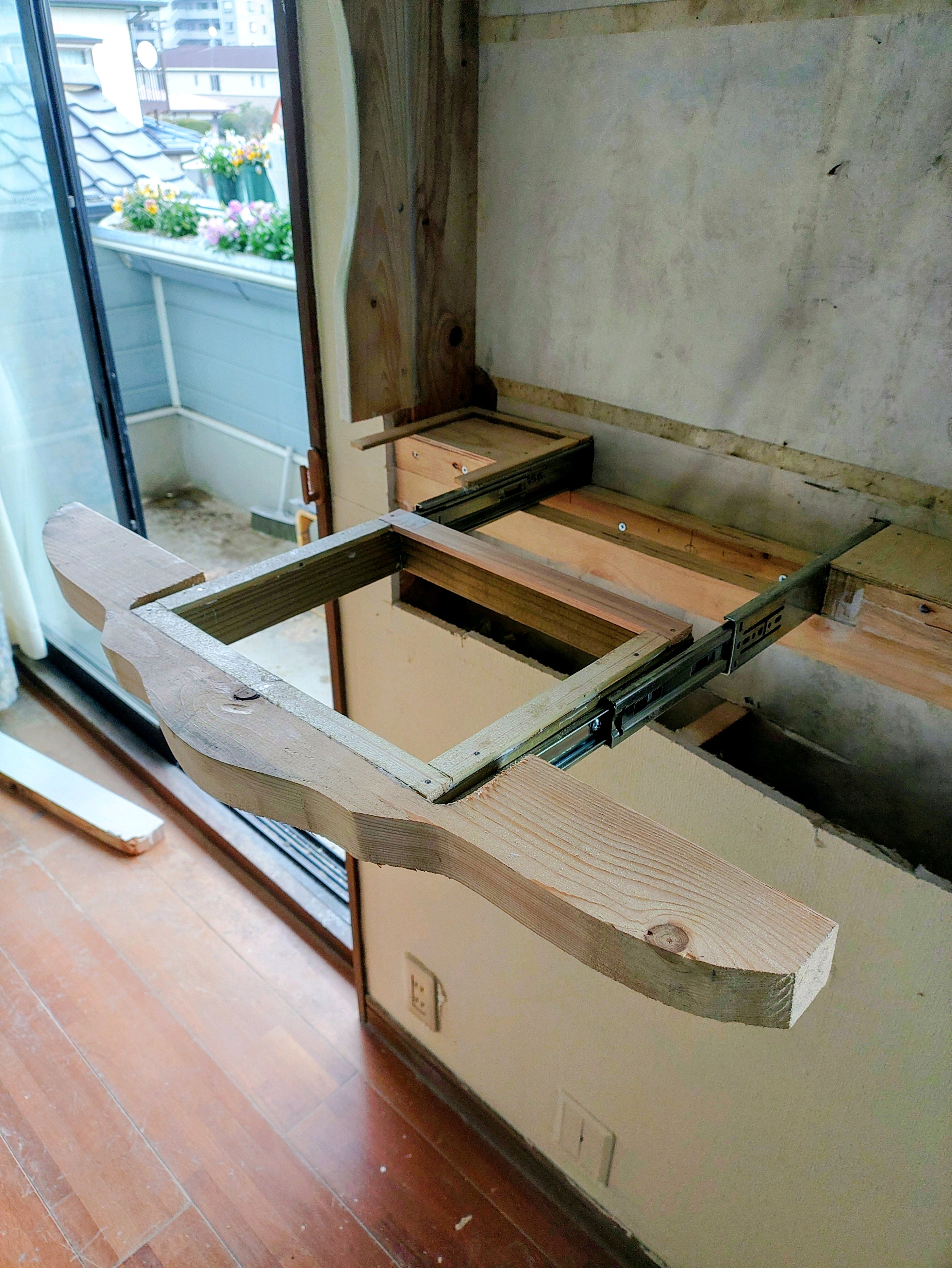 3段スライドレールを取り付け テーブルが前に広がる仕組みに改造ですね😉