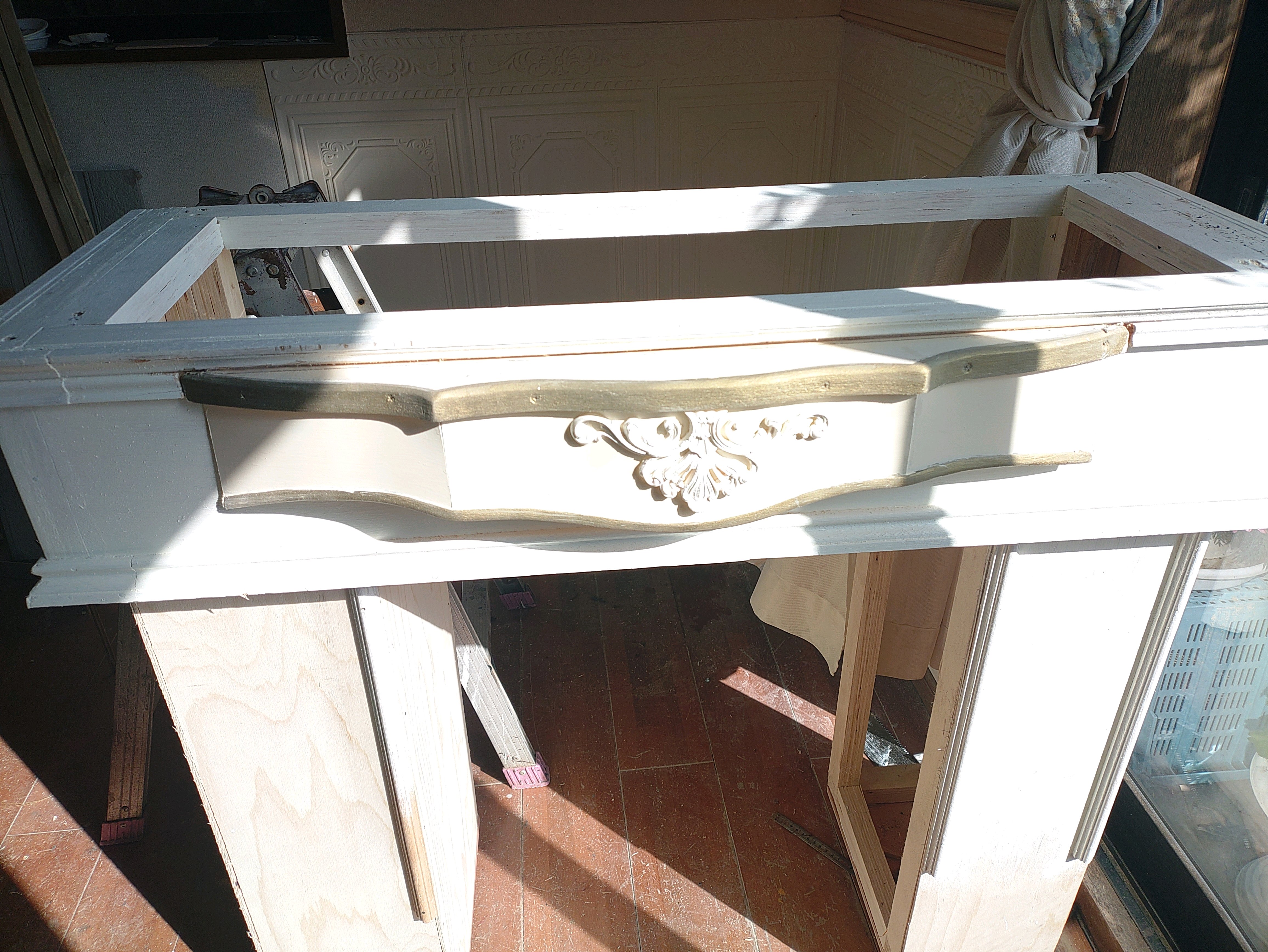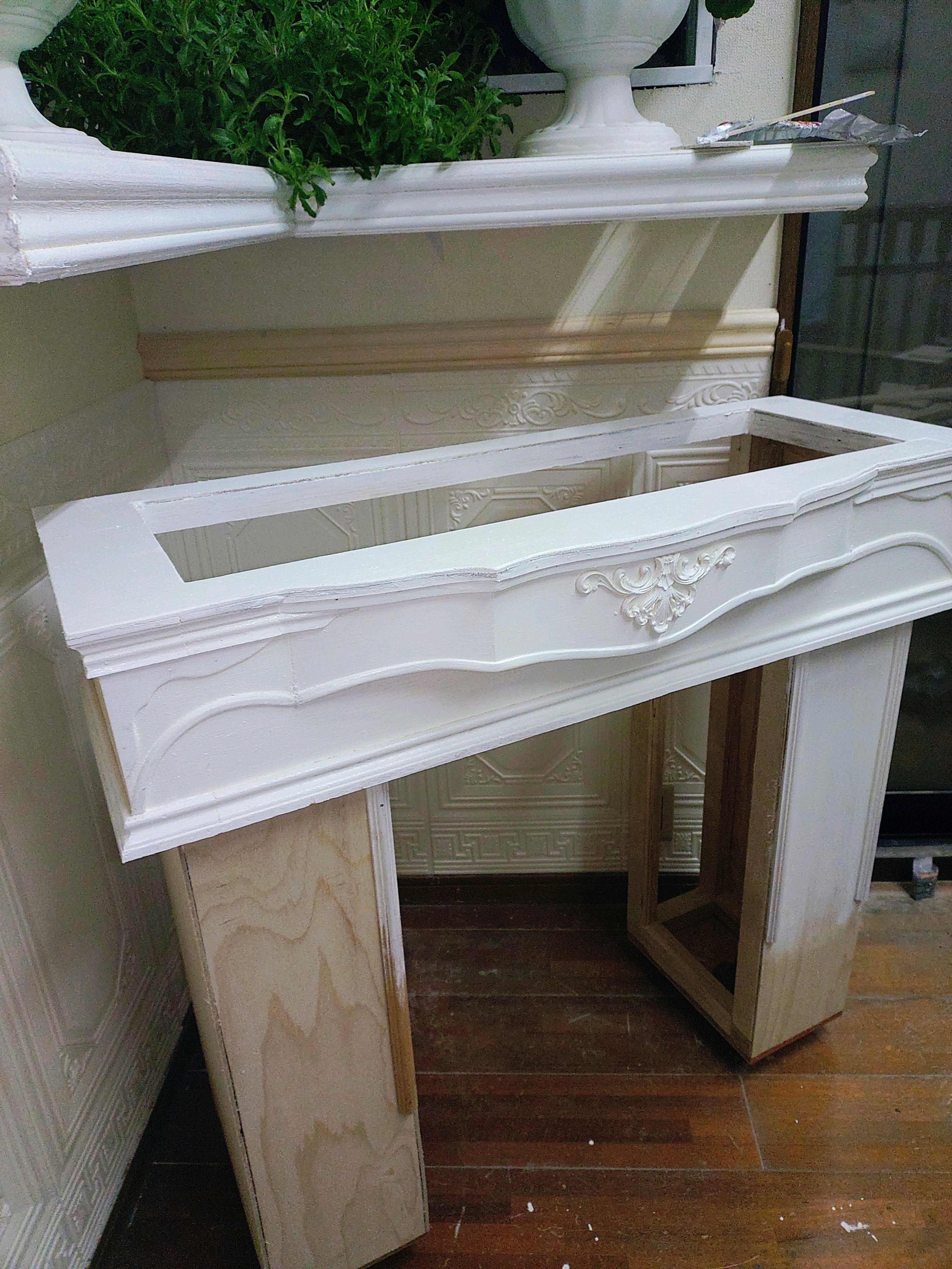 制作中のマントルピースに前回 壊した壁掛けコンソールを 無理くり取りてけて見た😅