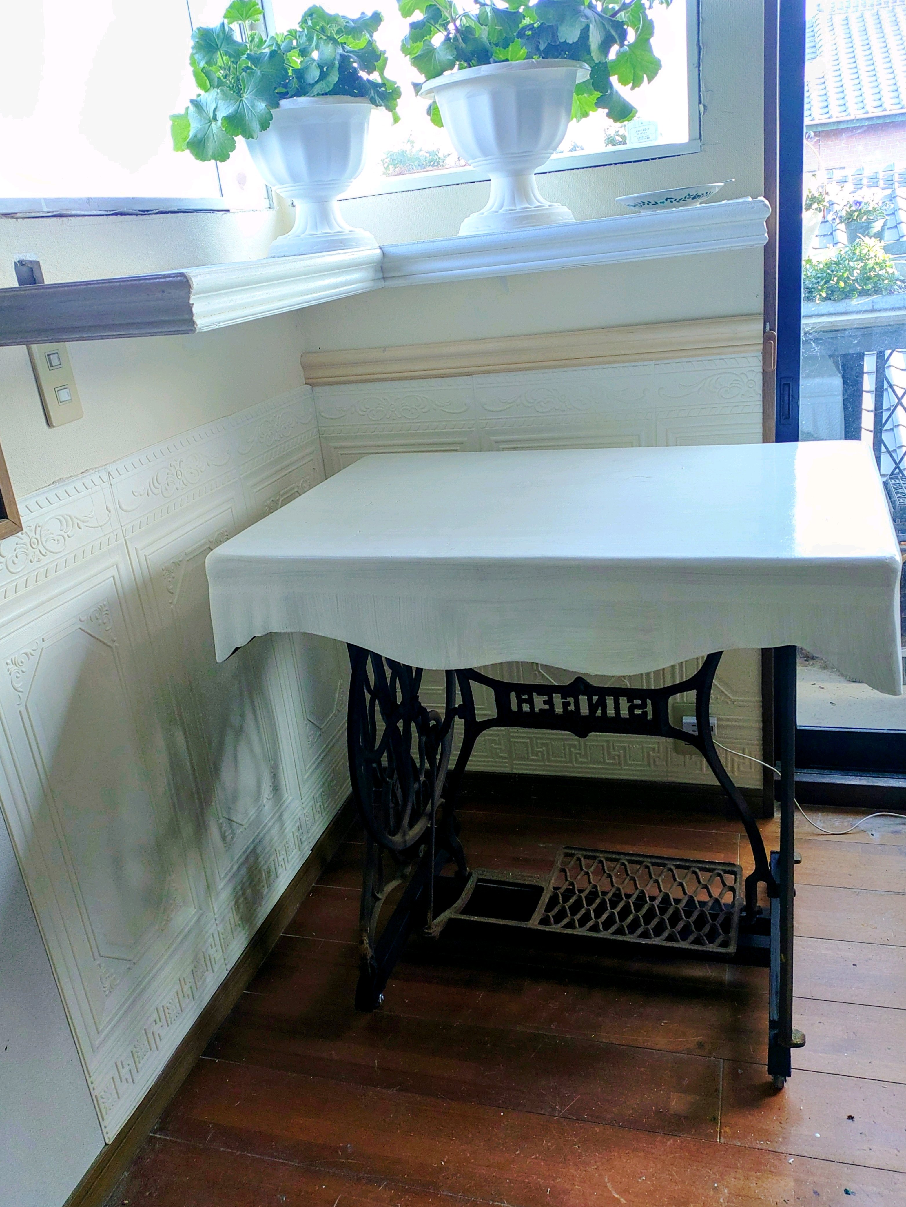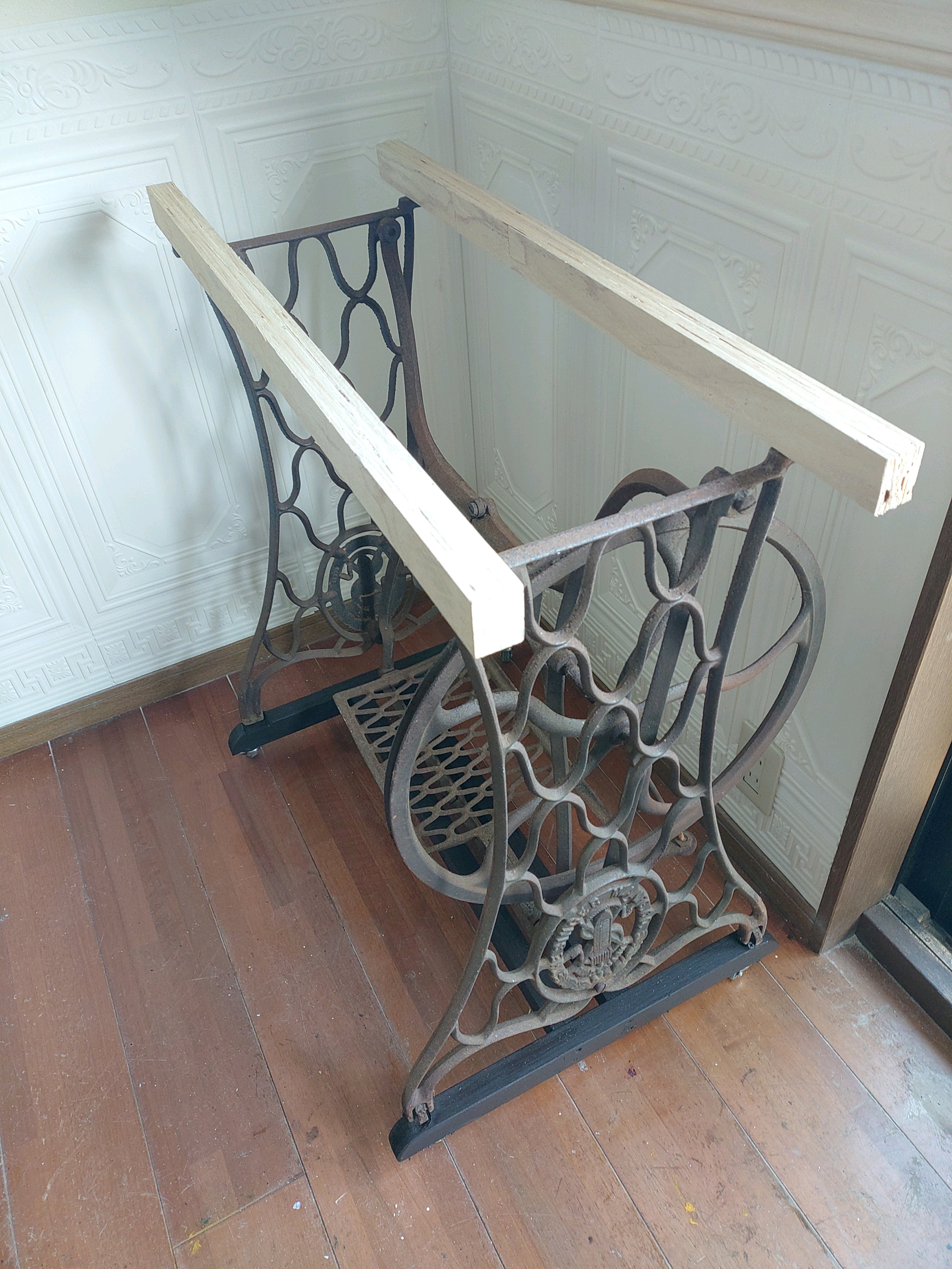 ベースとなる脚の部分を持ち出したのはシンガー足踏みミシン 103型 百年前の骨董品ですね😅💦💦💦