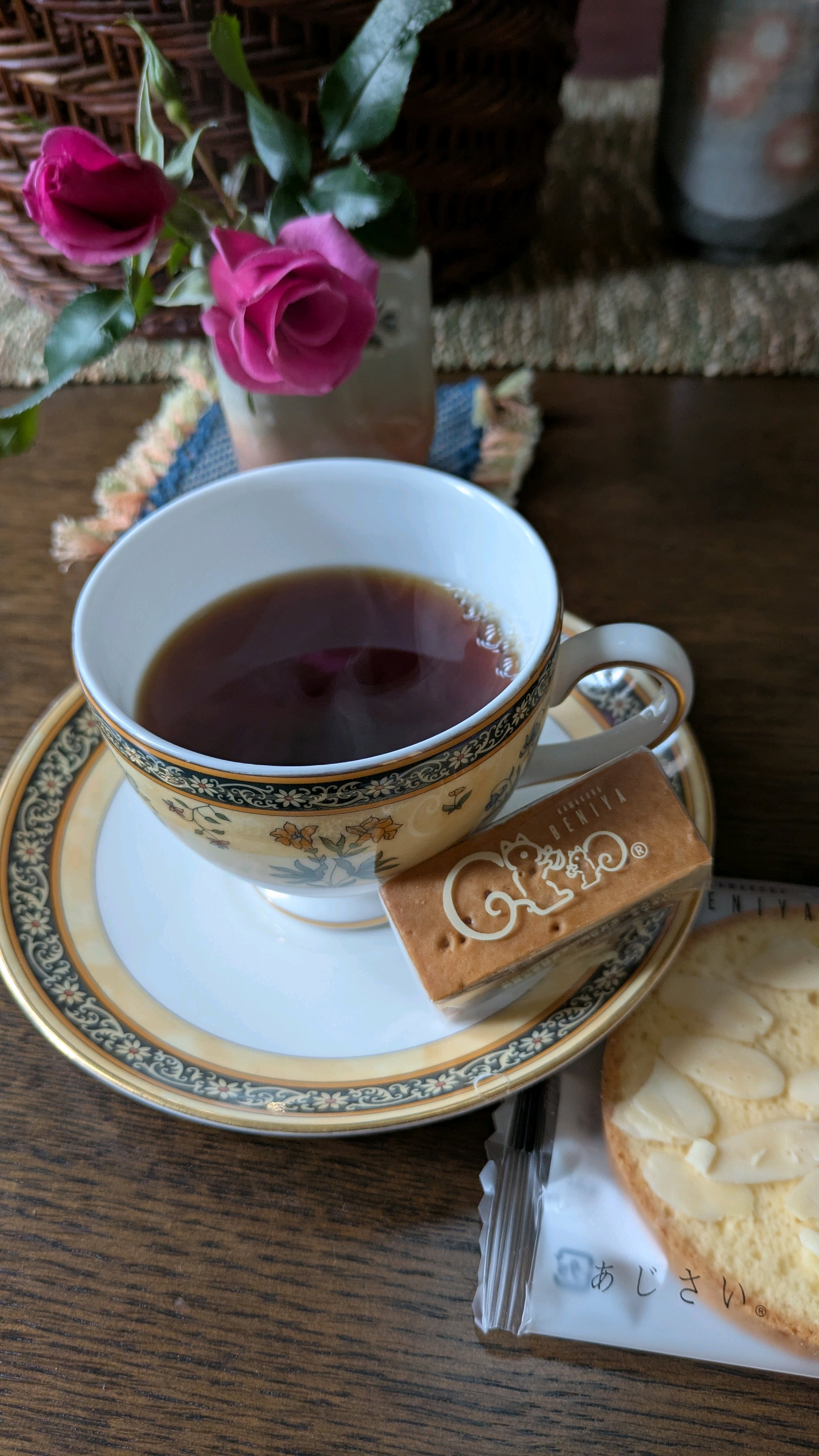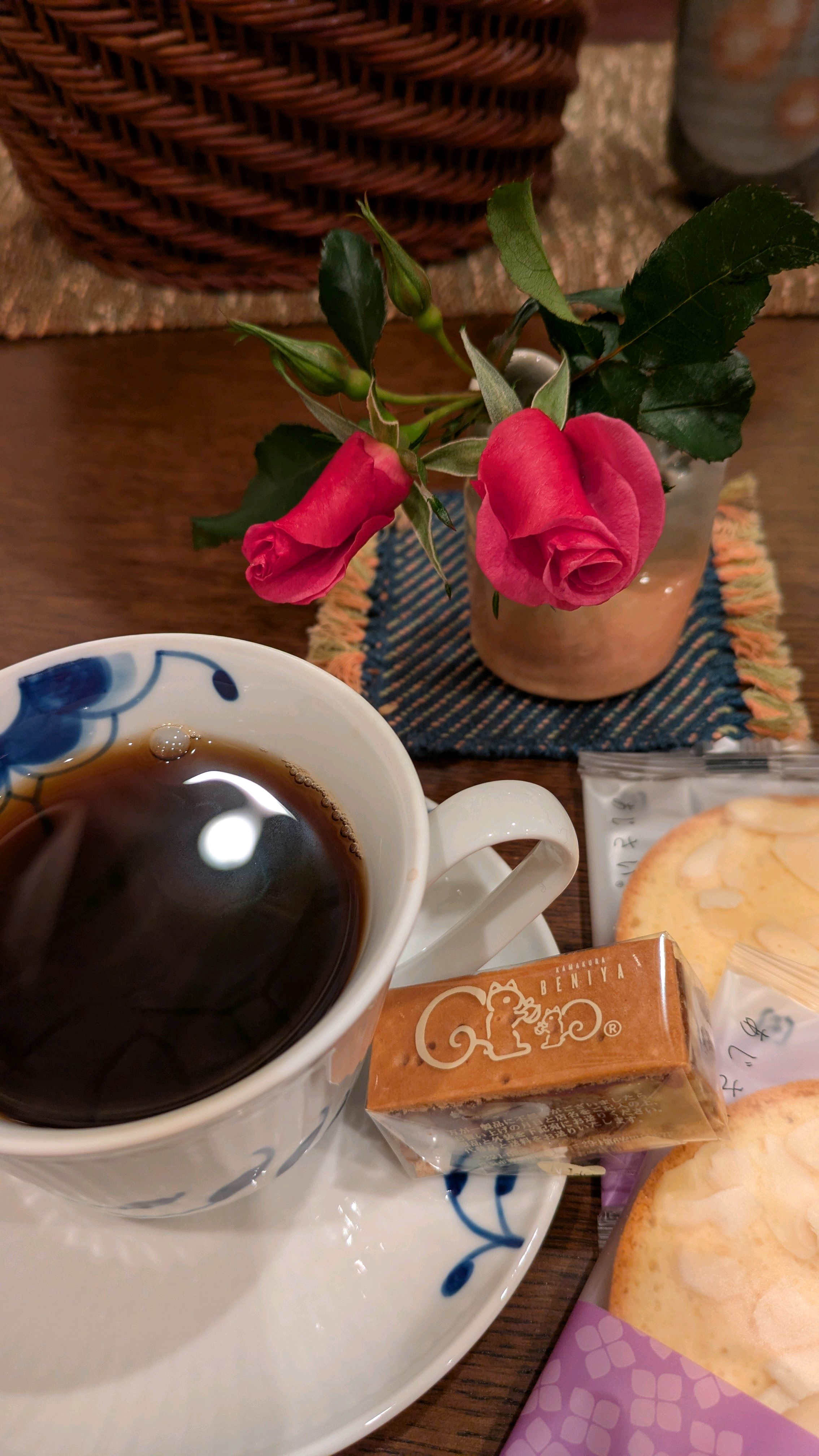 ドッポさん♪と言えばコーヒー☕️。お土産のクルミッ子が😋。
