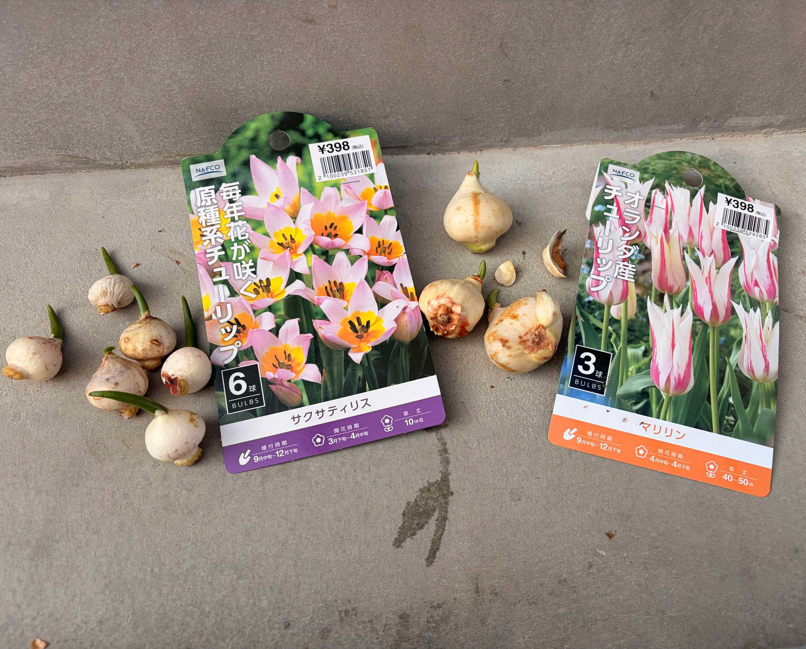 ホームセンターに値引き球根があったのでまた購入…芽だし球根だと思えばお得なのでは???398が198は魅力的。この球根たちが上手く咲いてくれるなら毎年値引き球根狙っちゃうかもしれない…