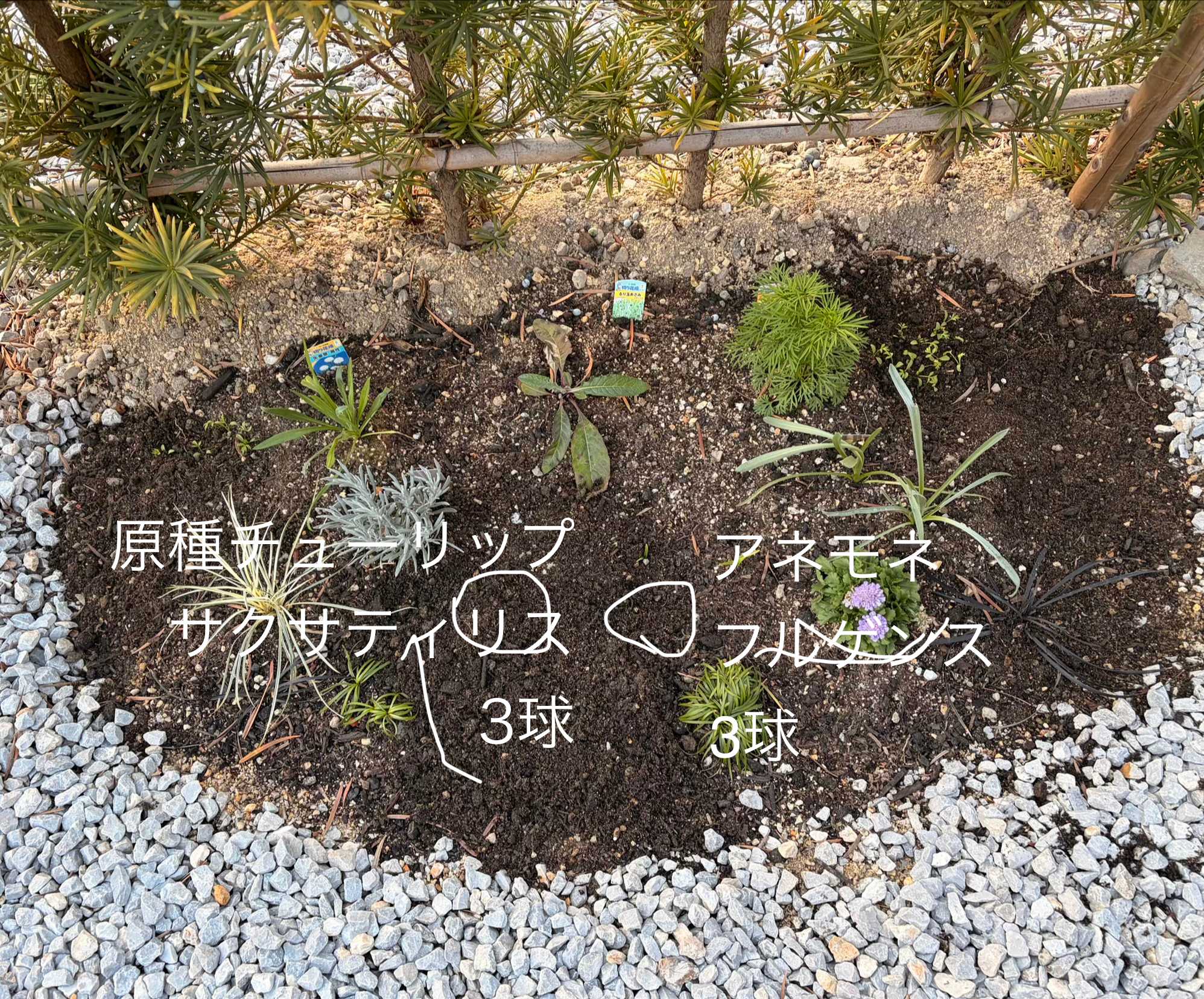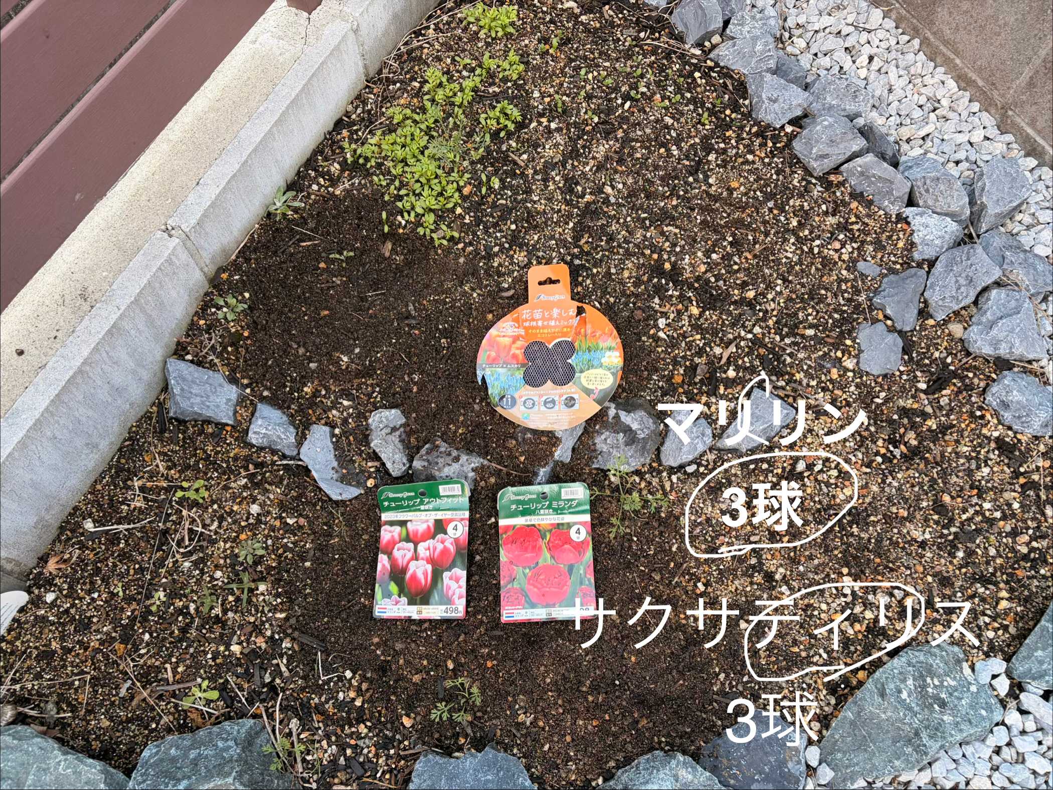 この配置。植え付け時に右側に球根が!