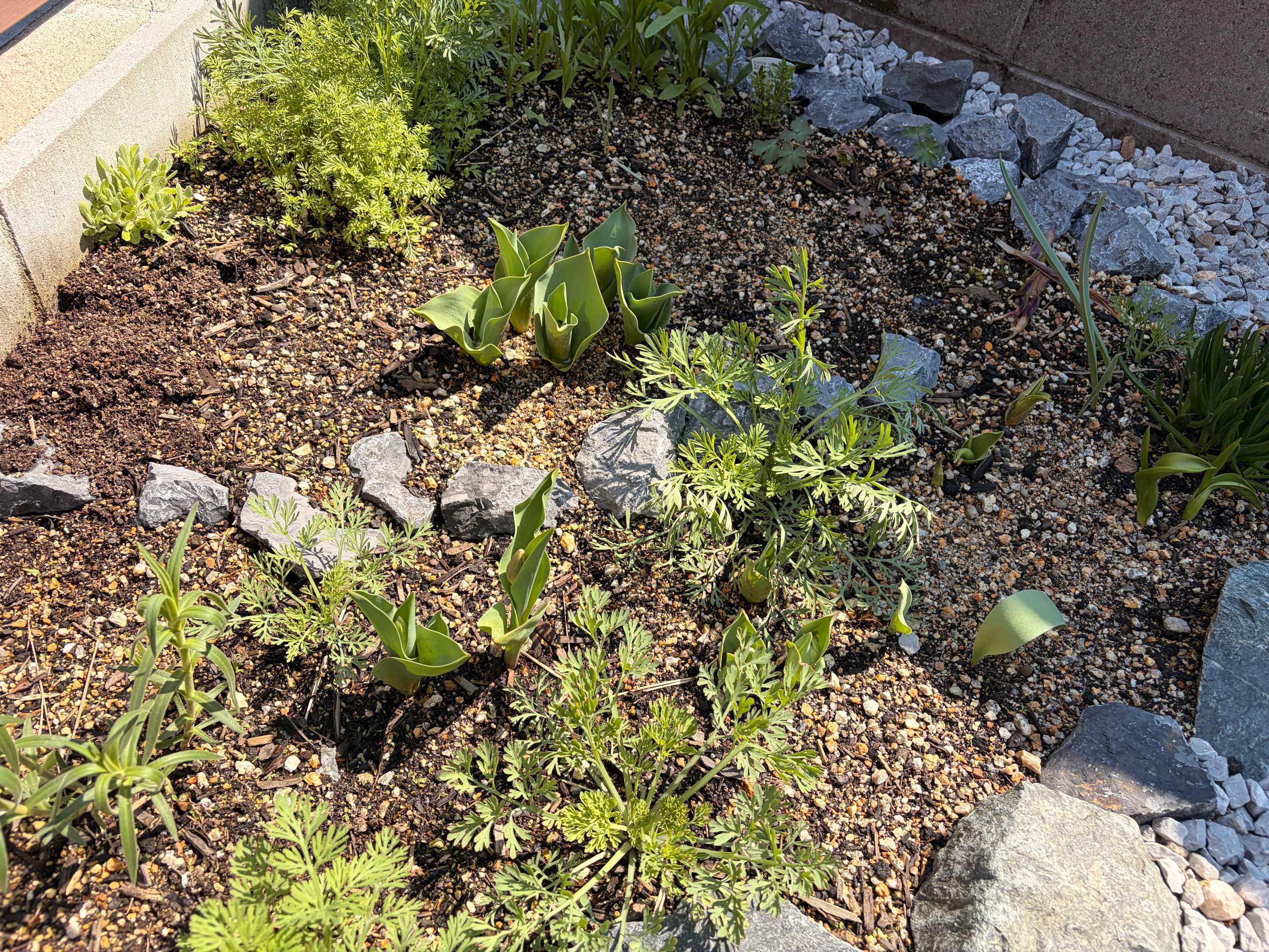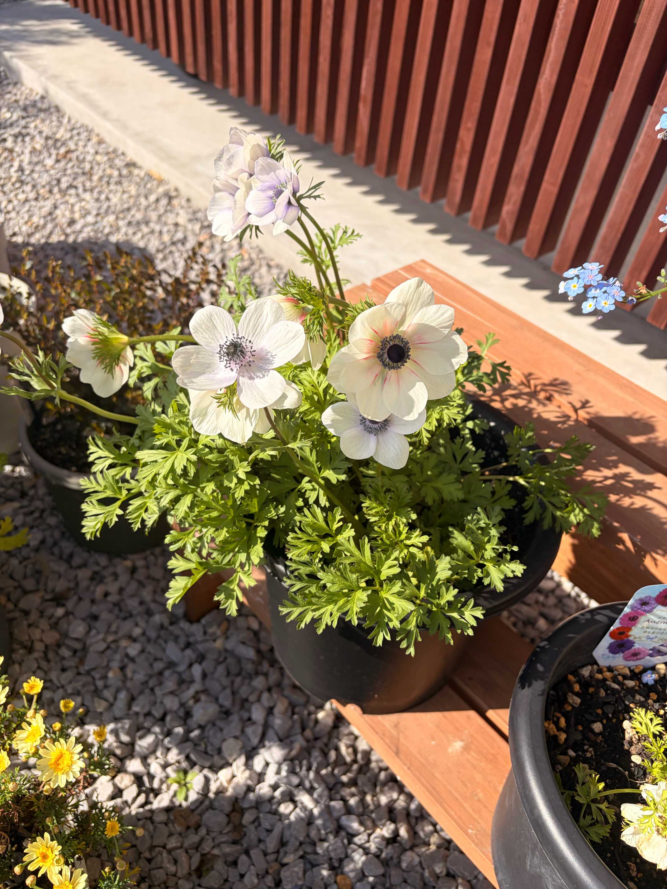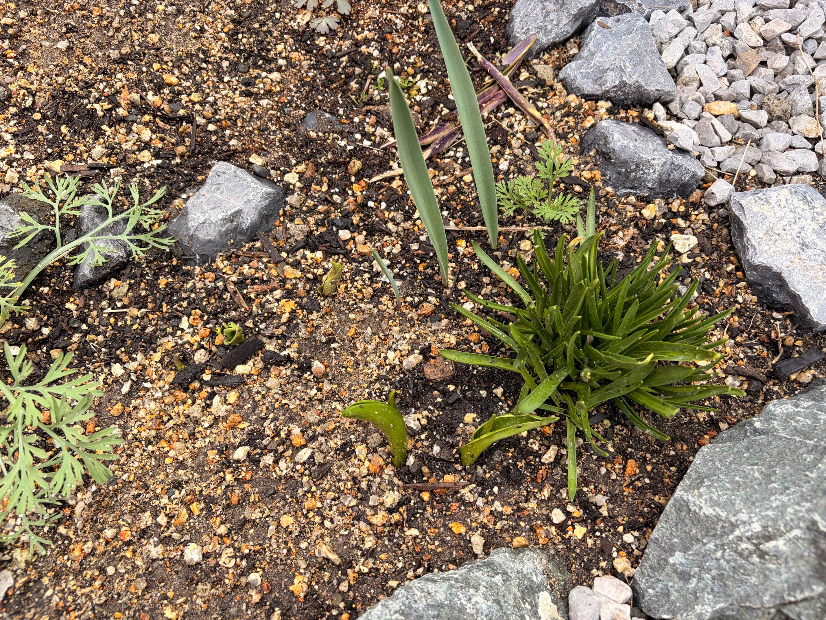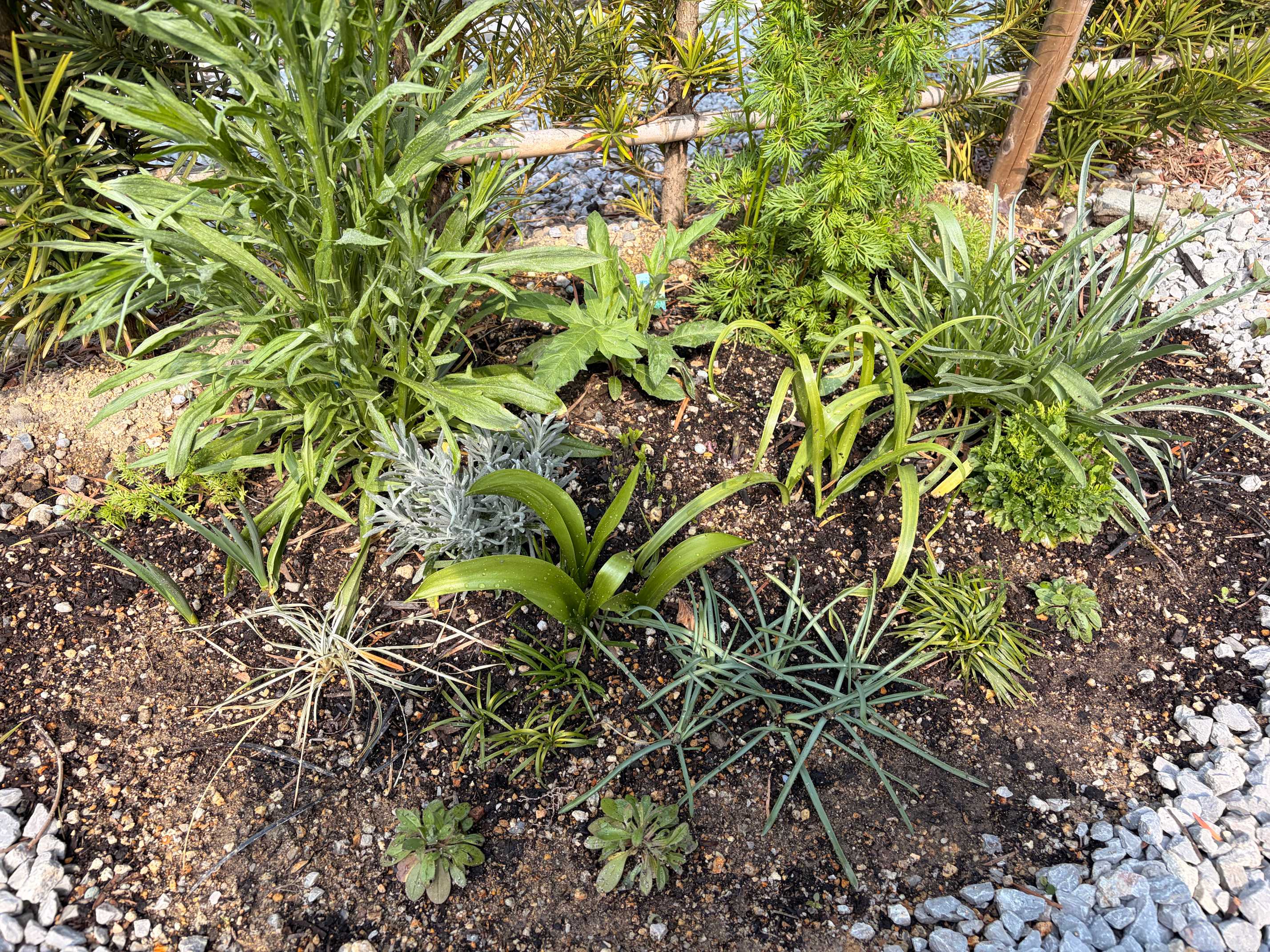 白〜青系でポイント黄色の花壇でまとめてたけど咲くかも怪しいし、もしちゃんと発芽したら冬場に葉がある貴重な存在なのでありかと。