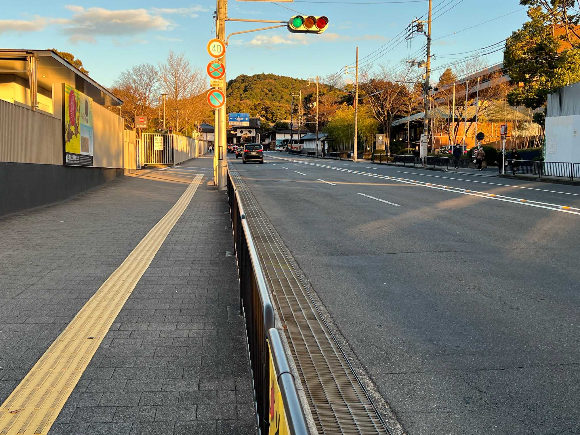 目の前は三十三間堂。きょうはくのお玄関はモダンです