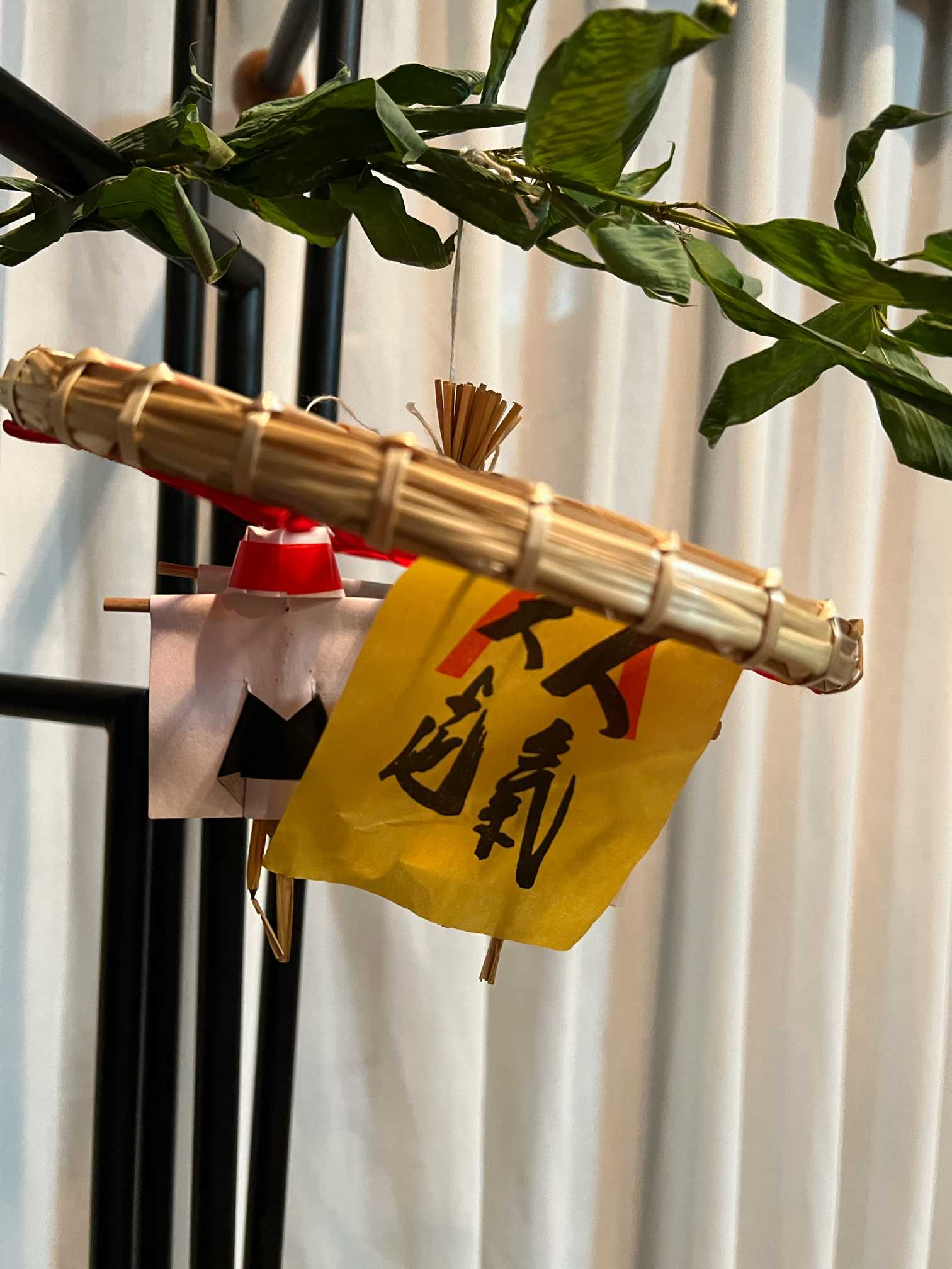 ゑびすさんで戴いた「人気大寄せ」。笹竹に結びつけてくださいます。修行僧か小さなお坊さんがぶら下がり可愛いでしょ