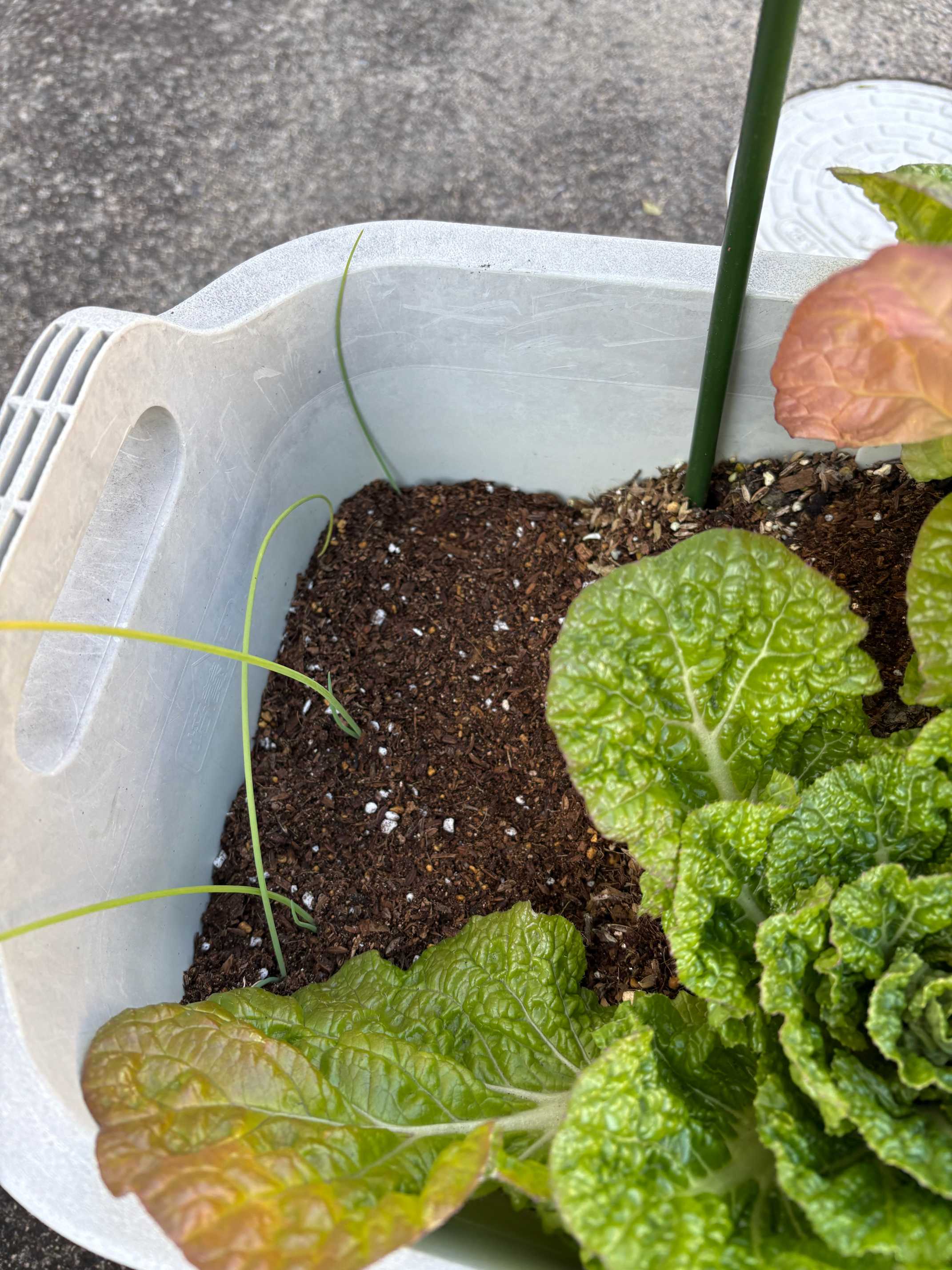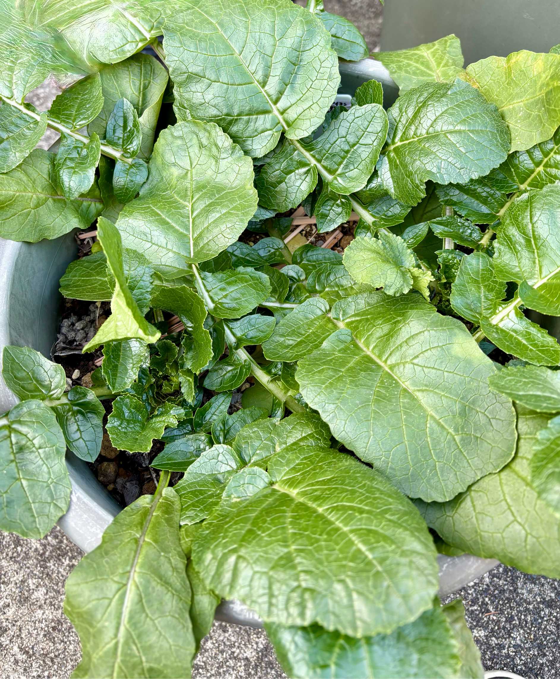 ミックスリーフは、コウシンダイコンの葉に隠れながらも、2つほど頑張って成長しています🌱