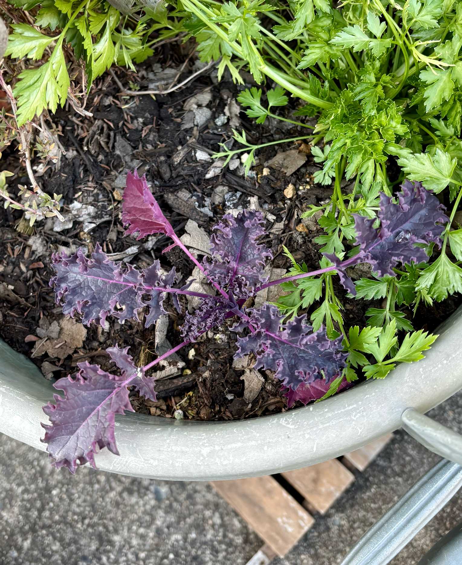 ハーブと一緒に植えているケール。