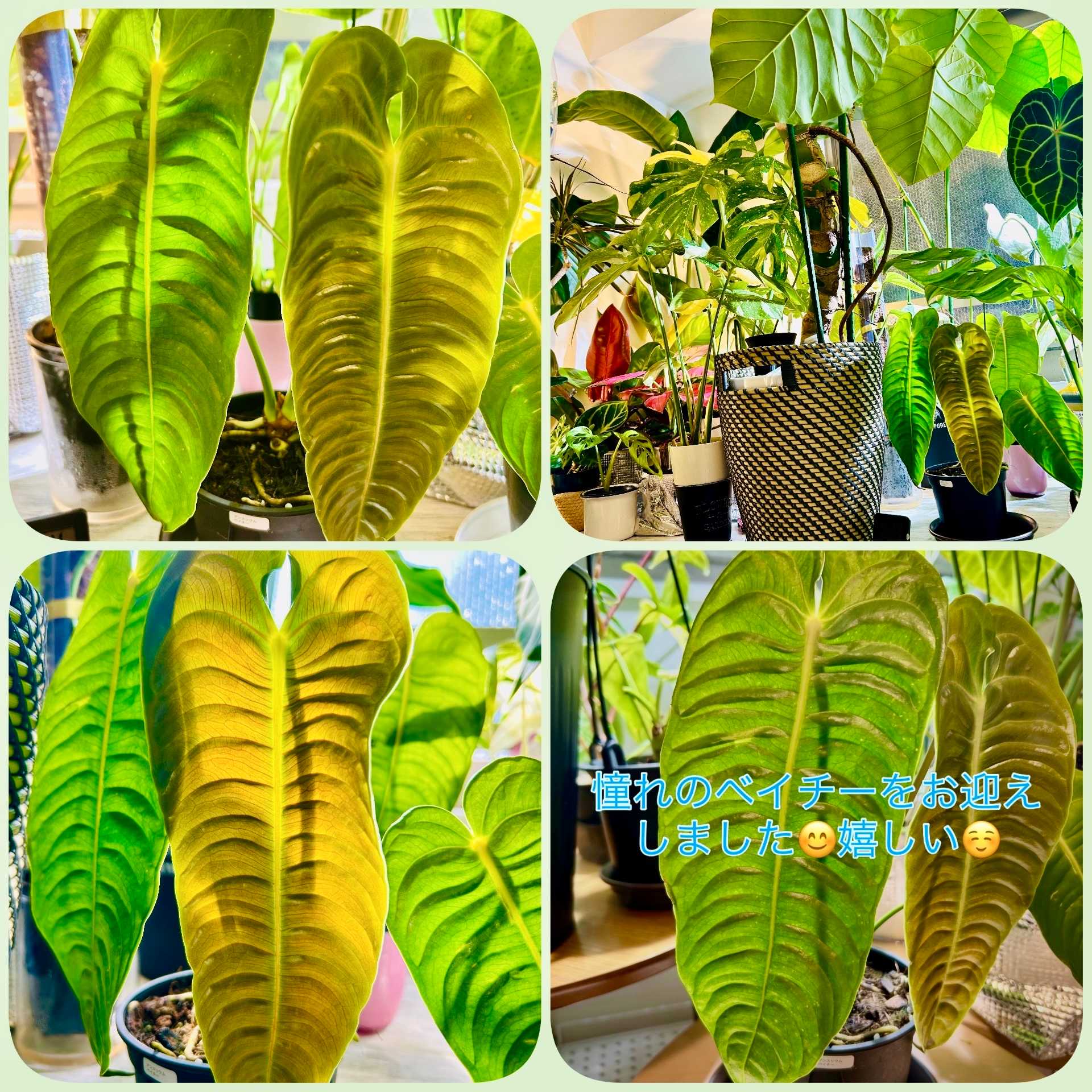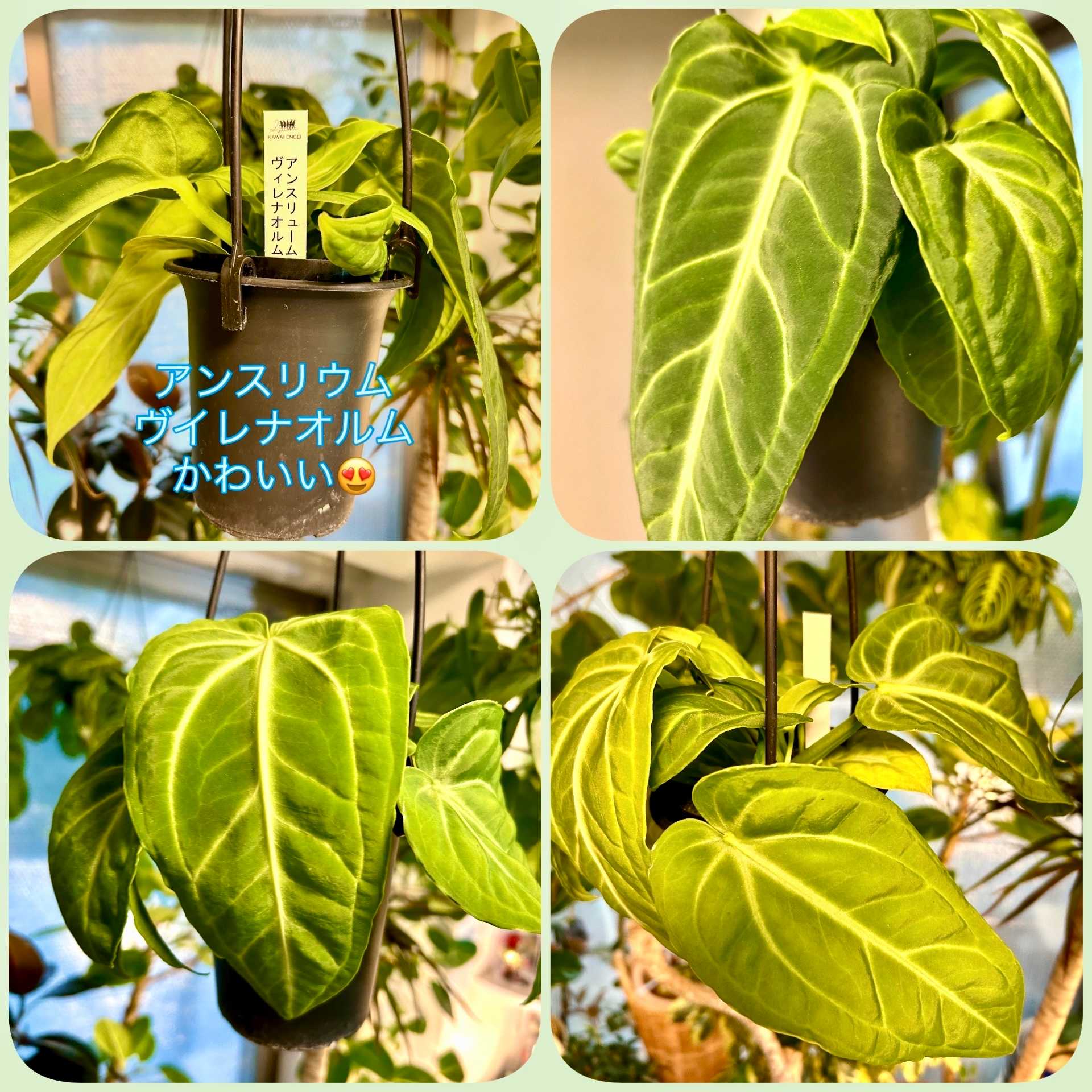 初めてのアンスリウム😊大きなハート❤️の葉っぱと葉脈に一目惚れ🤩育てやすい