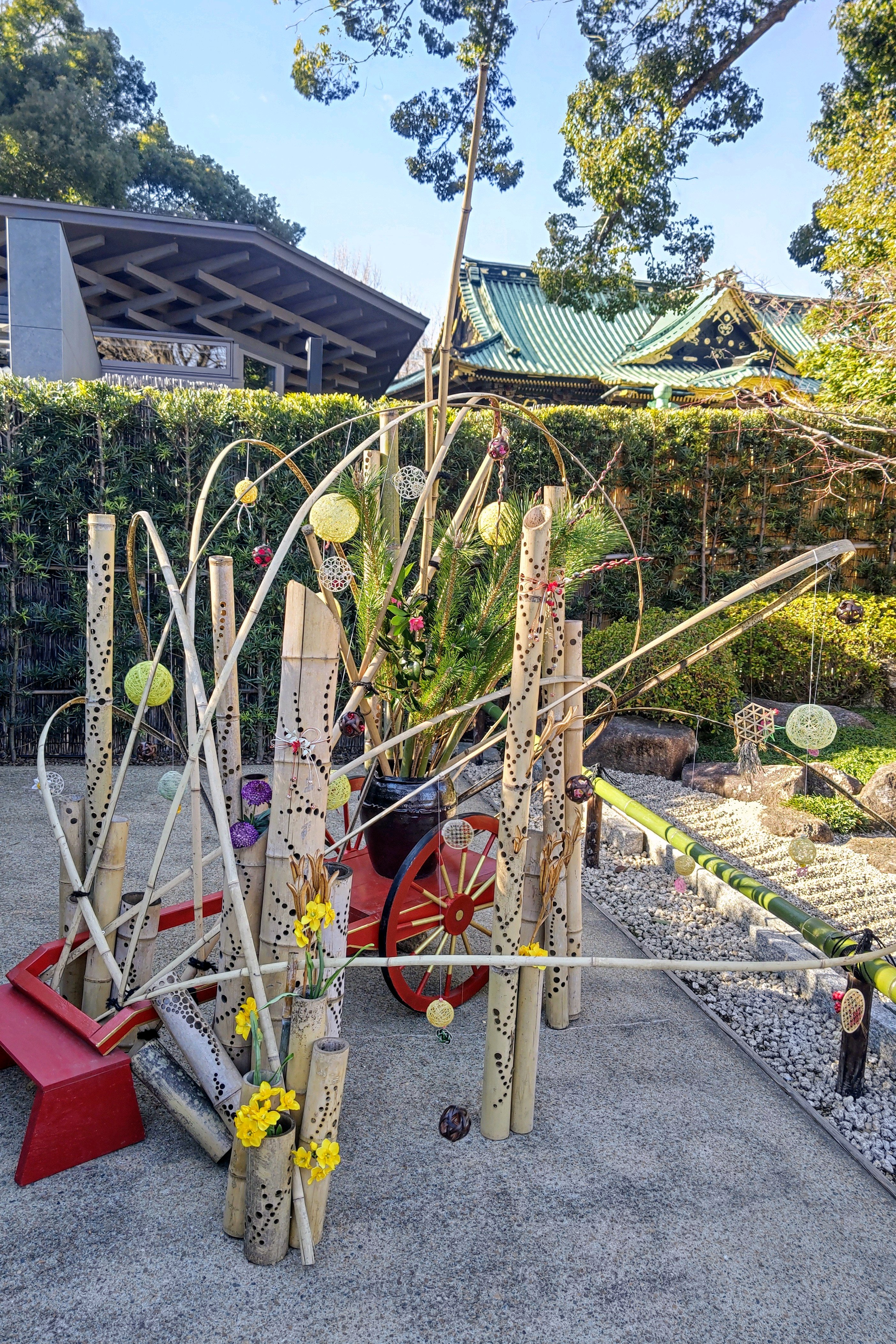 竹灯籠のオブジェから臨む