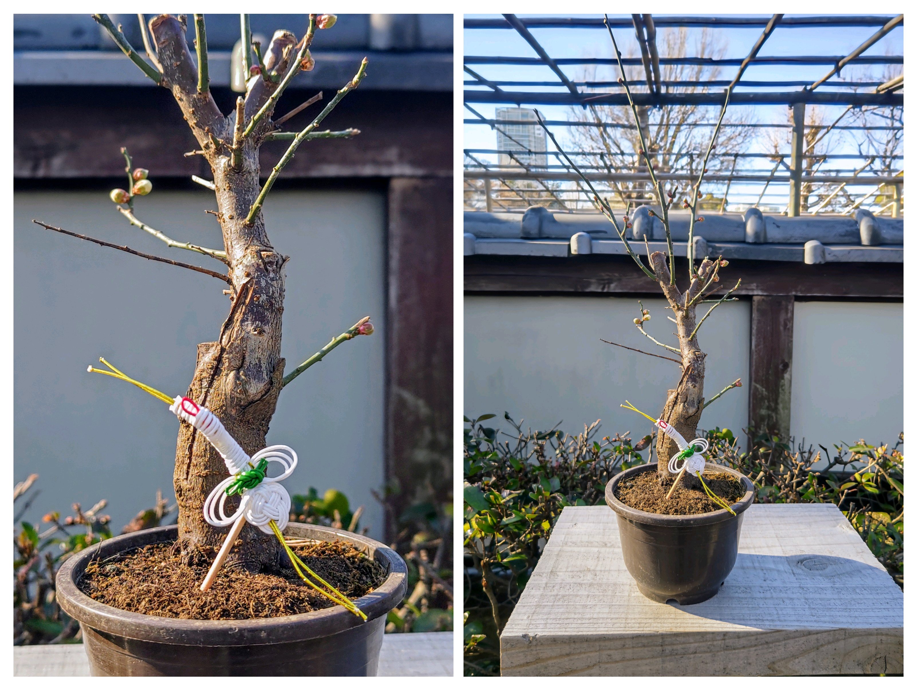 南天と鶴亀
