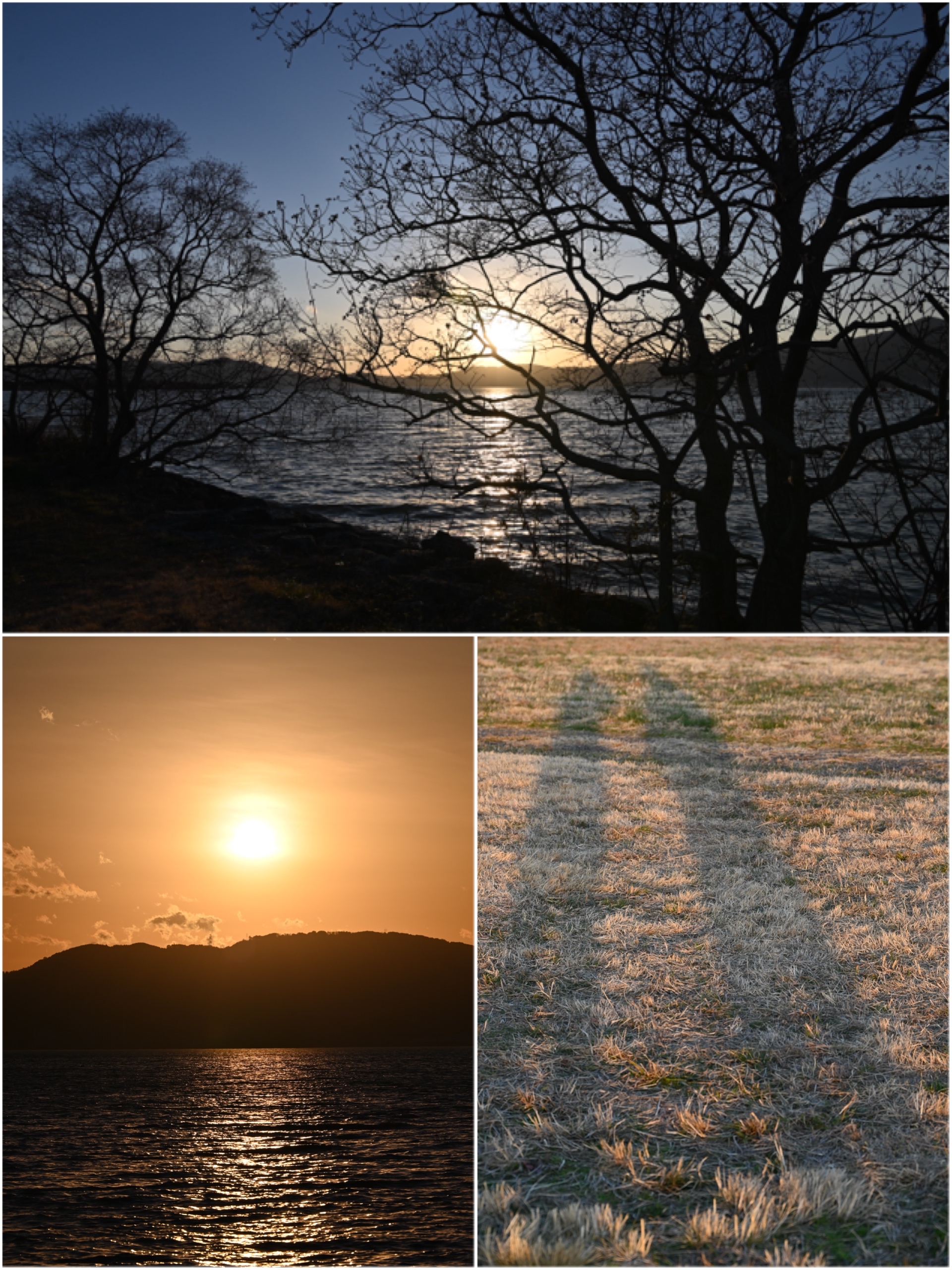 ✨️日が暮れ始めた帰り道🚙 ³₃湖畔に車を停めて綺麗な夕陽を眺めました✧︎*。後ろを振り向くと自分達の長ーい影ができていました😲寒くなってきたので家路に着きました🚙 ³₃