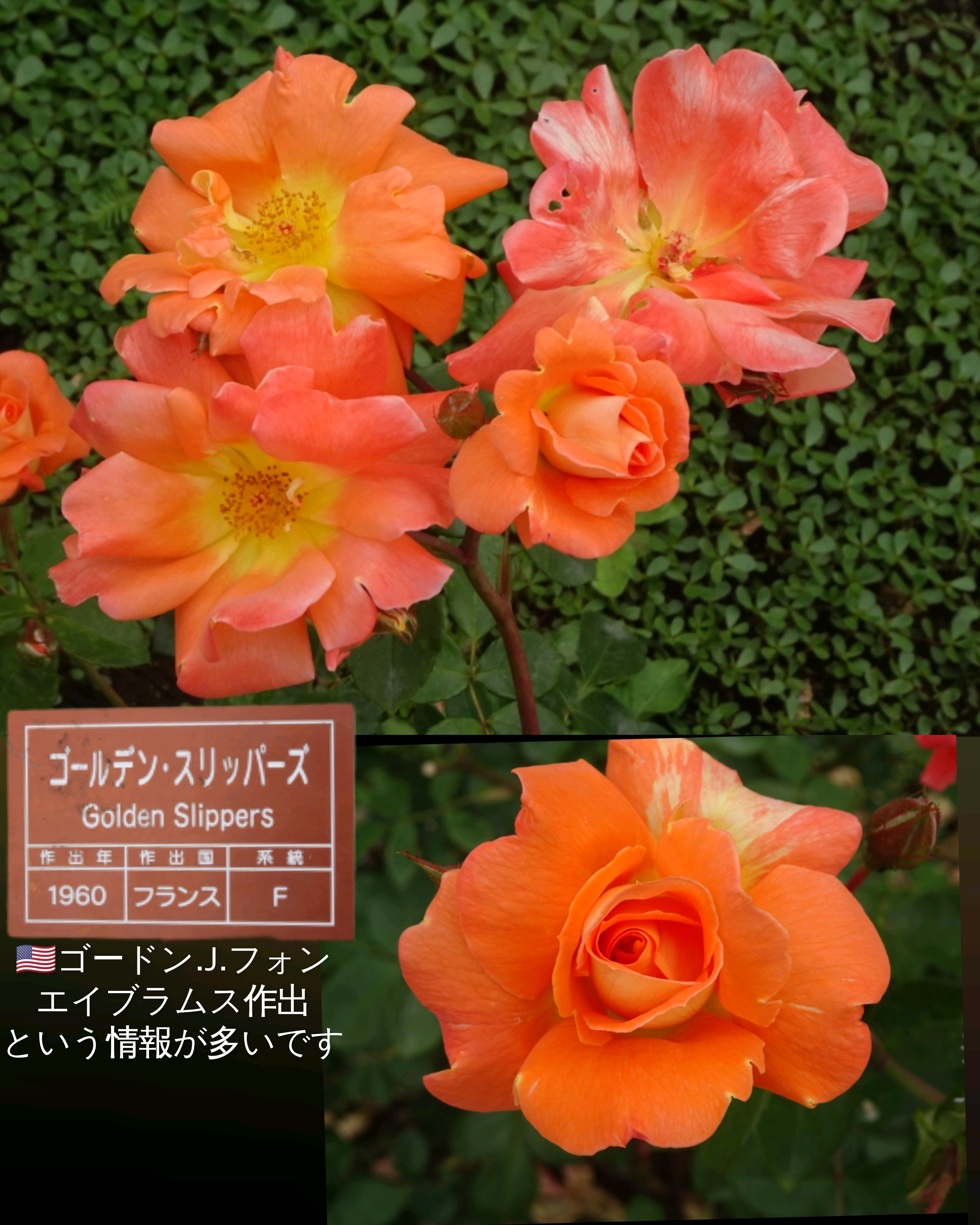 名札にはフランスと書いてありますが、調べたらアメリカの作出者のバラのようです。ゴールデンスリッパーズという名前がフランスっぽくないな〜!と思いました。アメリカなら納得です🤭