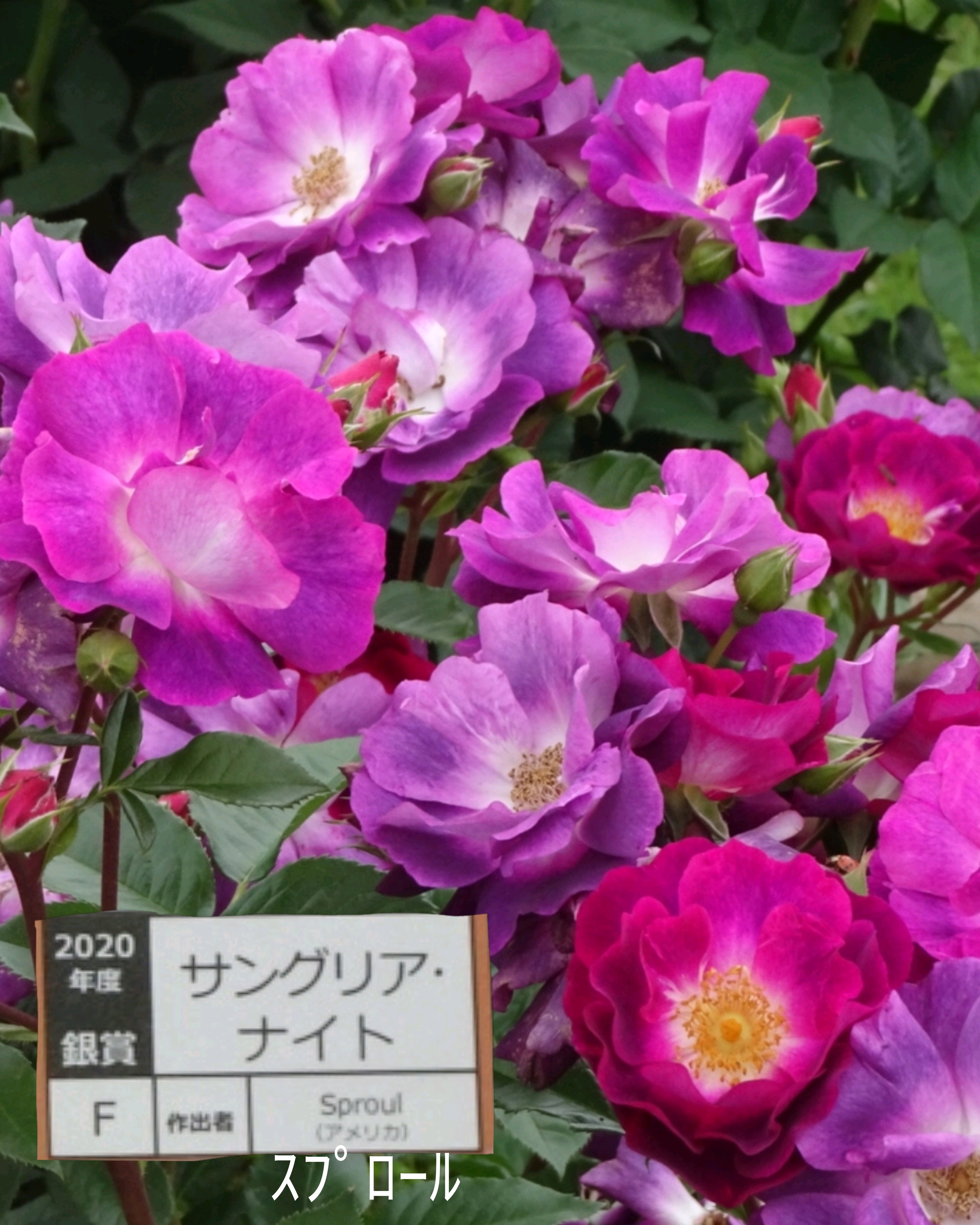 2026/1/15サマードリームの次に〈サングリアナイト〉を【追記】しました!2020年度銀賞受賞の紫色と紅、2色の薔薇です