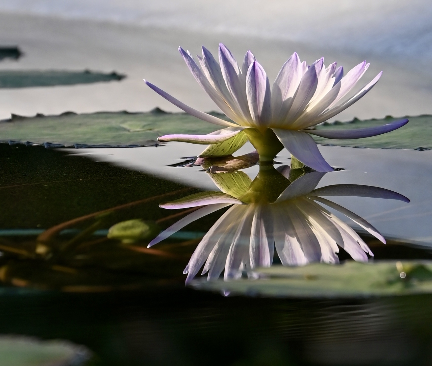✨️花弁の先が薄紫に色づいて美しいスイレンです🤍💜✧︎*。