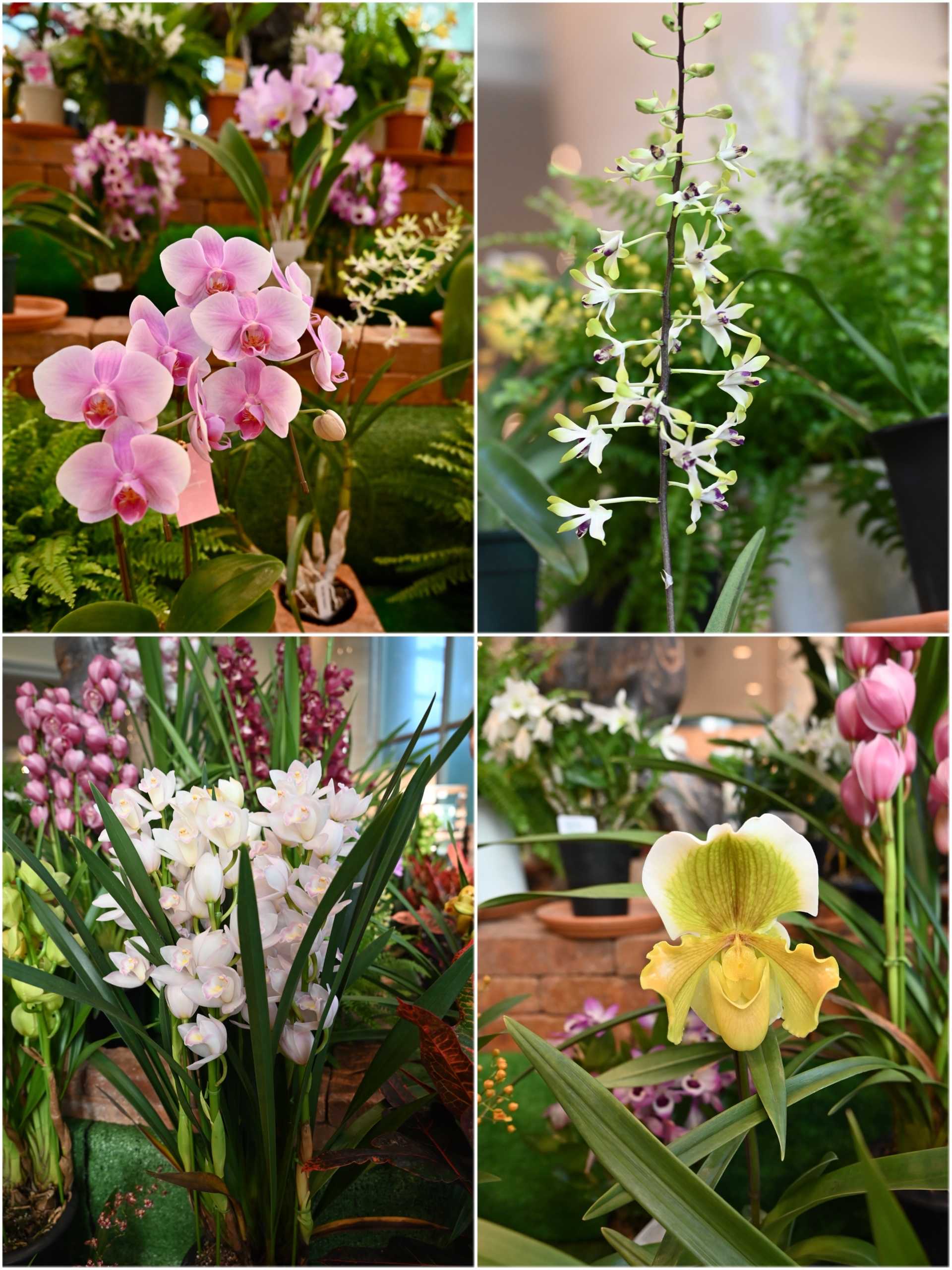 ✨️左上)コチョウラン・右上)デンドロビウム・左下)シンビジウム・右下)パフィオペディラム