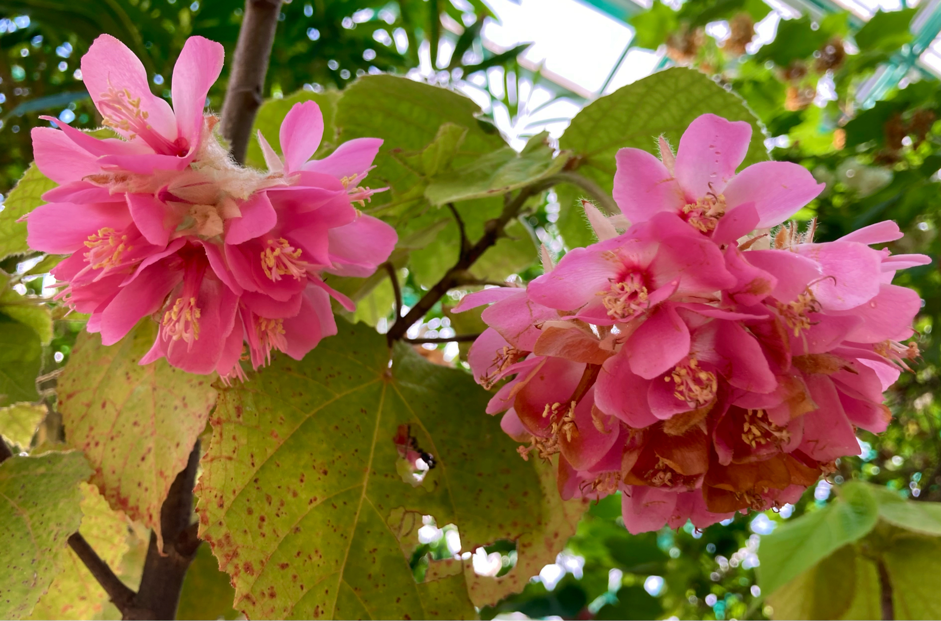 明るいピンク色の花が集まってブーケのように咲いていました💐