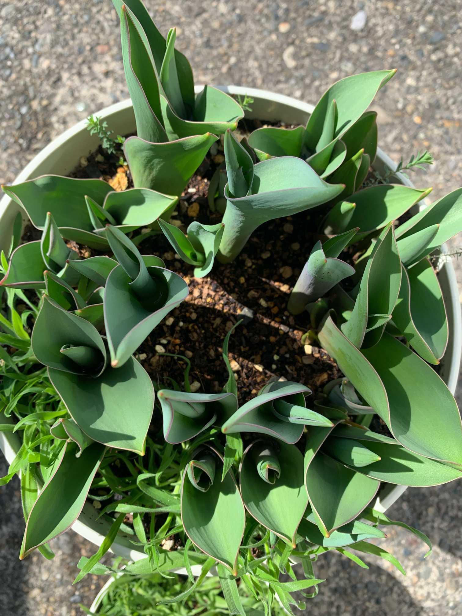 球根の向きと葉っぱの出方に