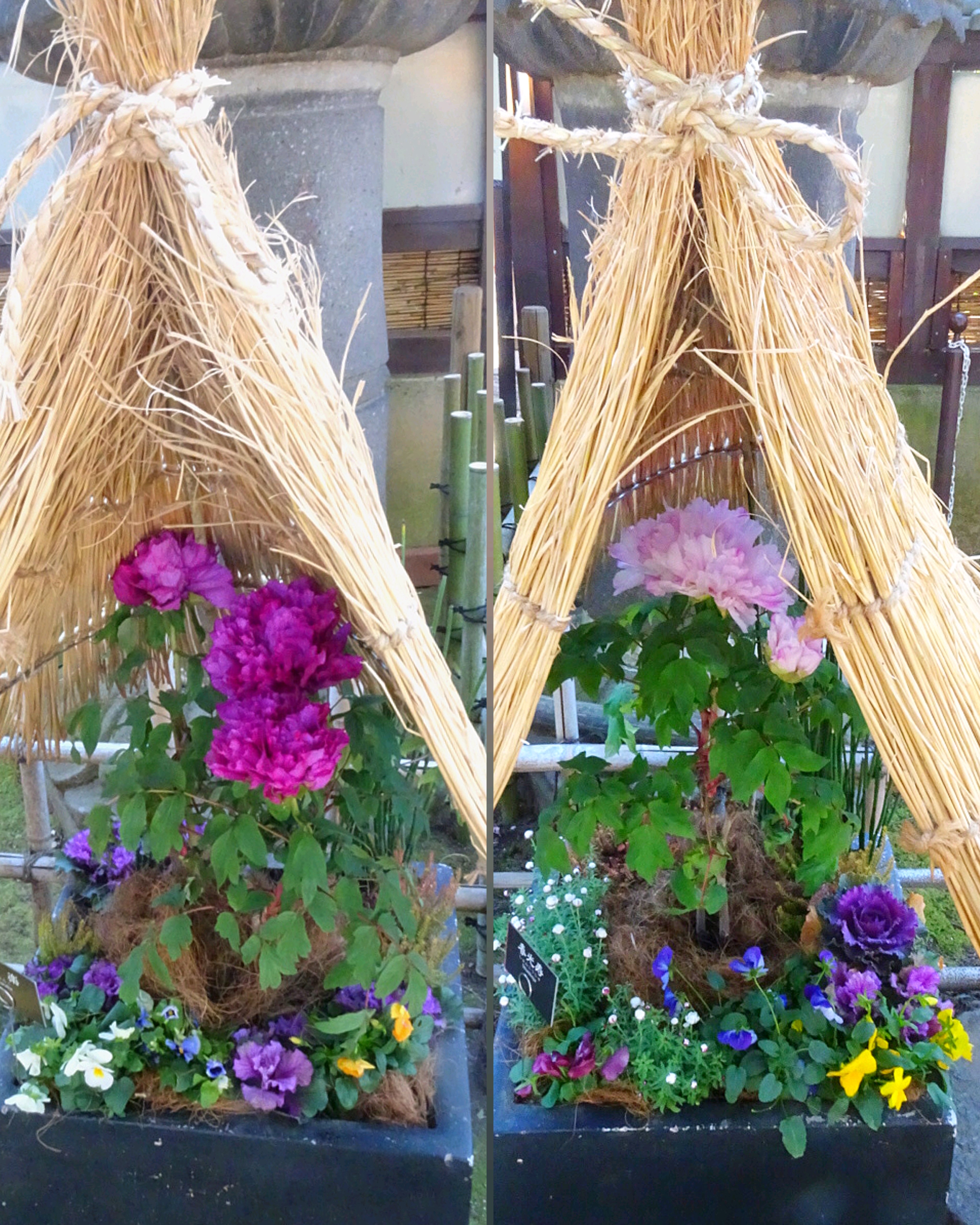 入口の両側の寄せ植え