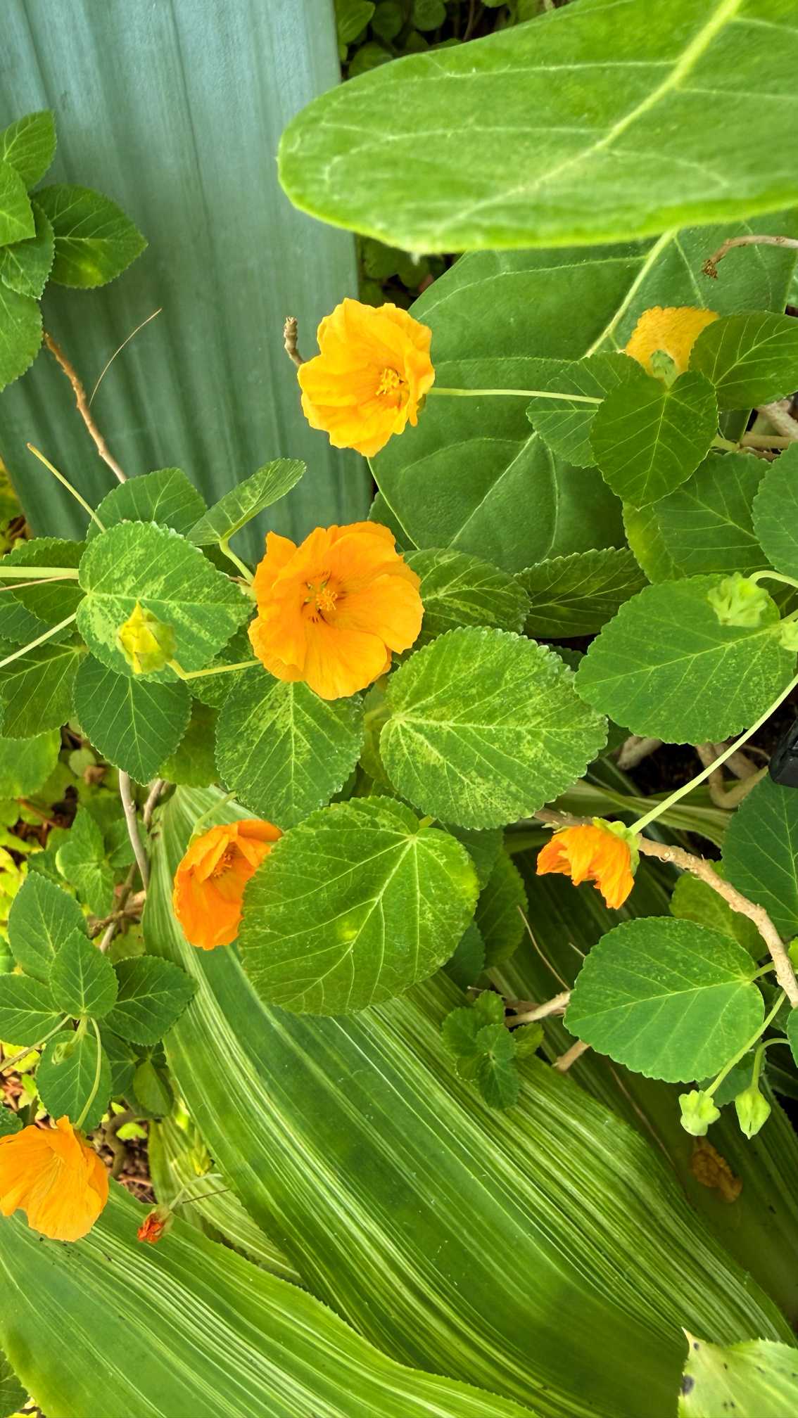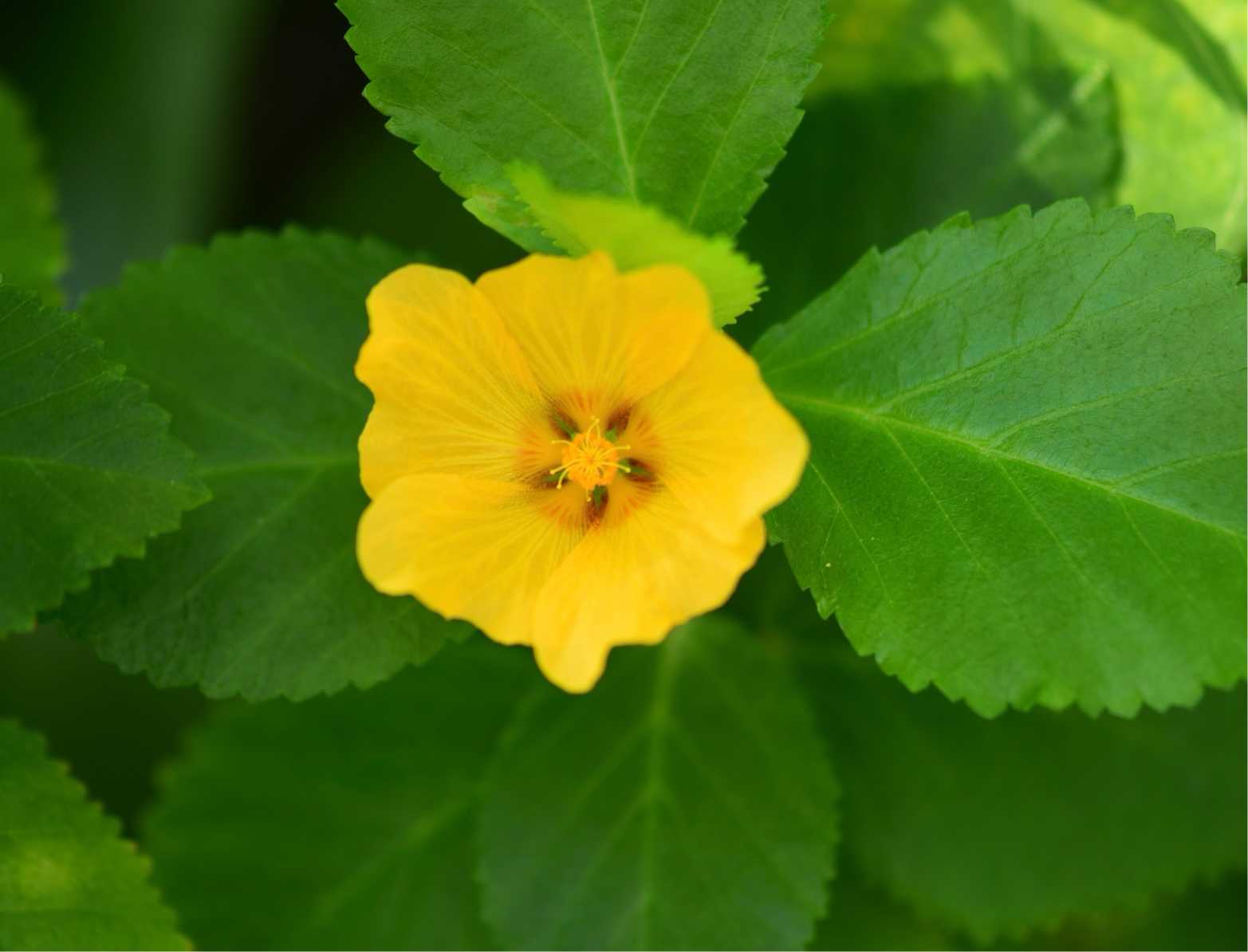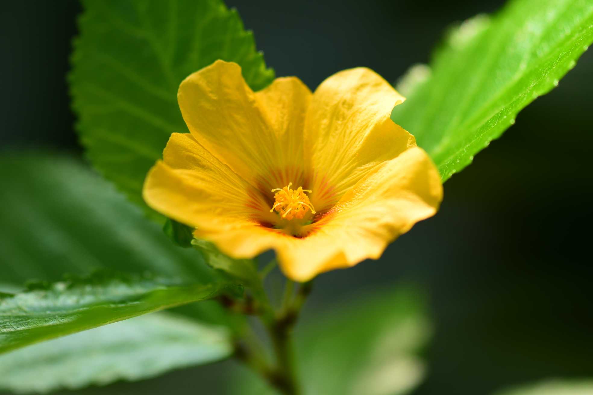 →マオ・ハウ、ヘレの花弁は僅かにオレンジ色を帯びた黄色で花柱かわ太く、繊毛に覆われている。蕾のうちはそれを包む様に長い特徴的な萼があり、葉は大きく3〜5裂する。