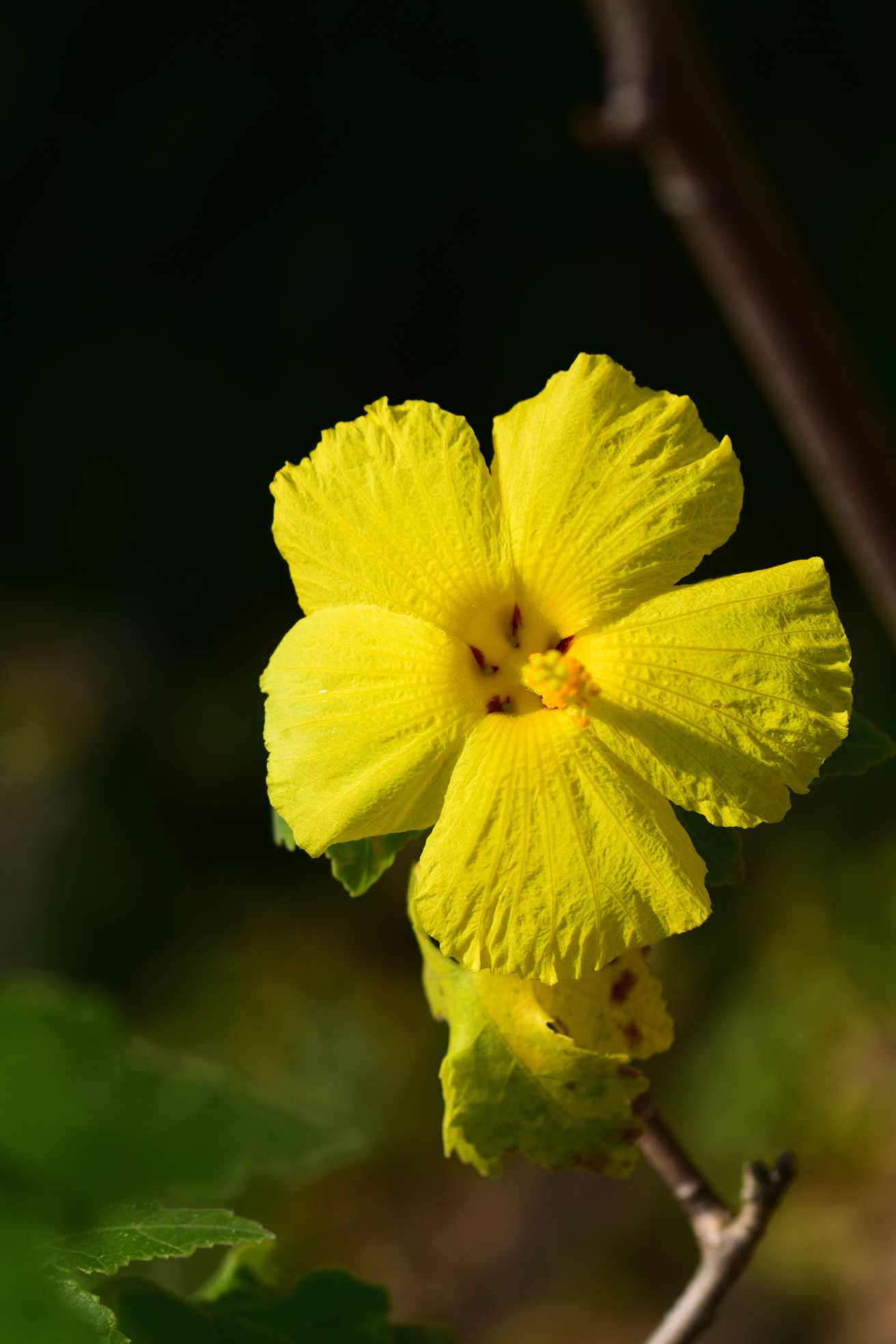 花柱も花弁と共に黄色で、細かな毛(繊毛)に覆われており、他のヒビスクスに比べて花柱は太く無数の繊毛に覆われている。