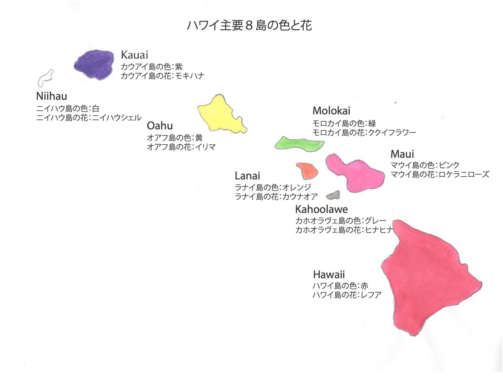 ハワイは主要8島で形成されて其々色と花が決められている。
