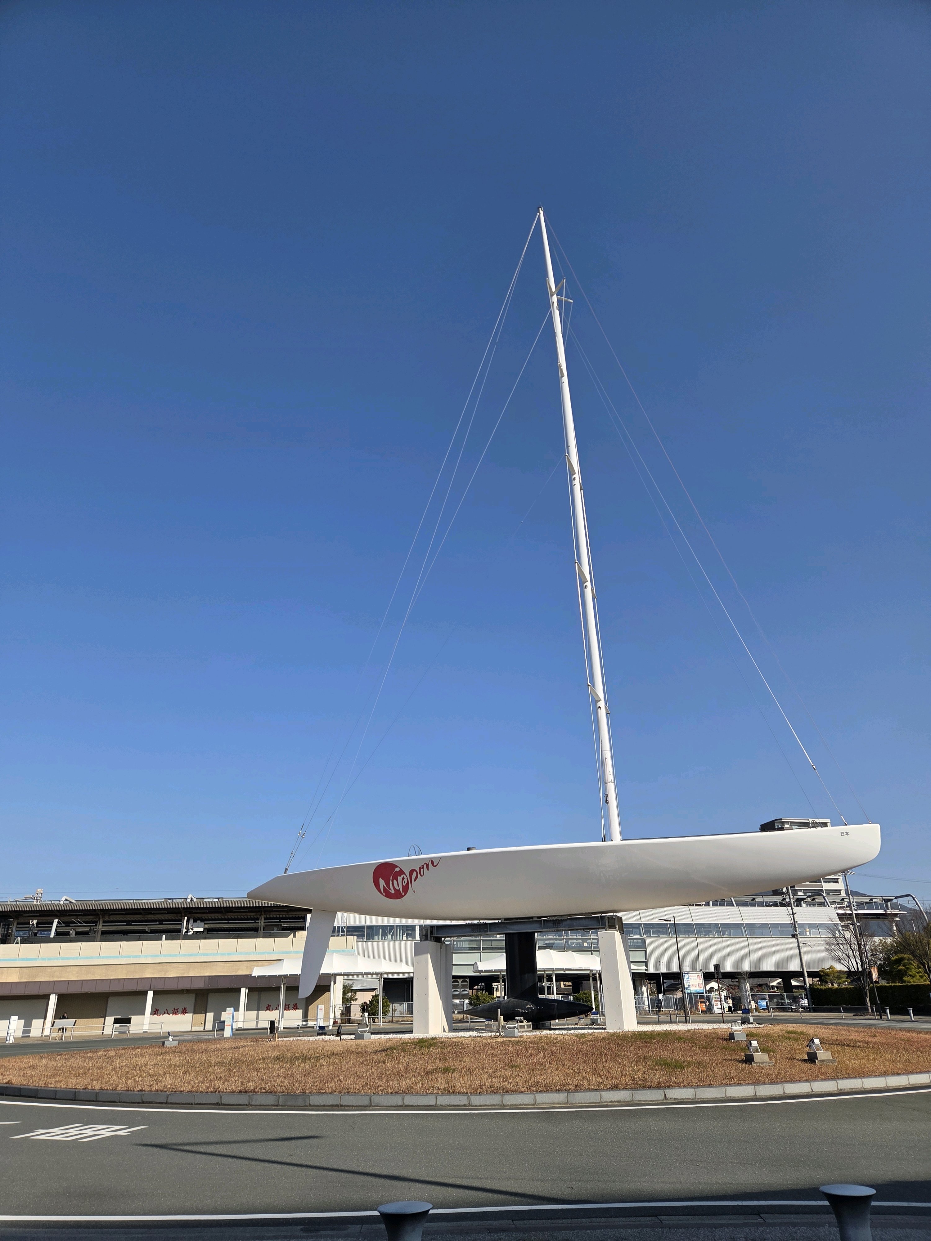 駅前に大きなヨットが