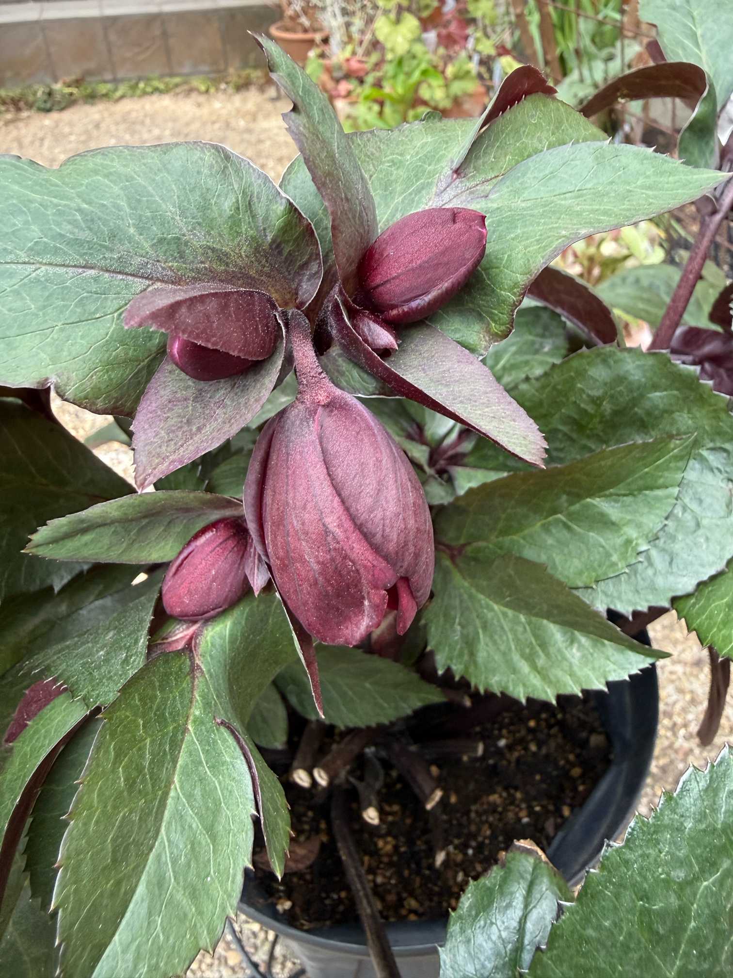 あのボルドー色のクリスマスローズ素敵ですねと。