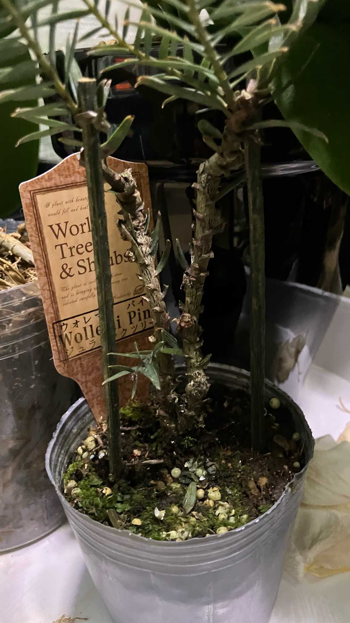 今から10ん〜年前、浜名湖花博で初めて見たジュラシックツリー🌲値段もそこそこだが、今回縁あって我が家に来た。セコイアよりしっかりした葉っぱ。細いながらもどことなく違いを感じさせるこの木、はてさてどう育つか?