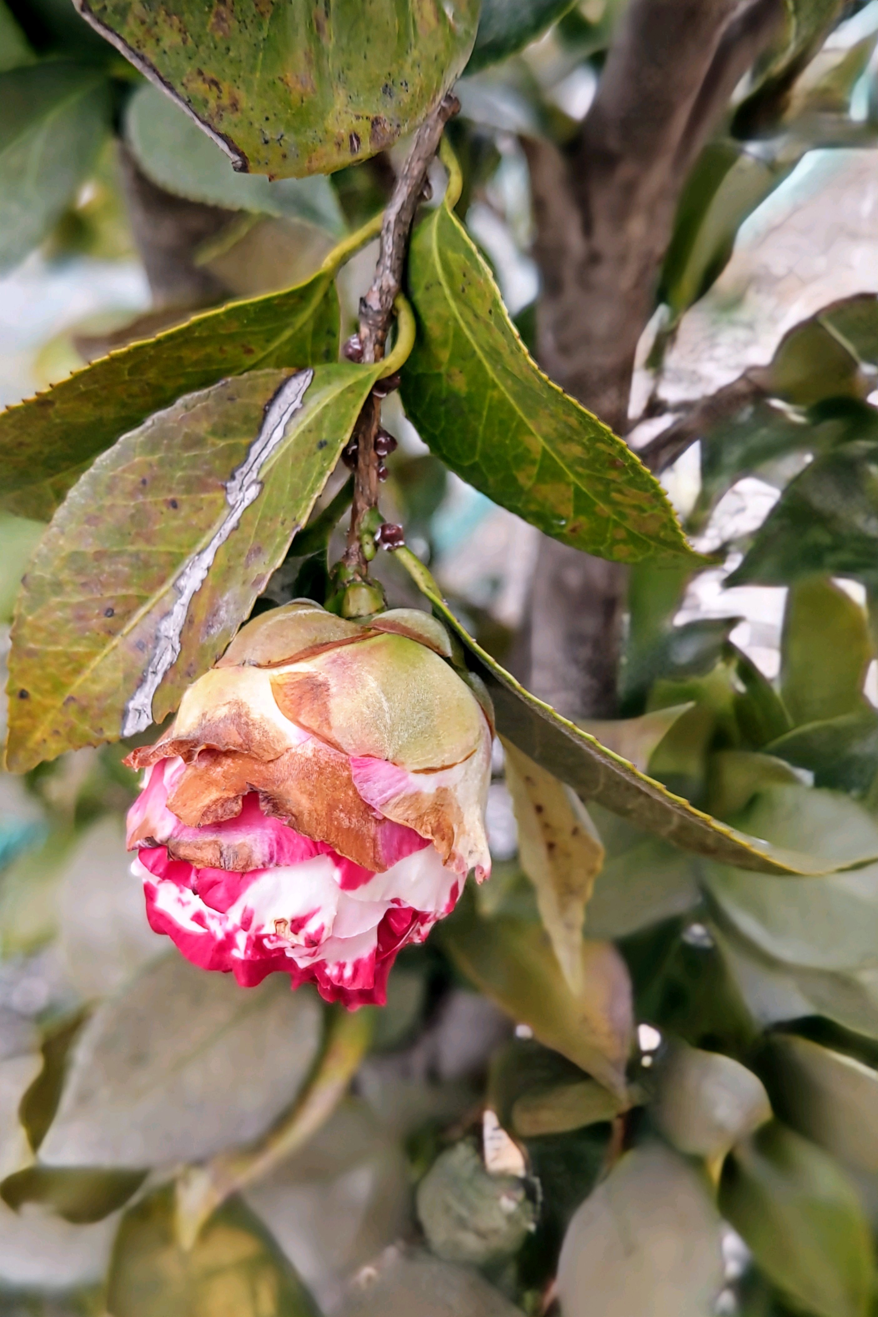 椿 太神楽 今年の開花はかなり遅れて