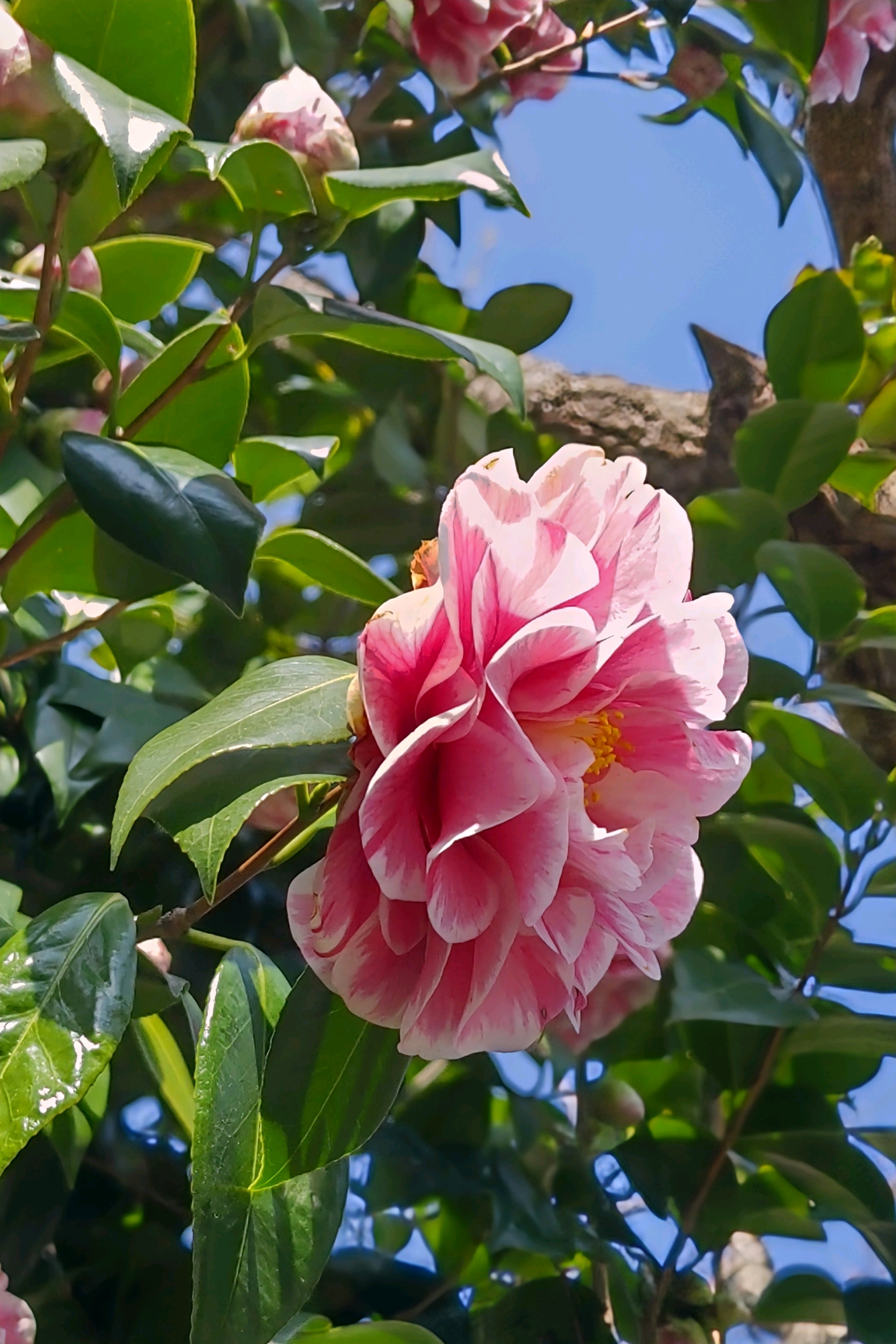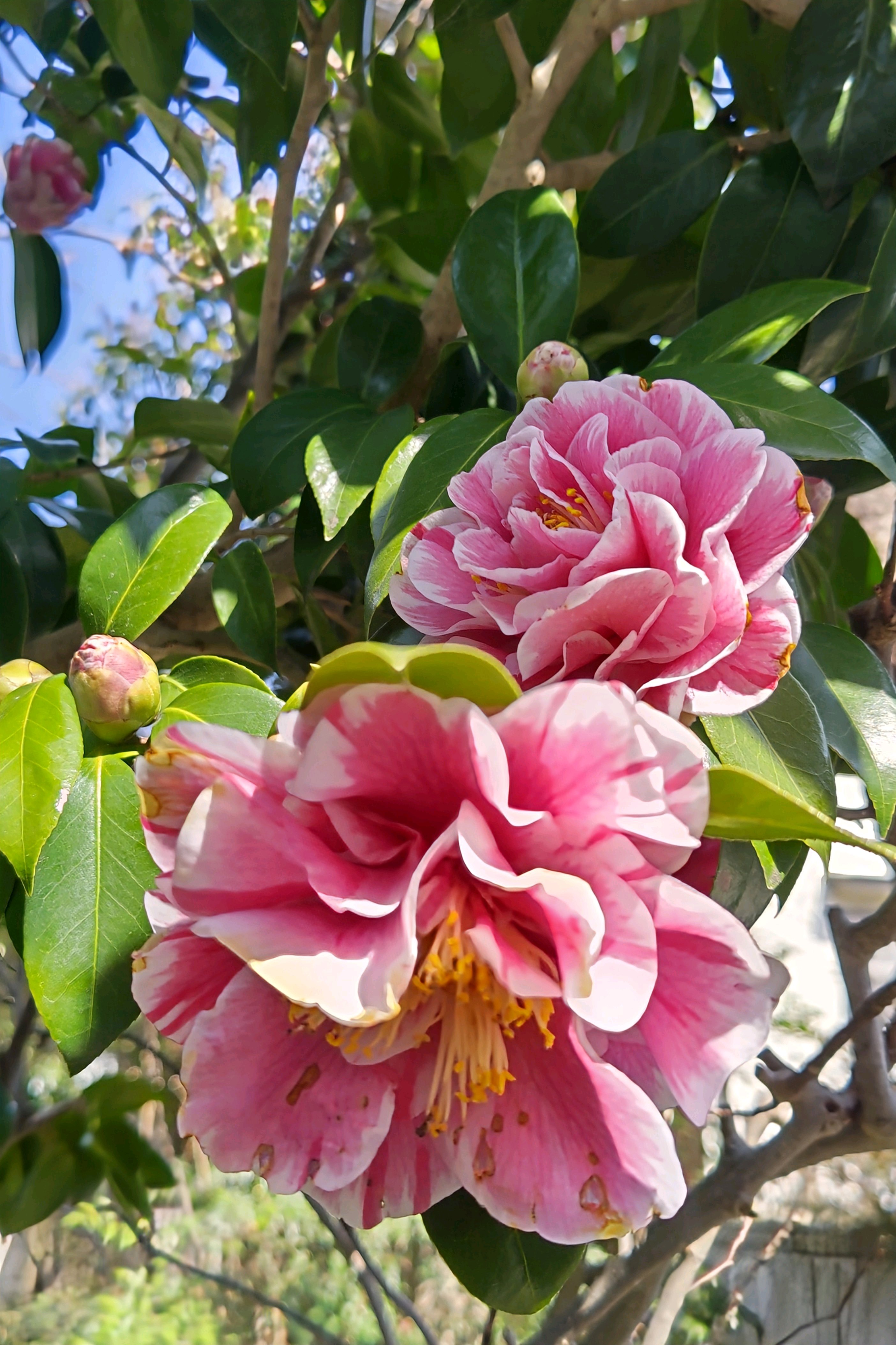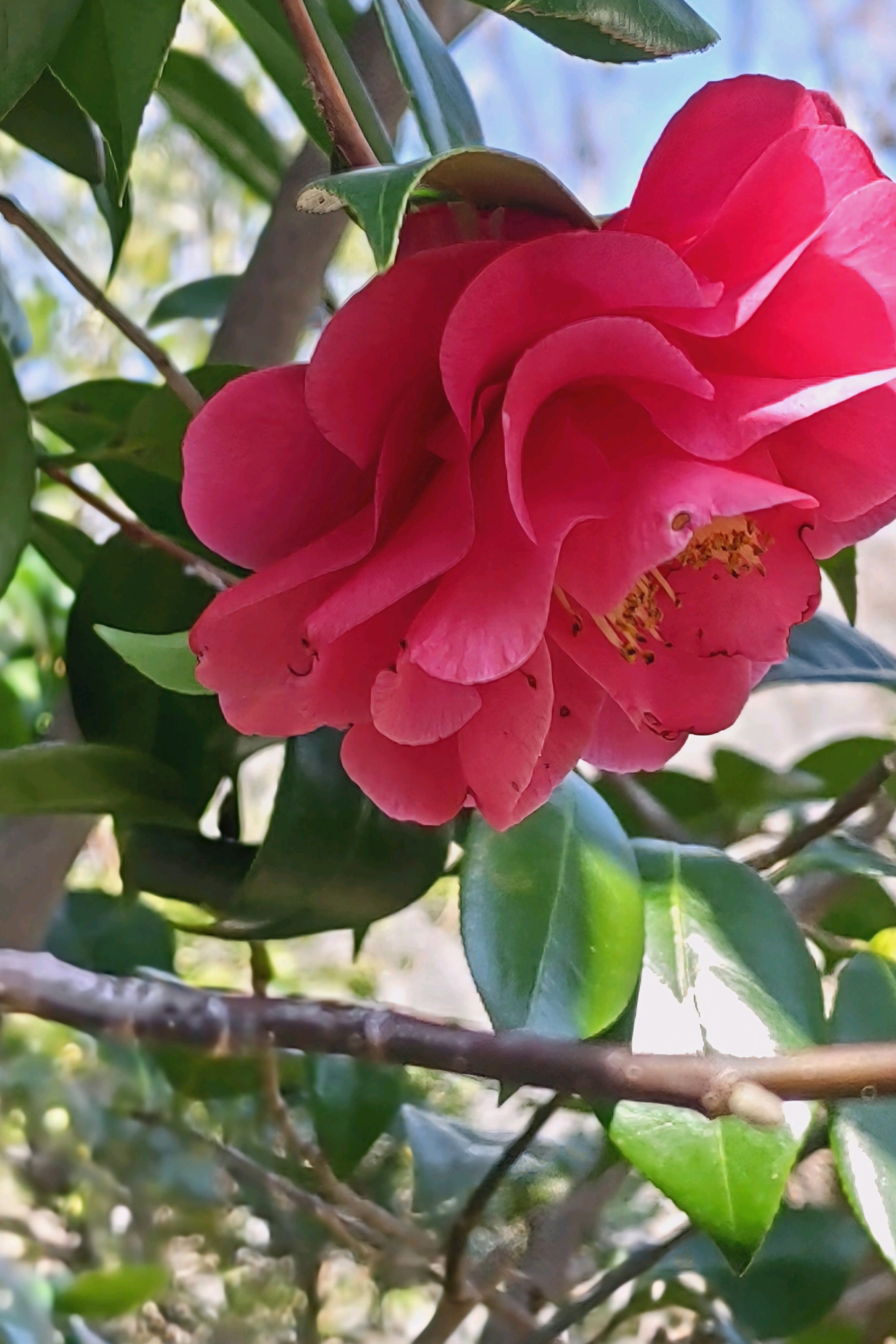 公園のハルサザンカ笑顔