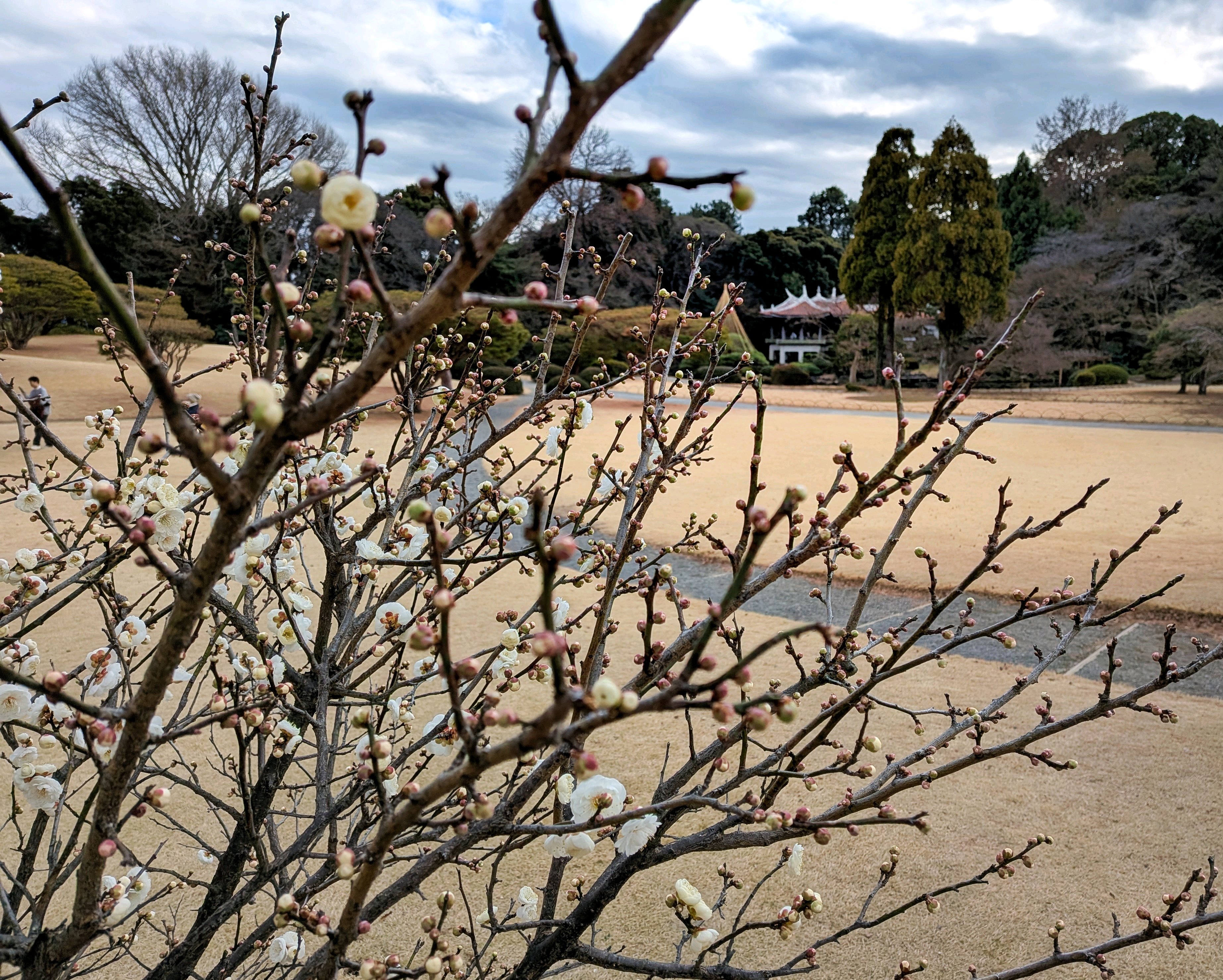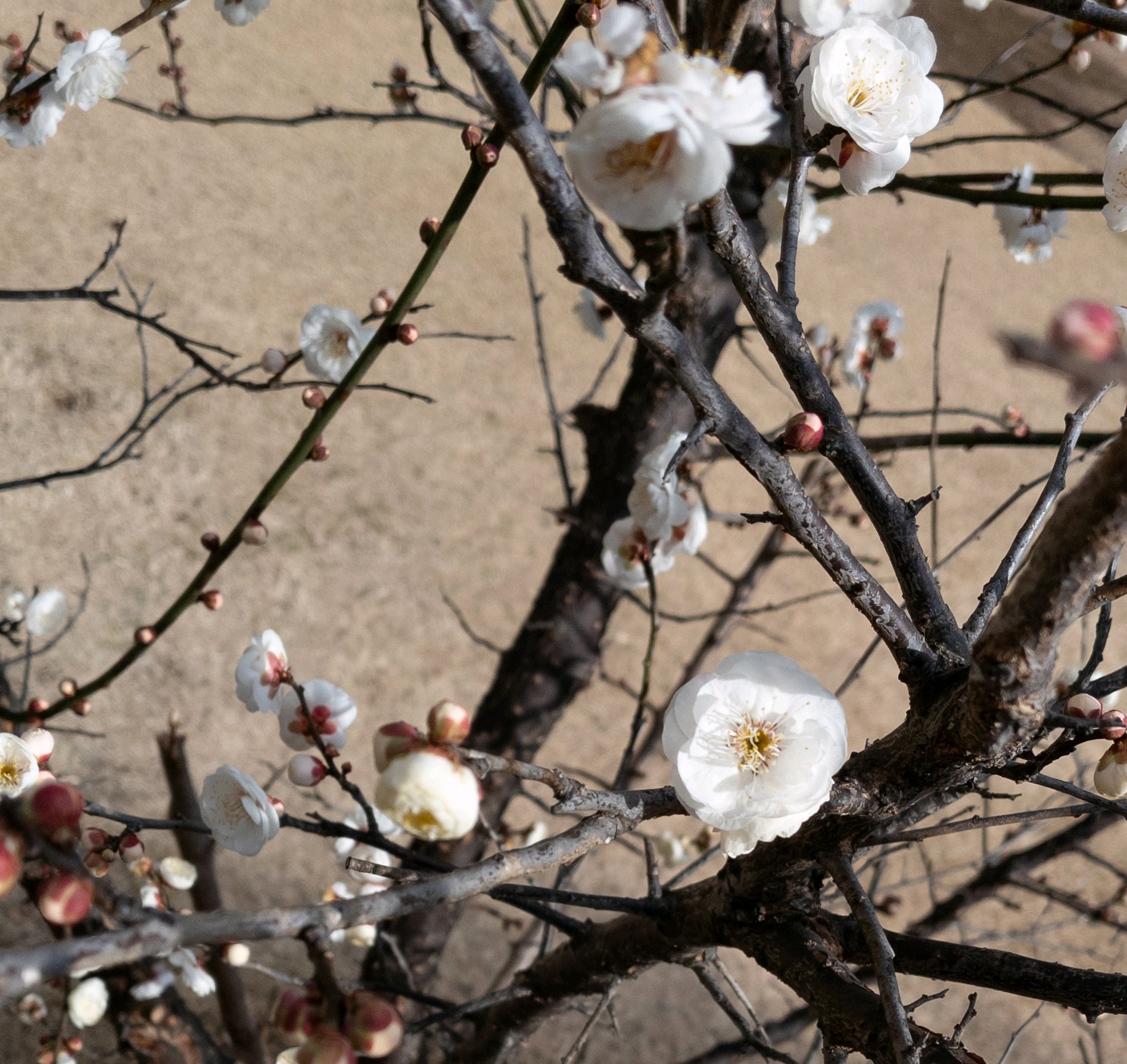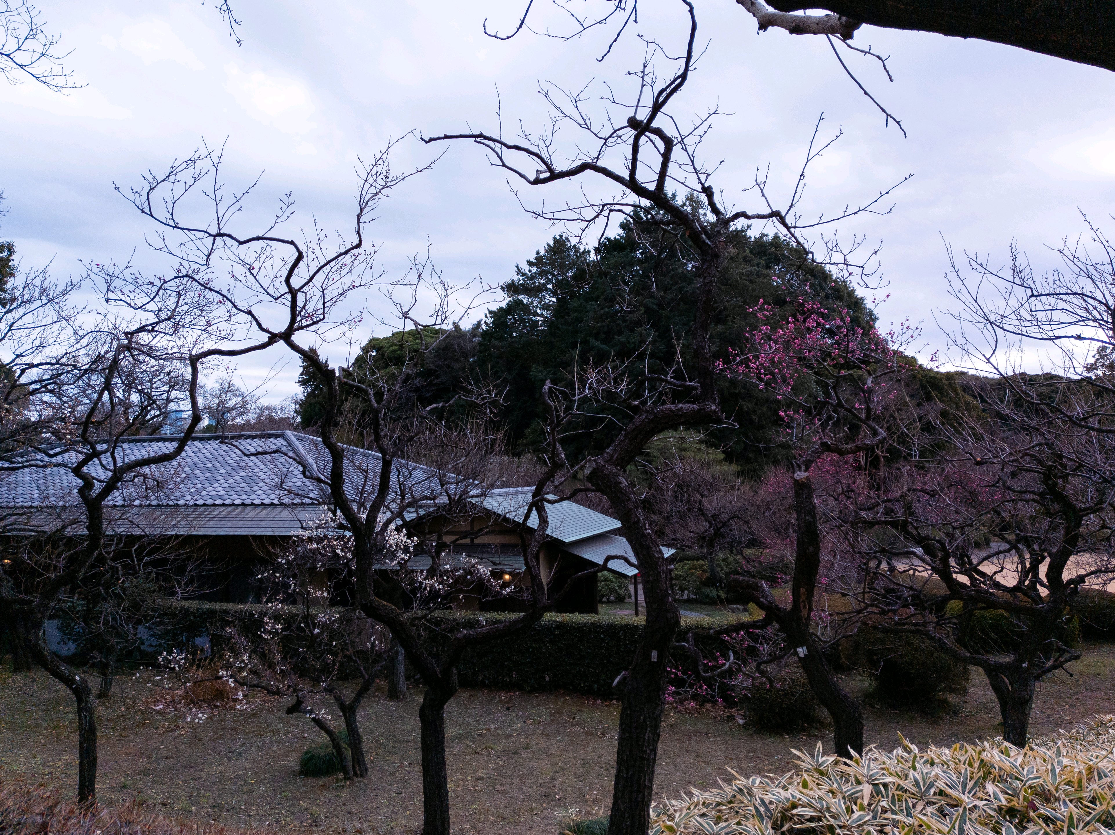 日本庭園周囲の梅は、木によっては満開に近かった。