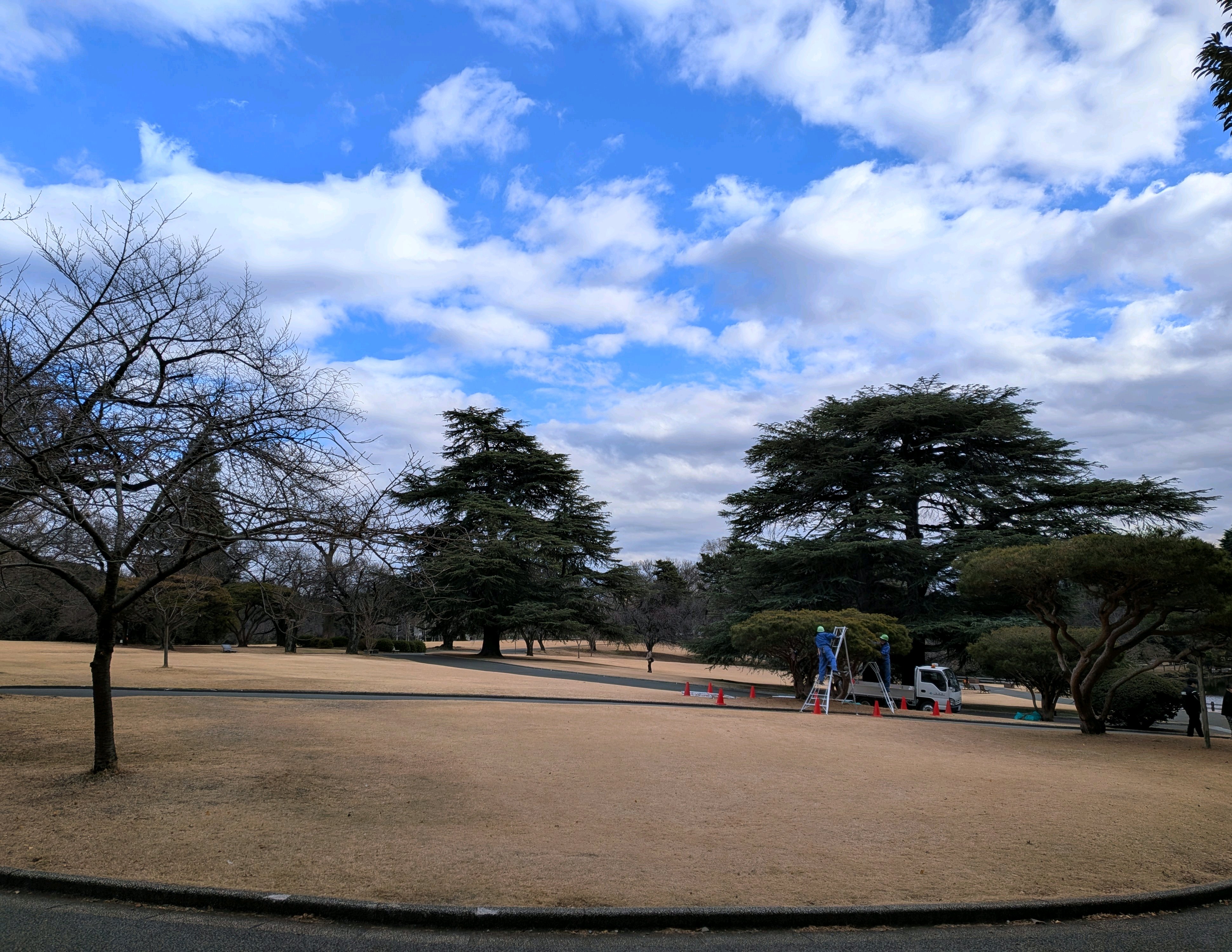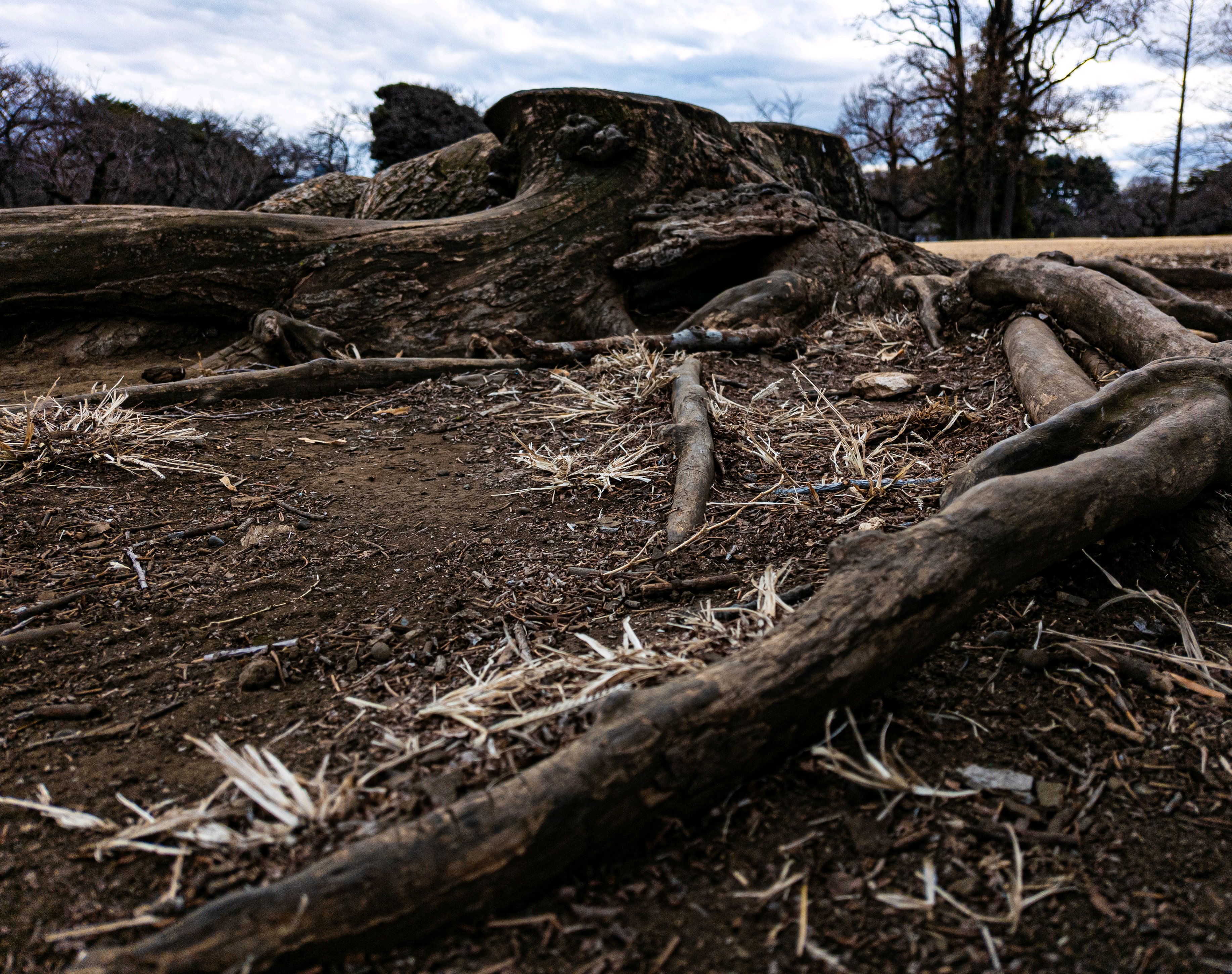 日本庭園の松の虚は、今は何もなくなっている。たぶん暖かくなったら、すみれが咲くはず。