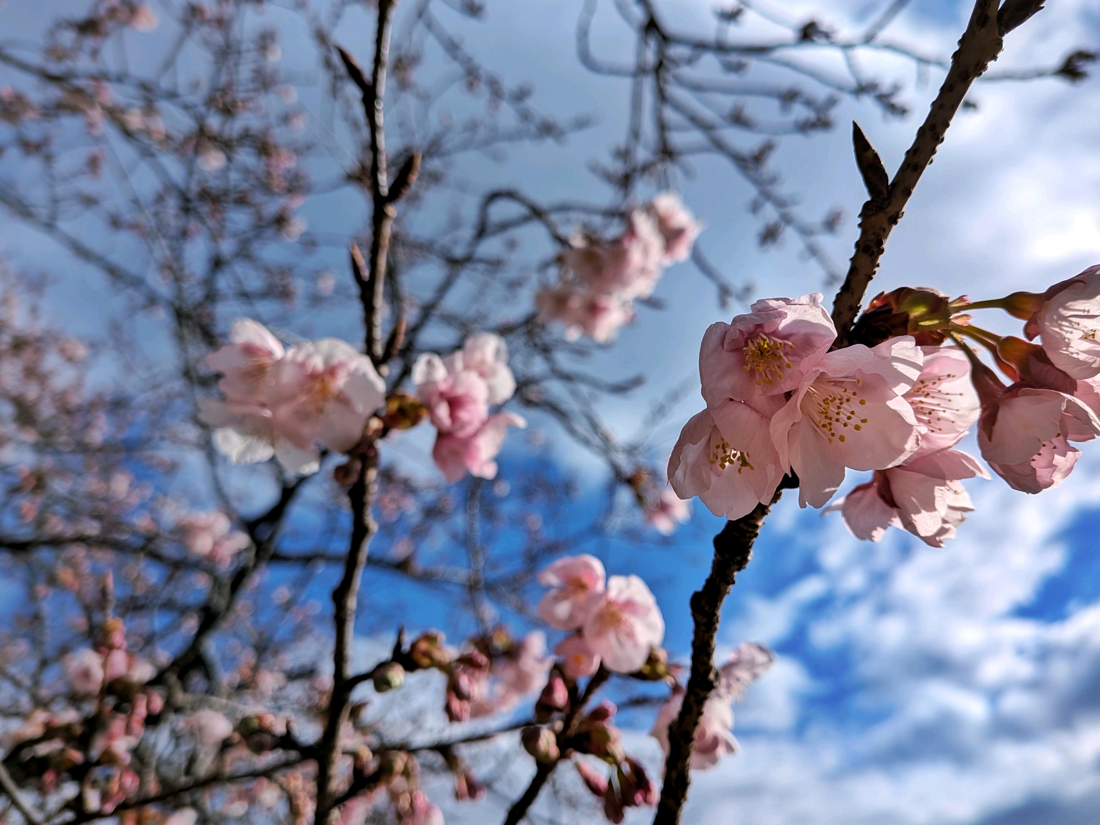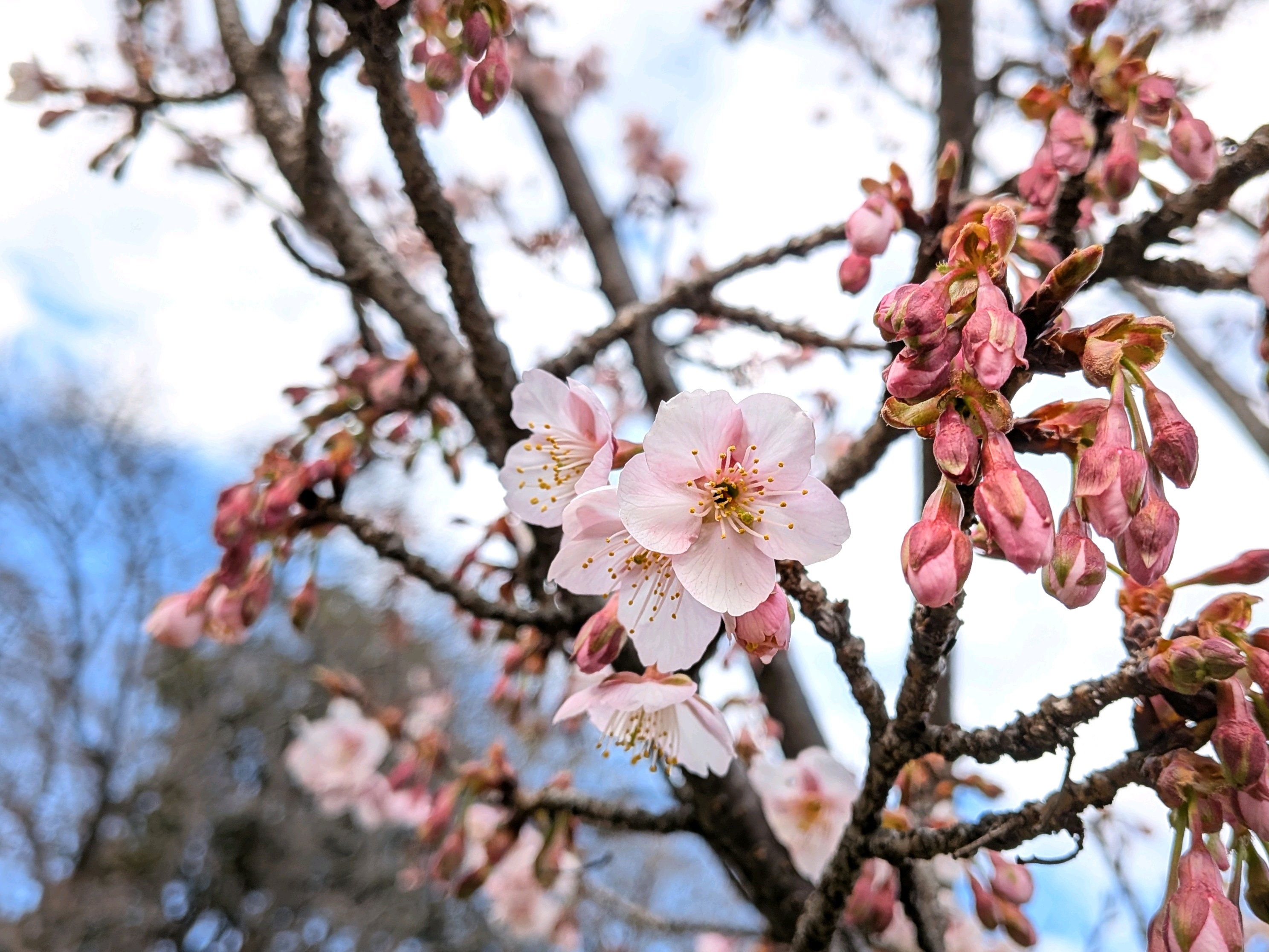 冬の間に咲く桜は、ほぼ咲きはじめたみたい。