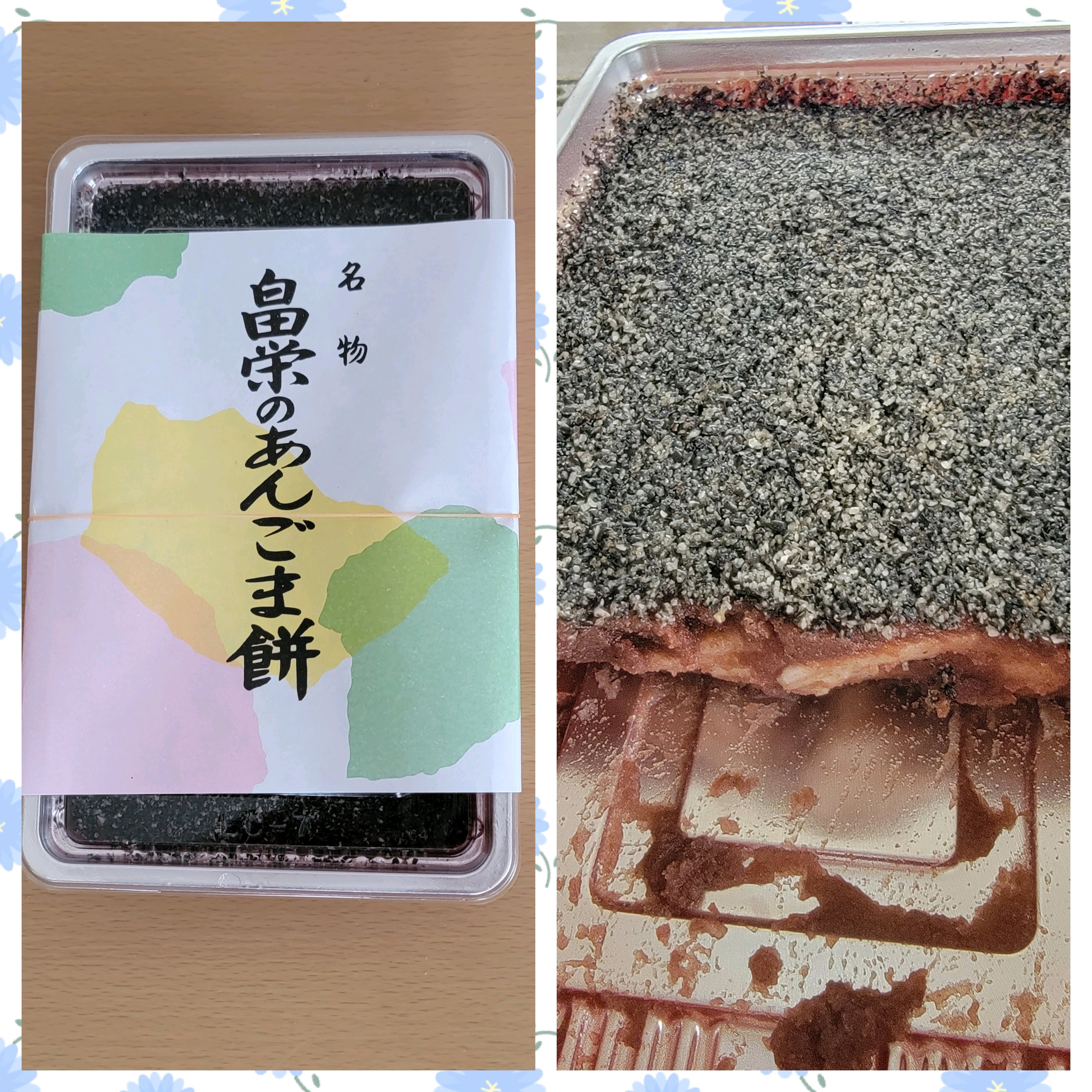 ふわふわと柔らかいお餅の上にあんことすりごまがたっぷりのっています。
