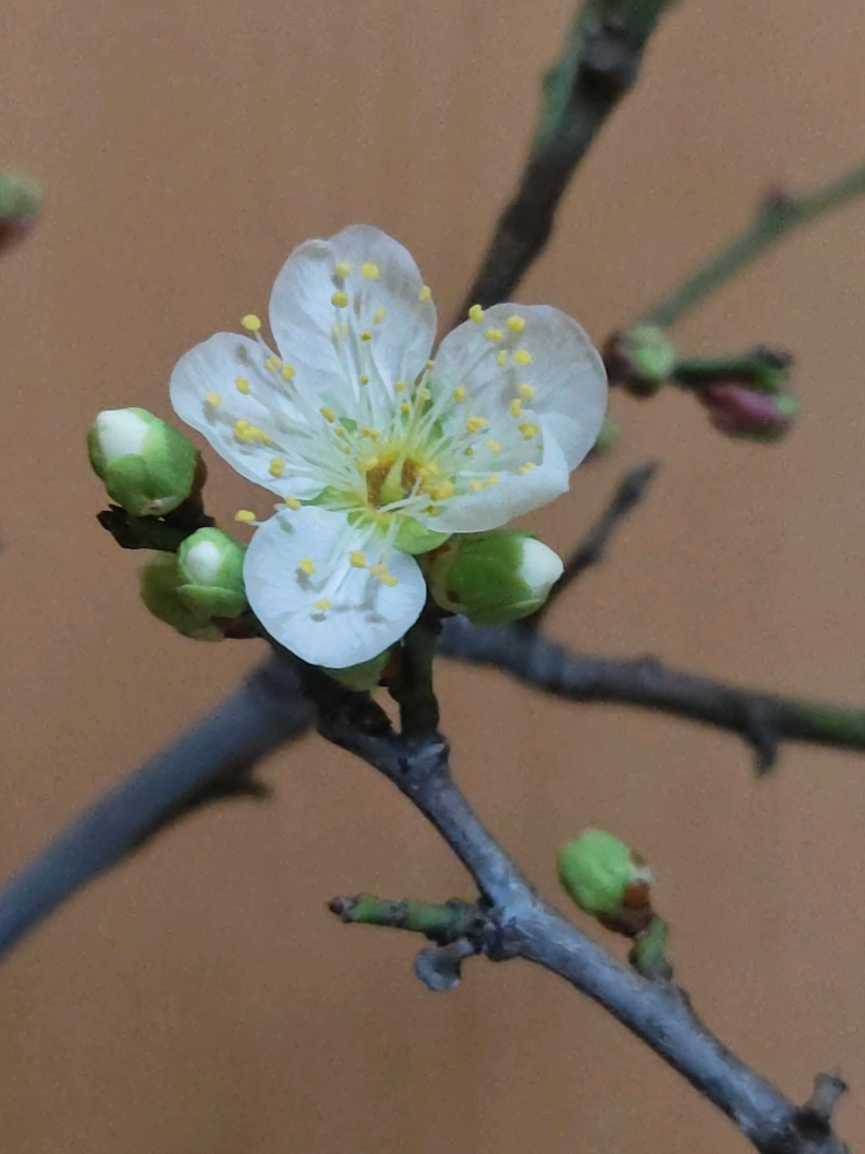 2025年末、剪定した緑萼の白梅の枝を貰って花が咲いた。