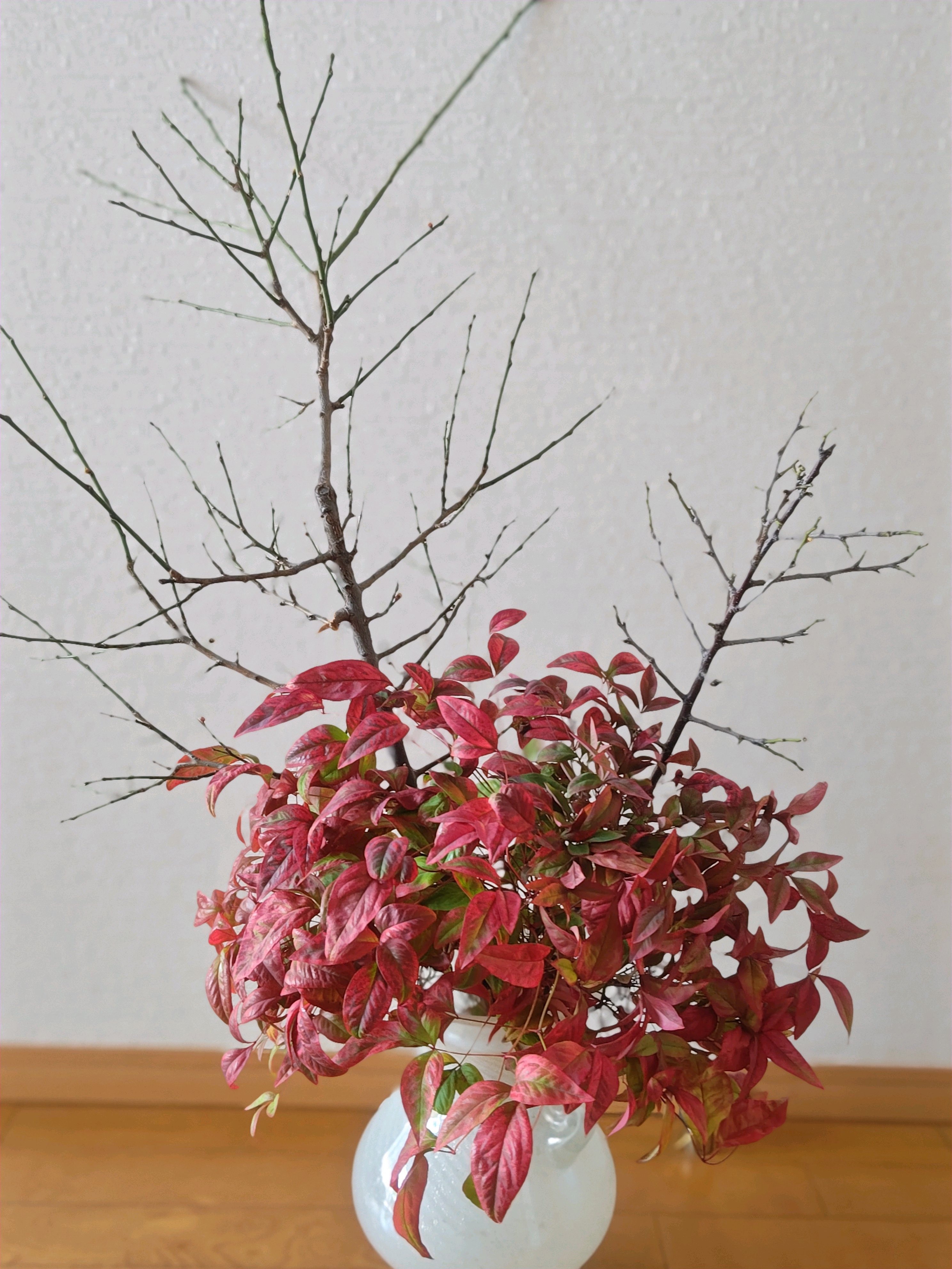 年末(2025/12/29)、息子の家から剪定して持ち帰ったオタフクナンテン。