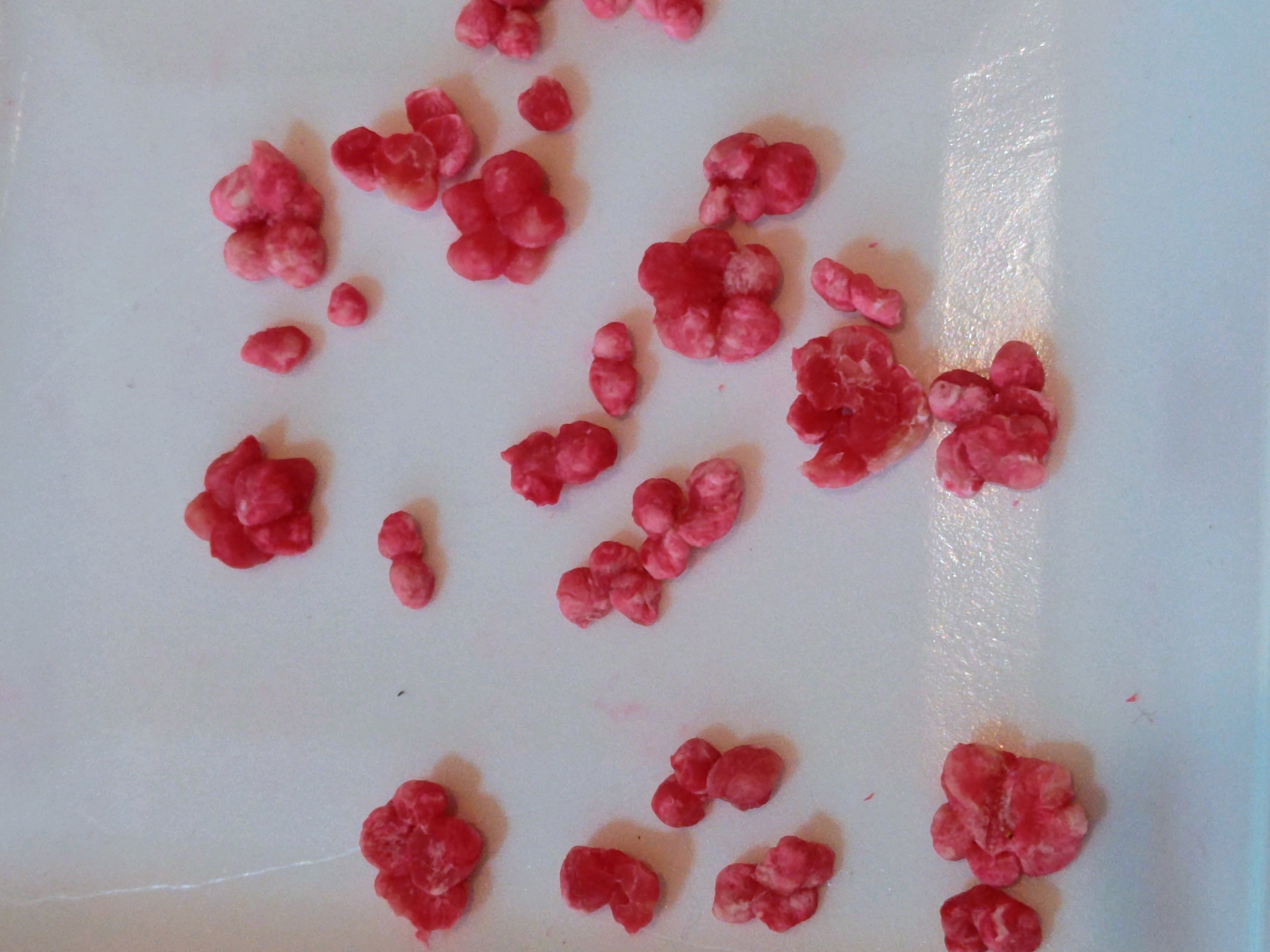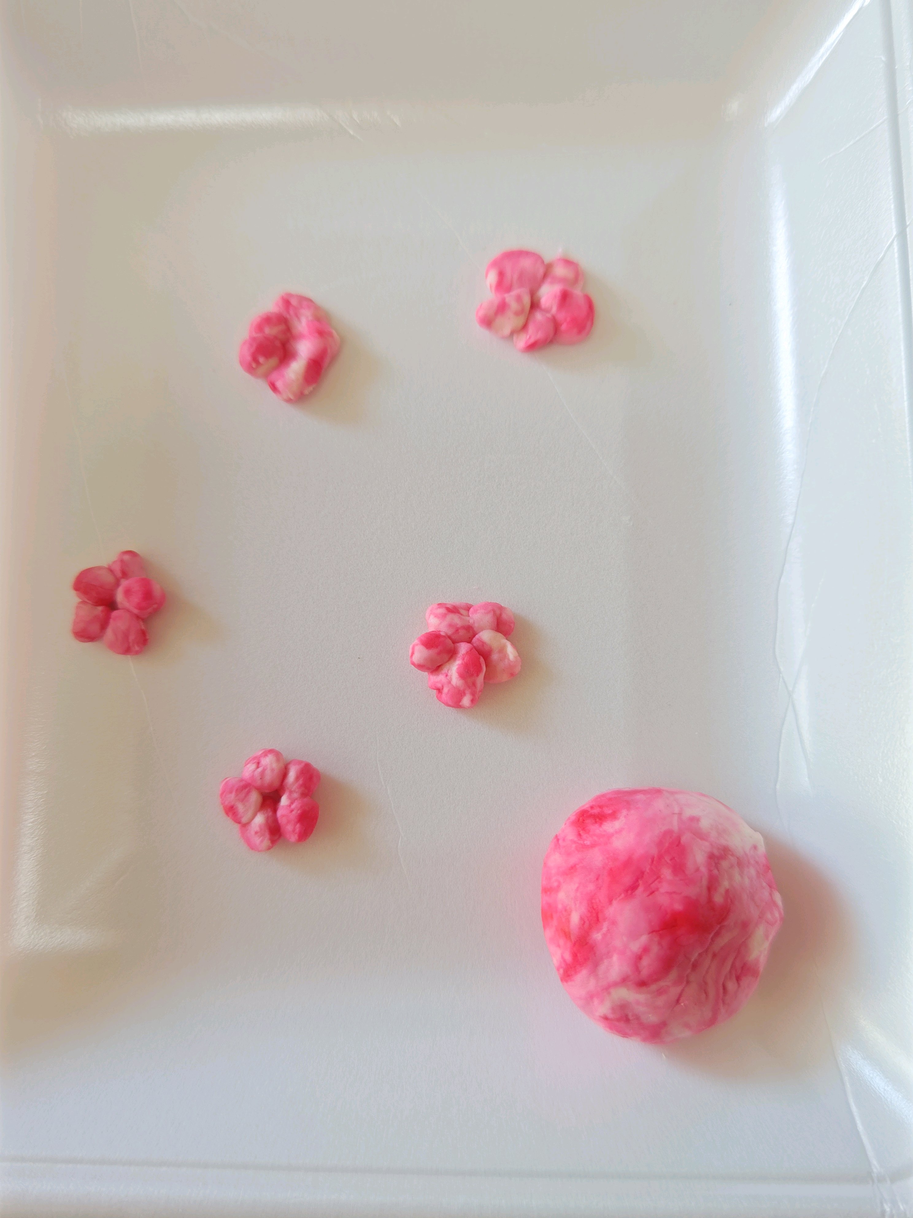 子供が遊ぶ物で無いので、絵の具で着色。丸めて5枚花びらの梅の花に成形。
