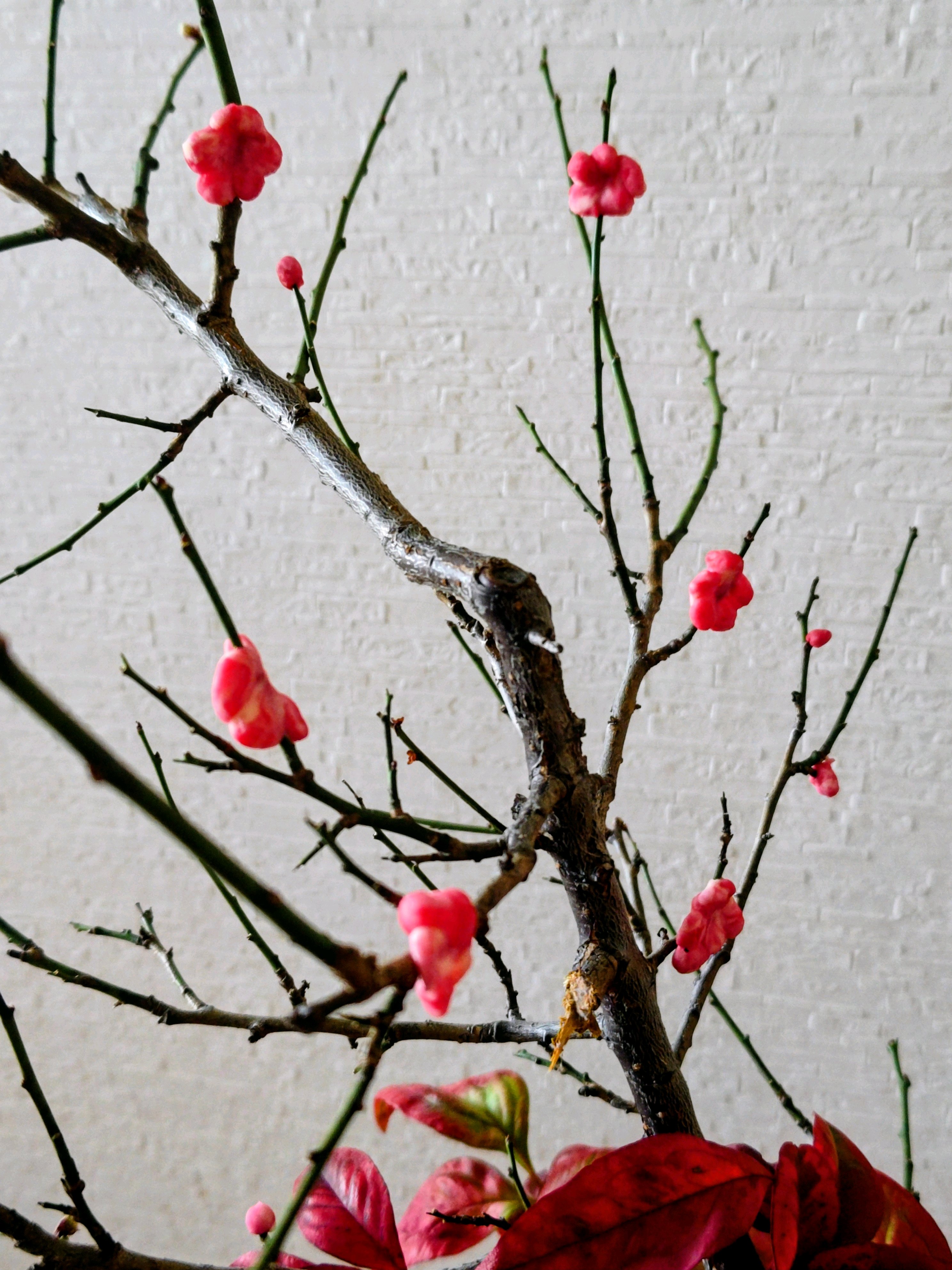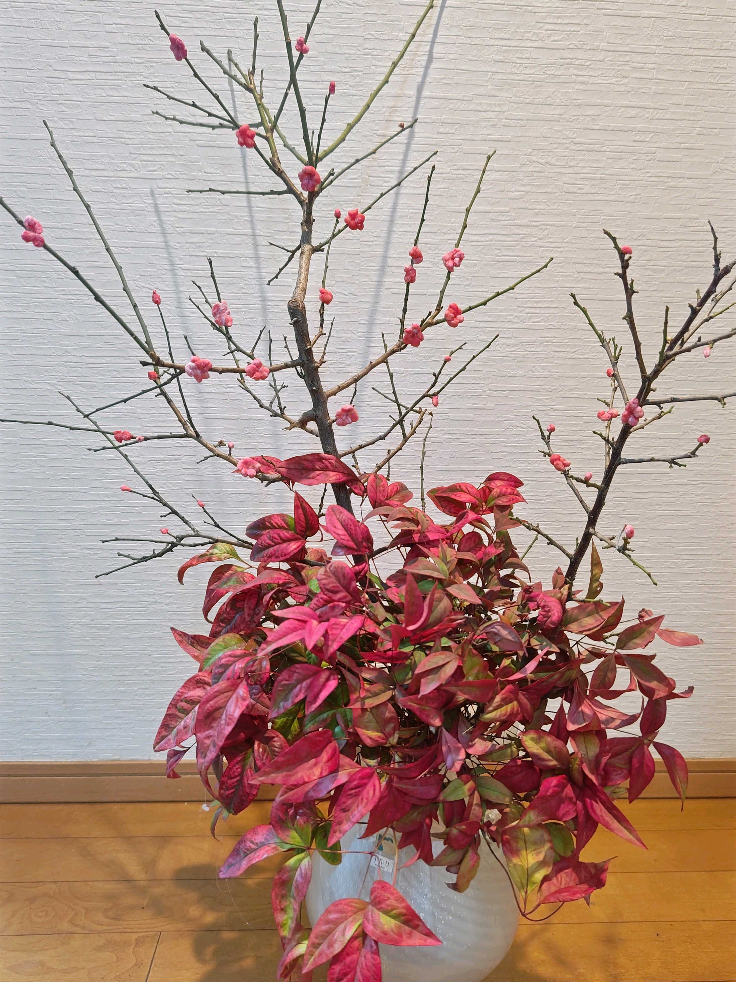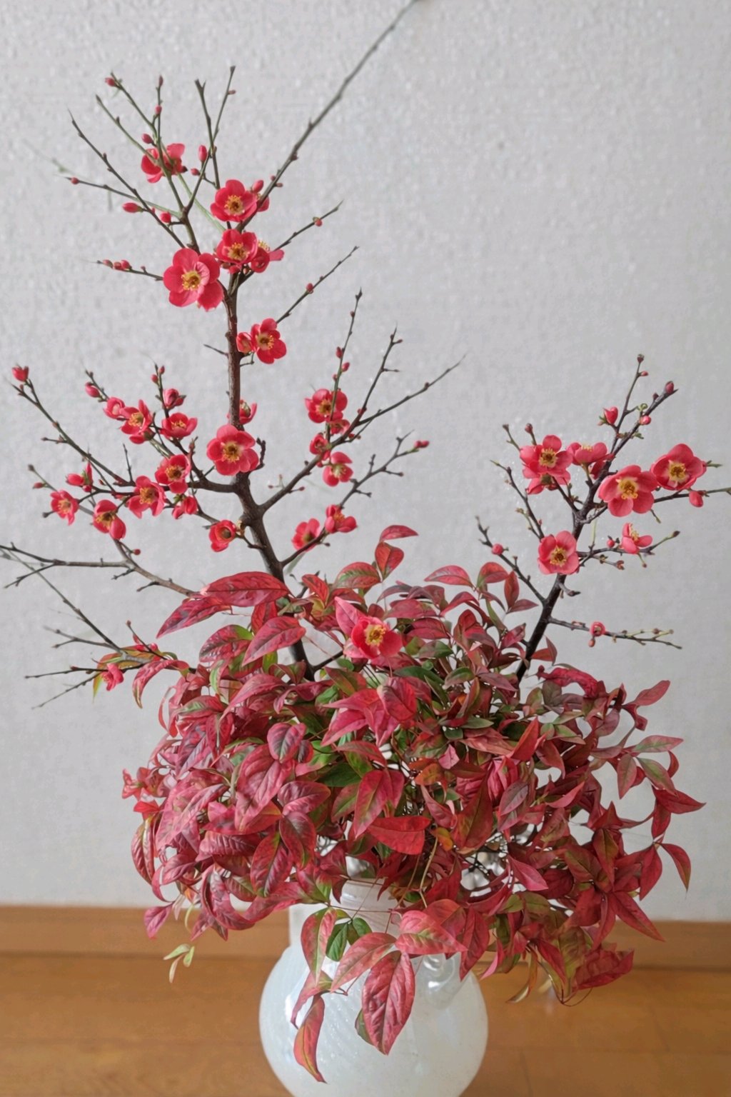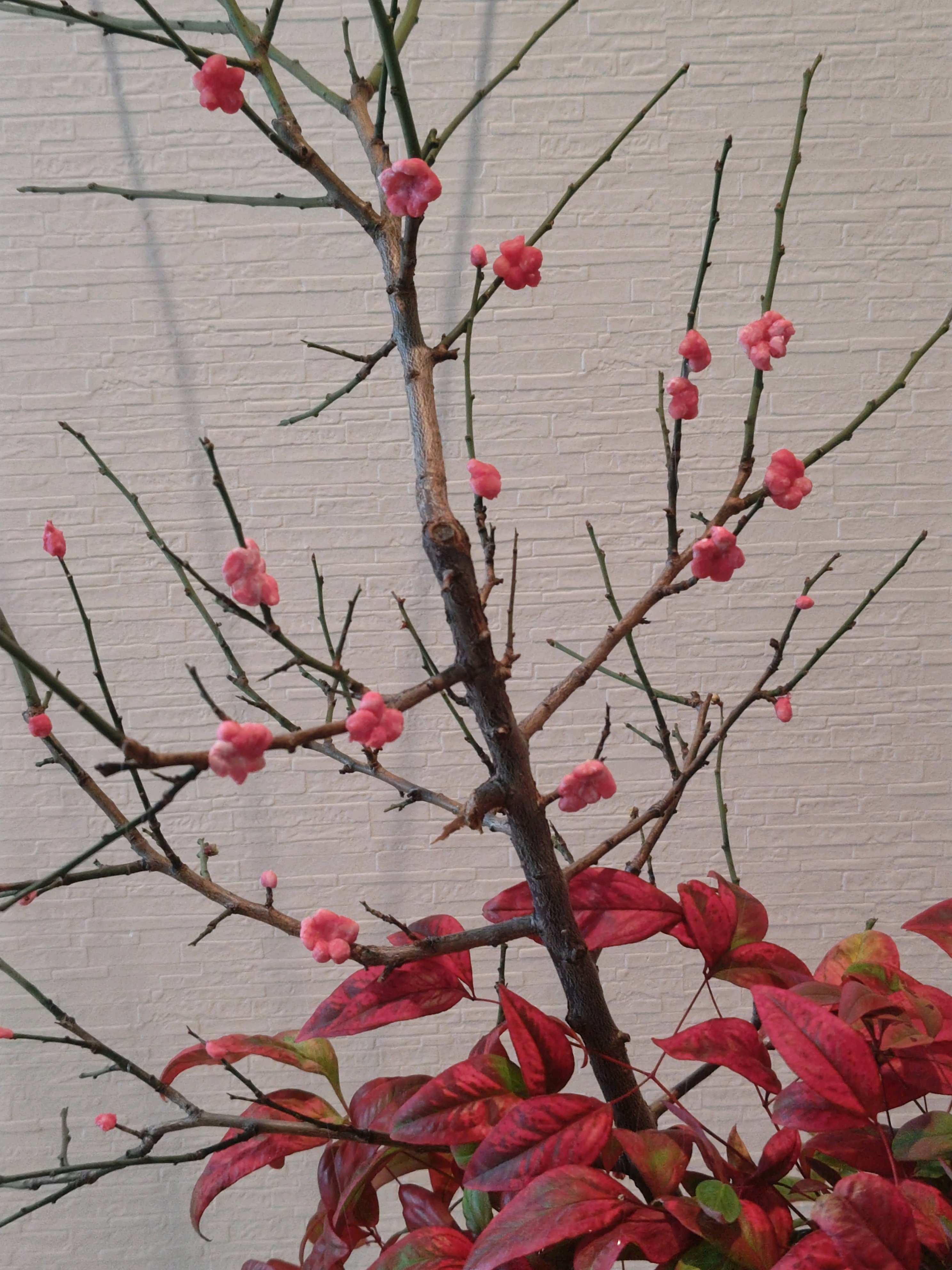 梅と一緒に投げ入れ。残りはノイバラの実と一緒にリースにして飾ってます。いつまでも綺麗なままです。