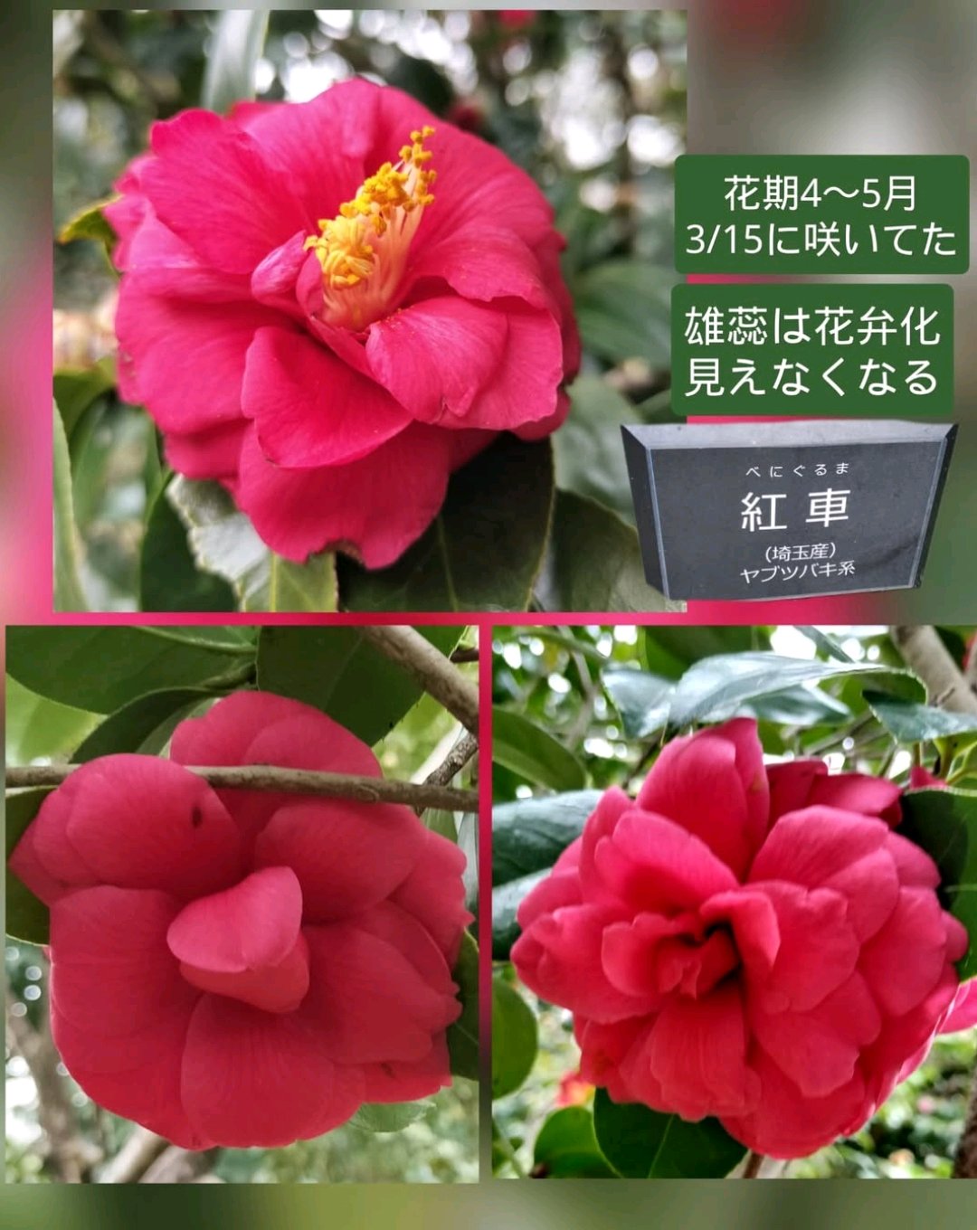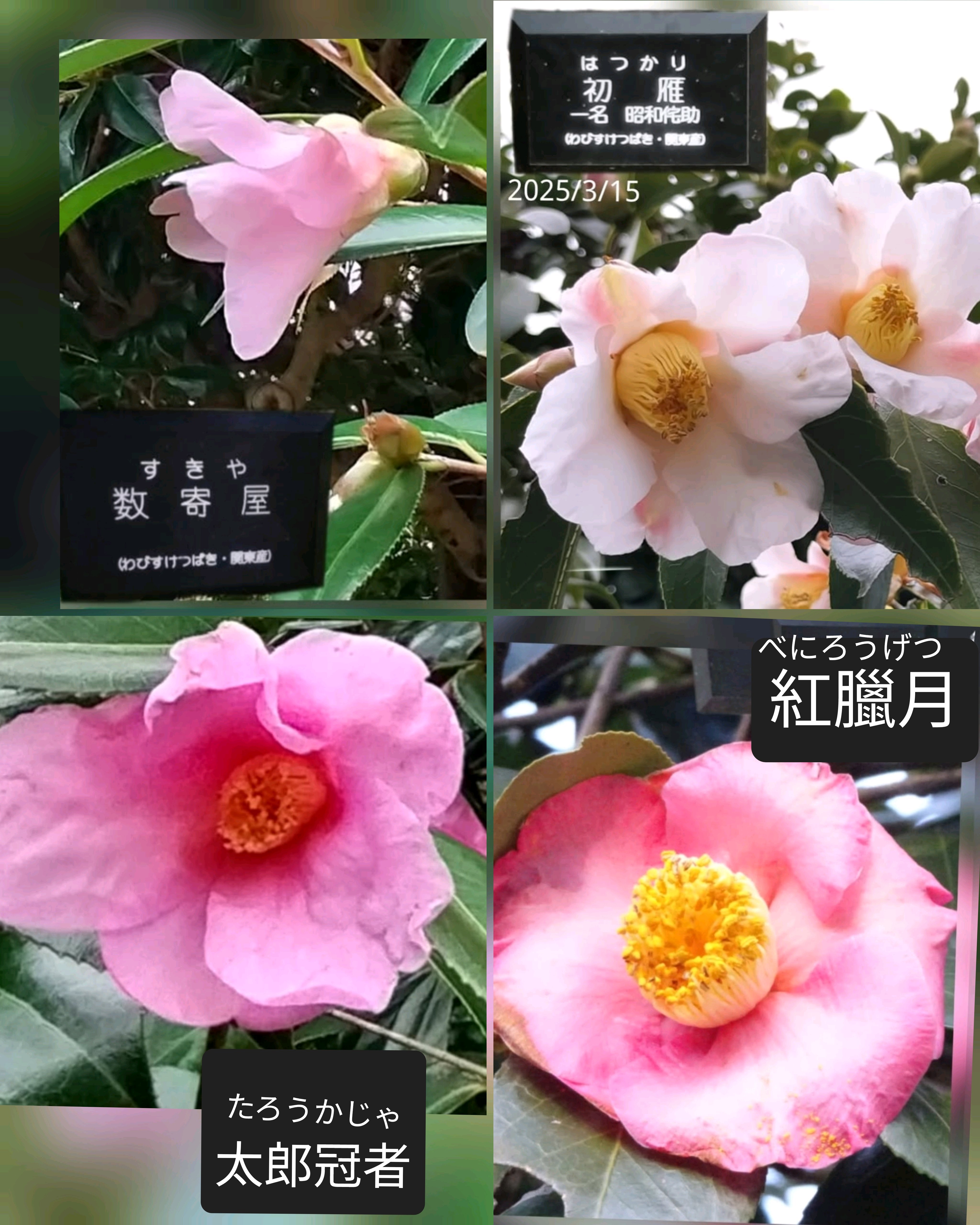 2品種のサザンカと1月から咲いていた椿はラストにコラージュしました