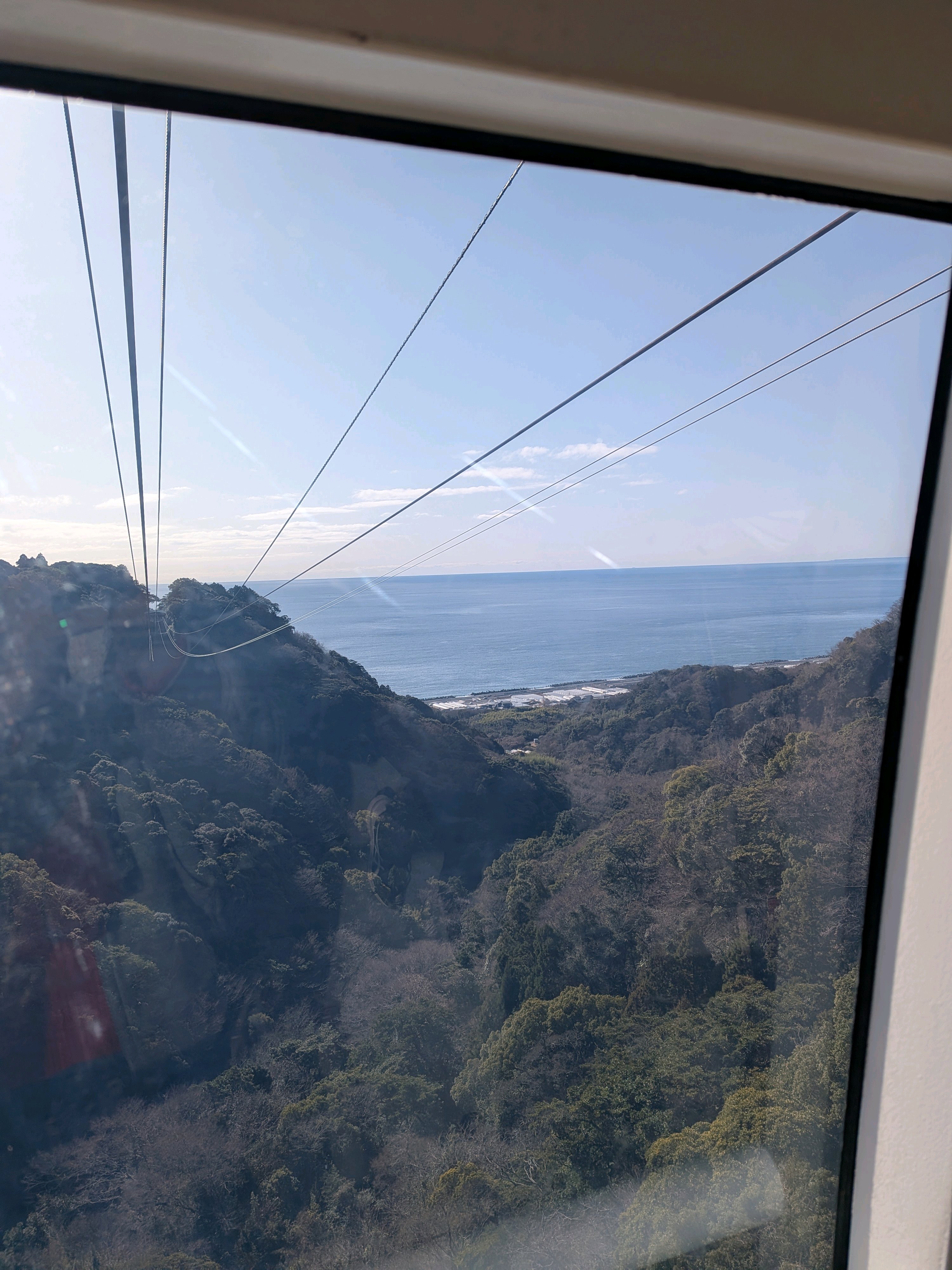 駿河湾に石垣いちご🍓ハウスが見えます!向こうからのロープウェイ🚡に手を振りました。