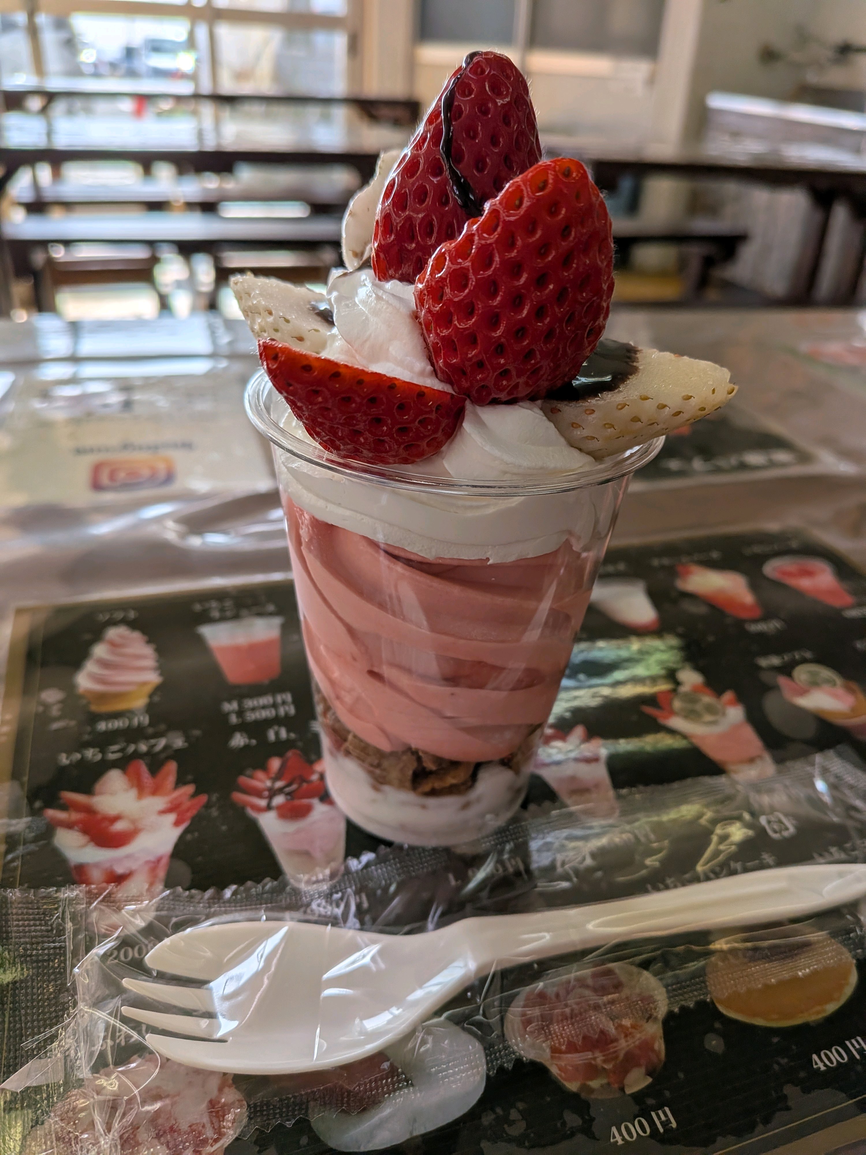 久能屋さんで、紅白のいちご🍓パフェ食べました!歩いたので美味しかった!