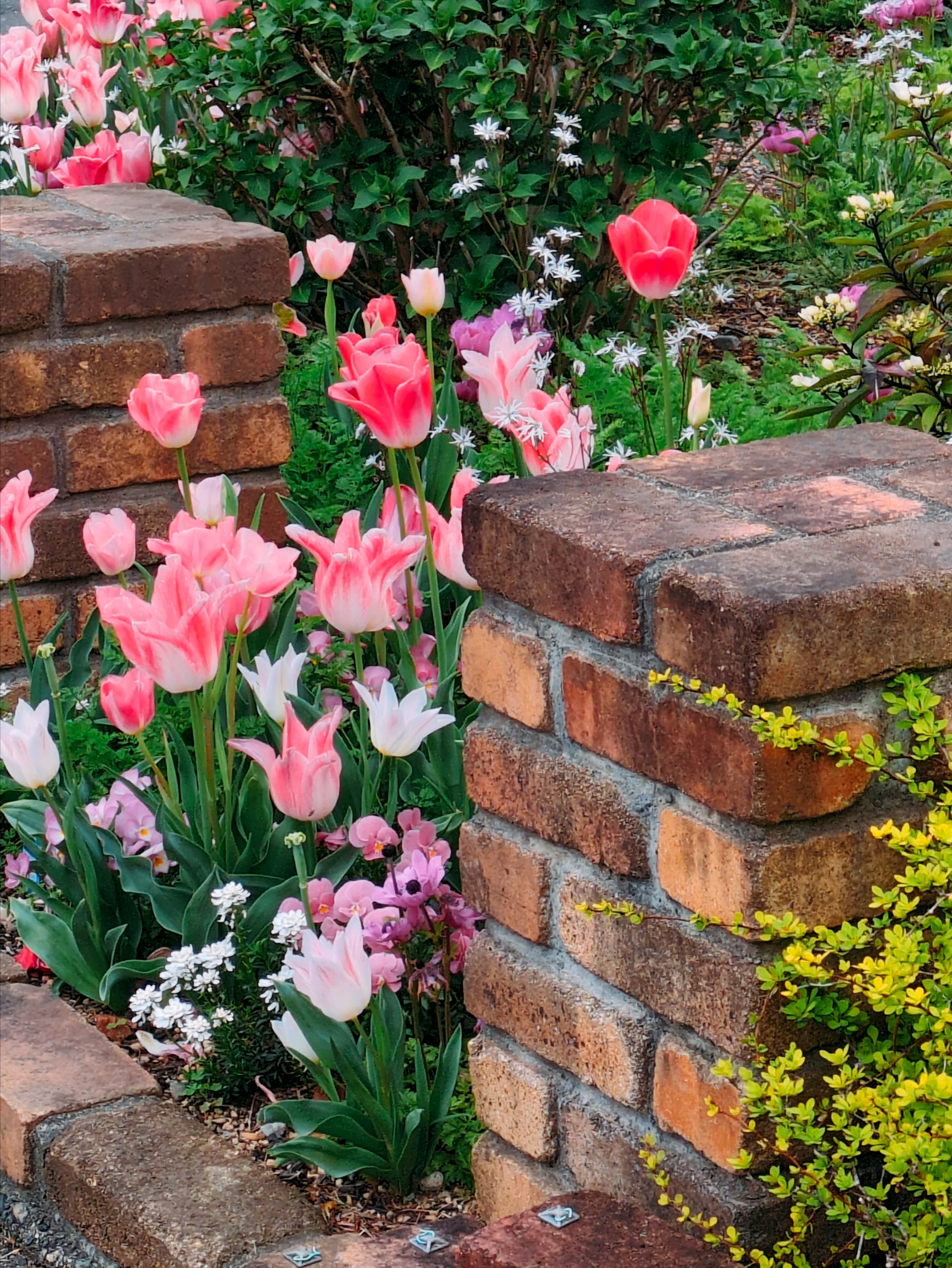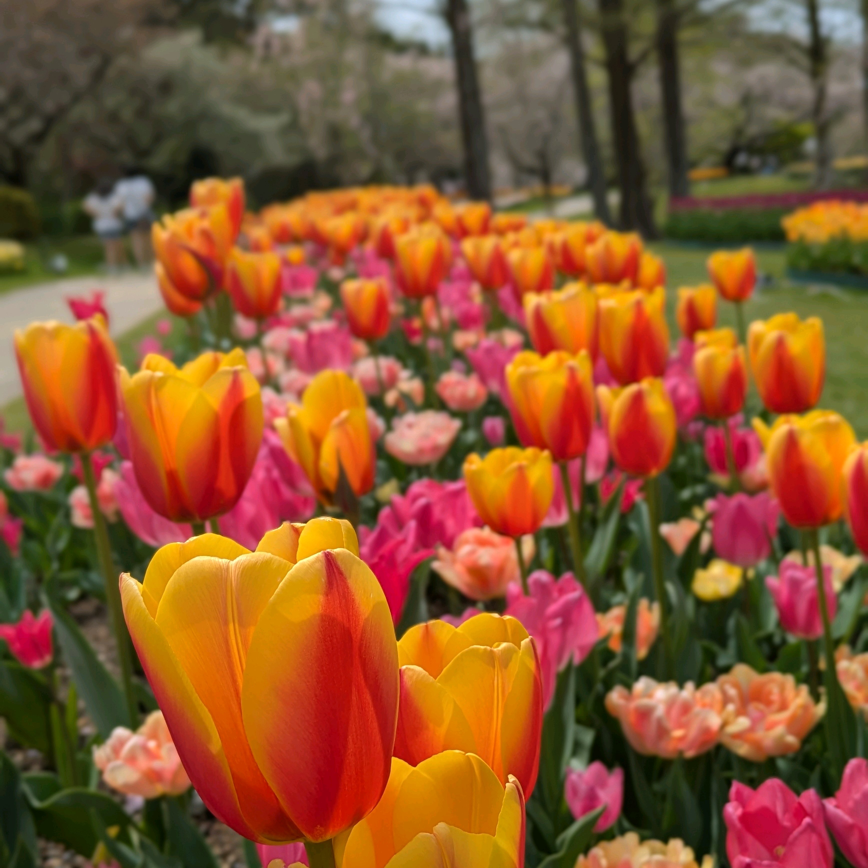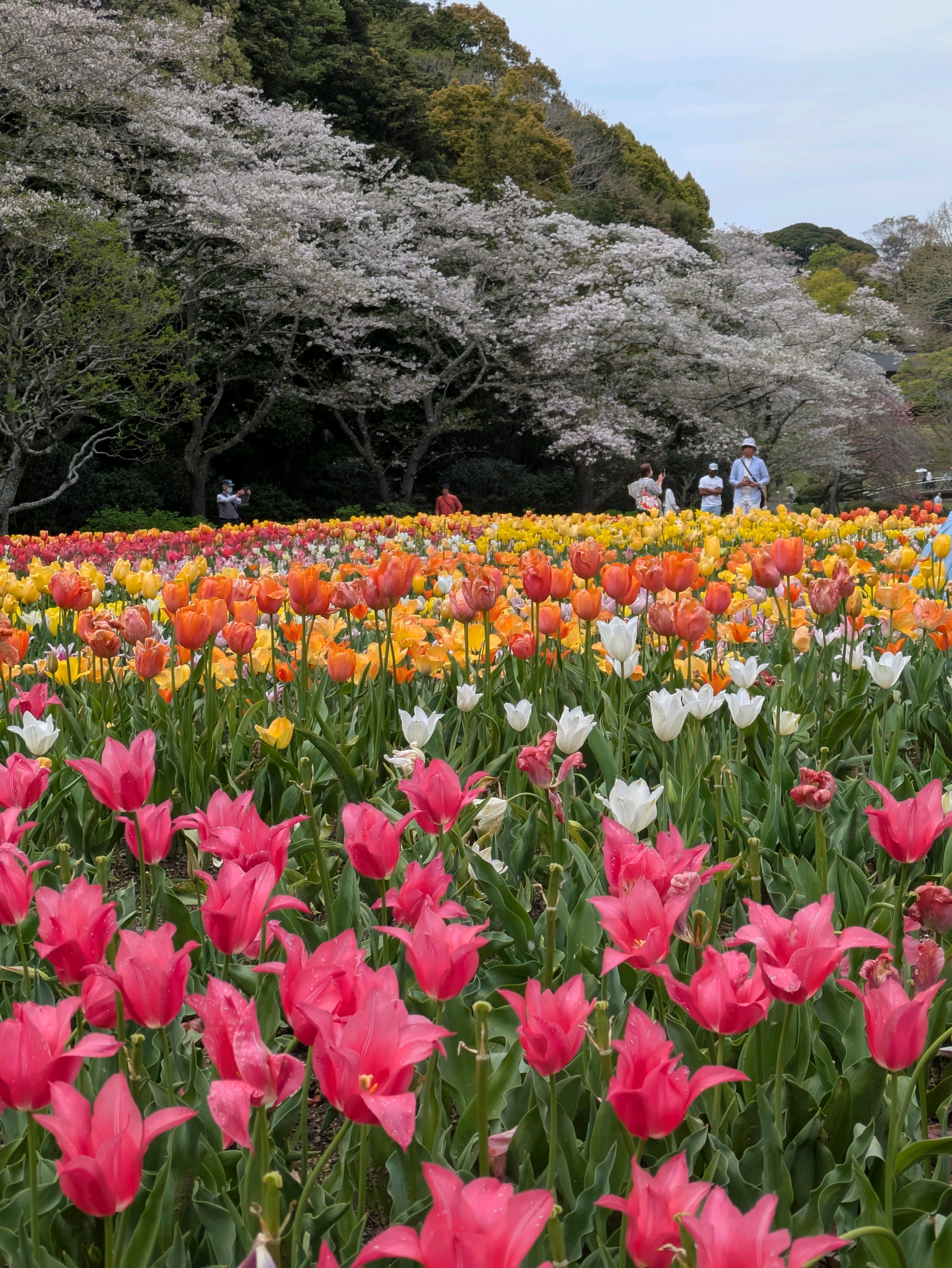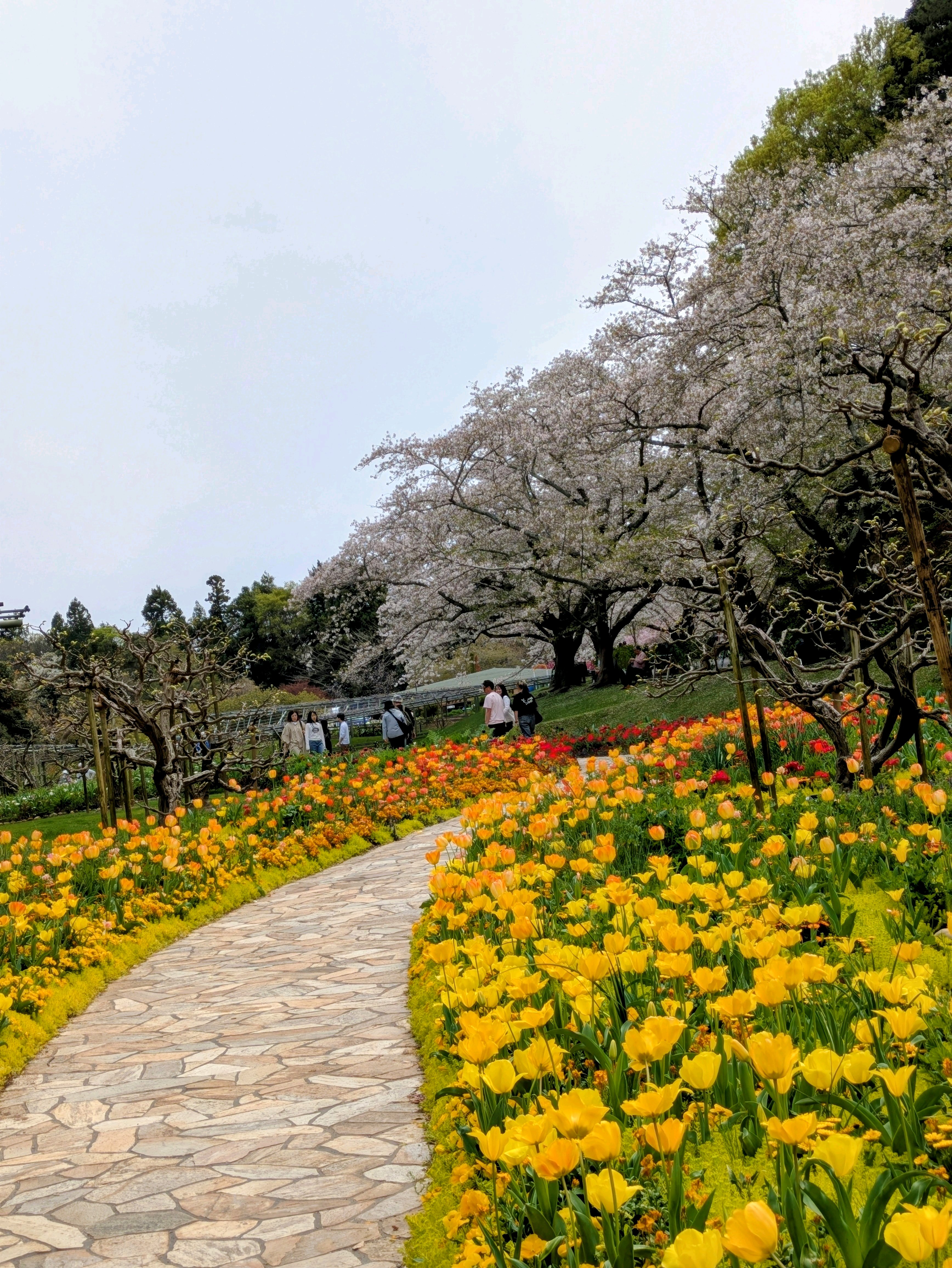 ガーデンの中で一番メインに広がる桜とチューリップの群生です😊