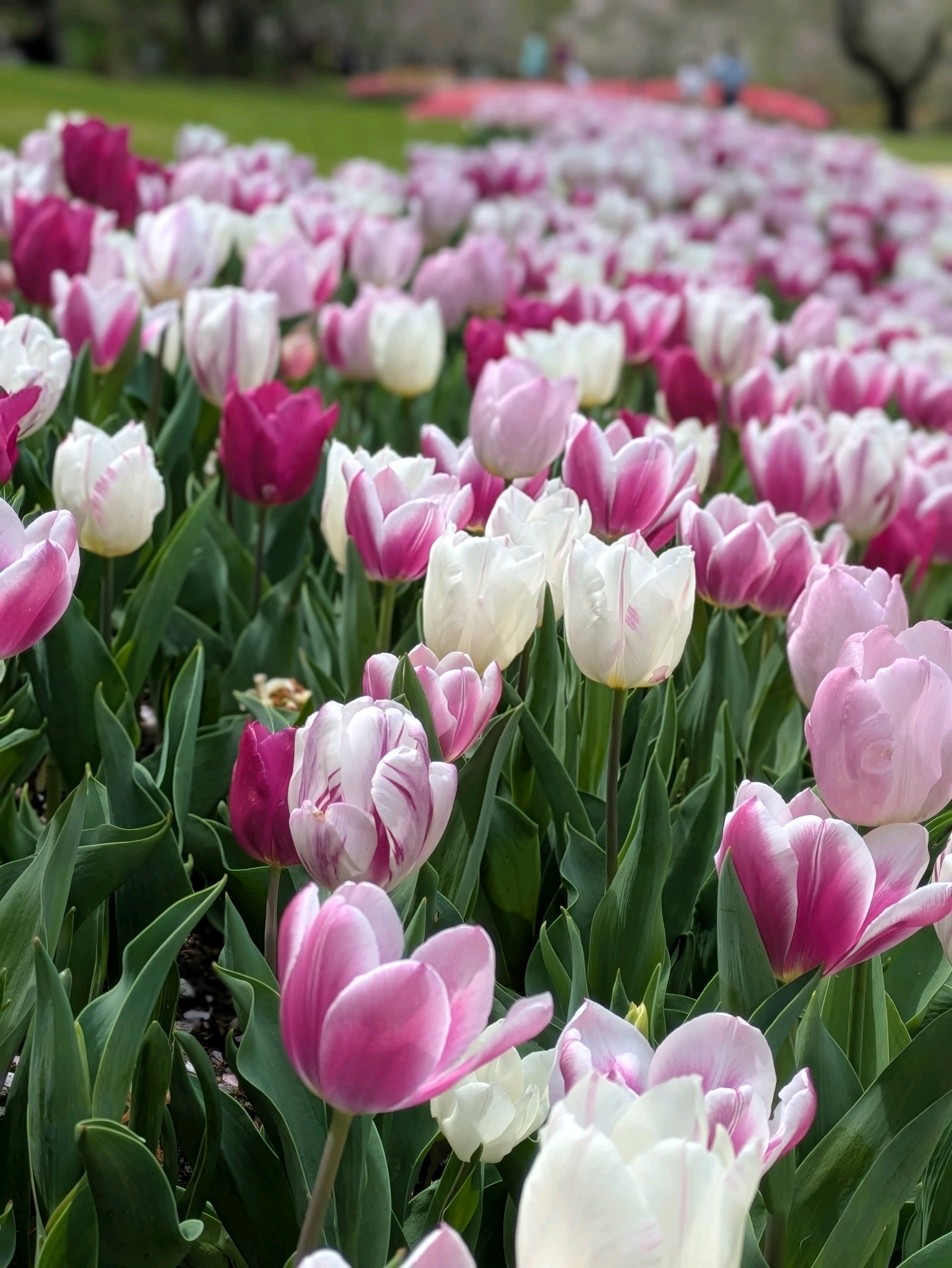 広大な敷地の中にカラー別にカラフルなチューリップの面々…🧡❤️♥️💛🤍💜